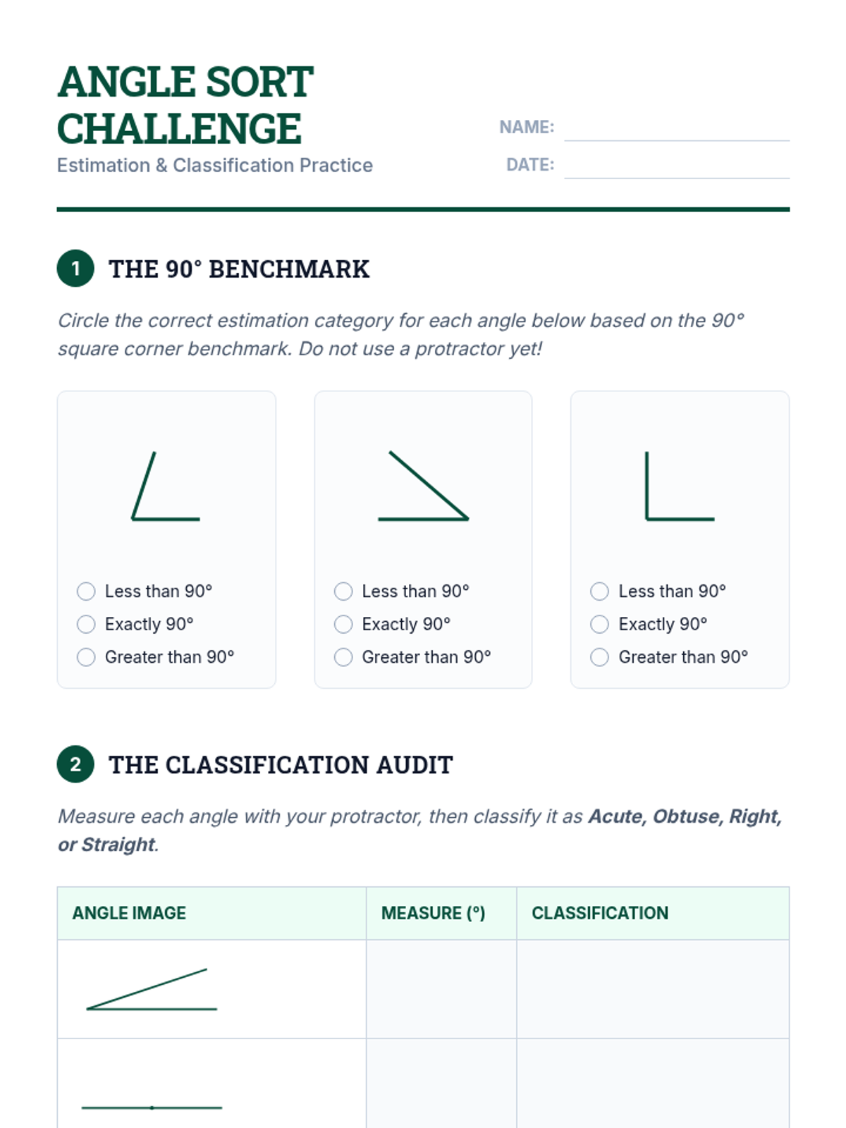 This sequence guides 6th-grade students through the mechanics of geometry, focusing on identifying, measuring, classifying, and constructing angles with precision. Students move from basic anatomy to mastery of the protractor and error analysis.