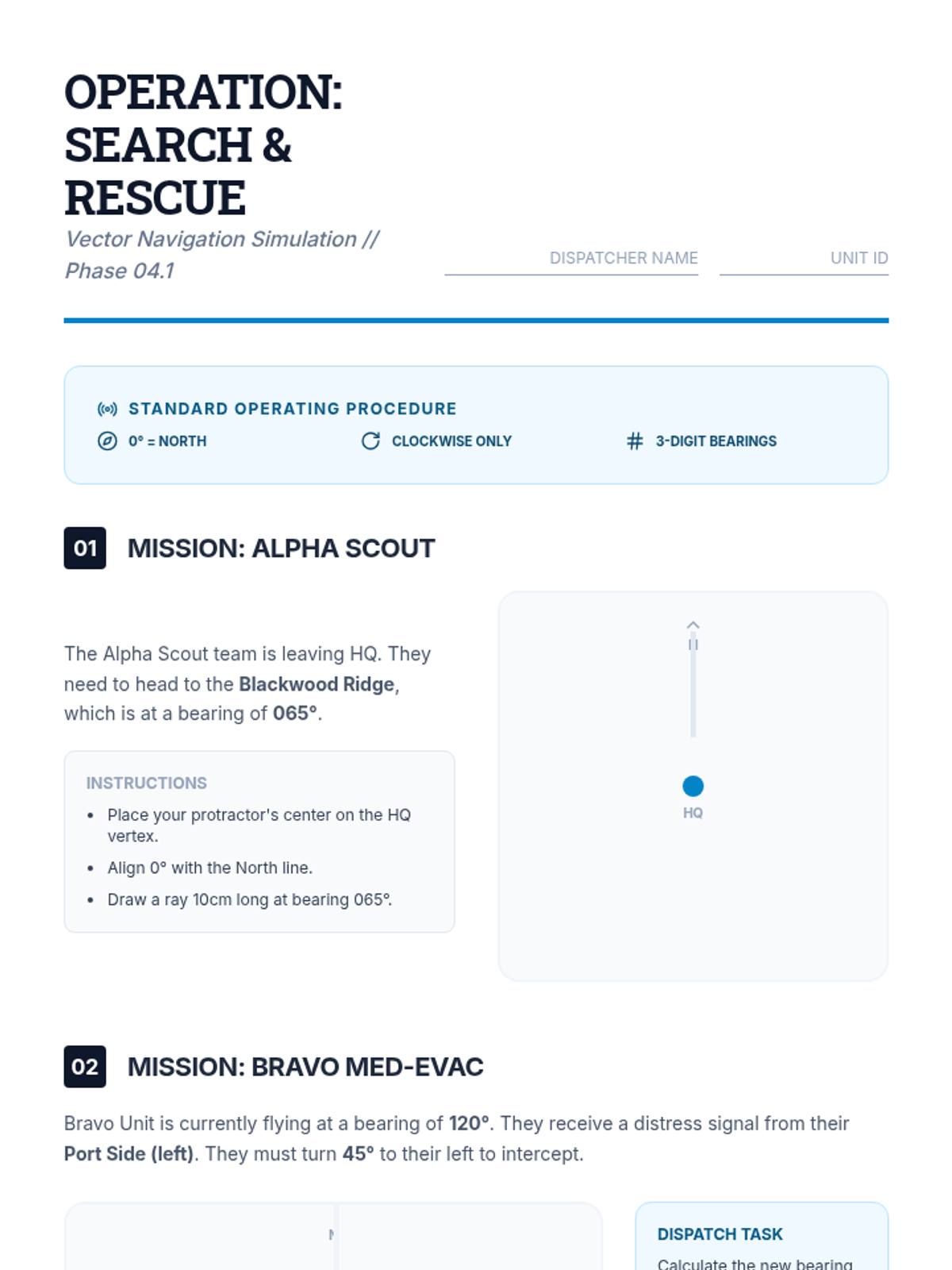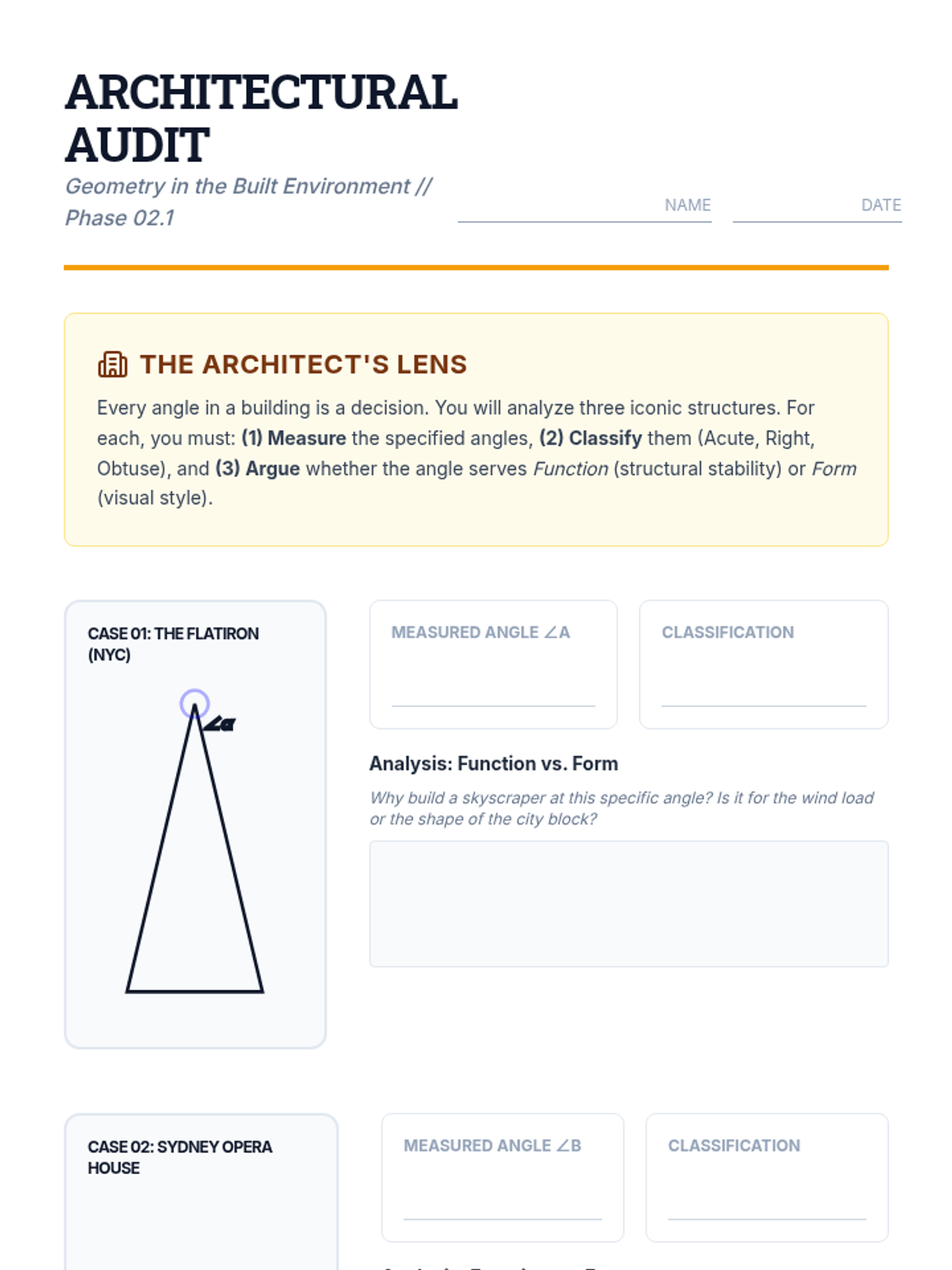 This project-oriented sequence bridges theoretical geometry with physical application, tasking 9th-grade students to act as surveyors and designers. From precision measurement and error analysis to architectural blueprinting and vector navigation, students explore how angular accuracy impacts structural integrity and functionality in the real world.