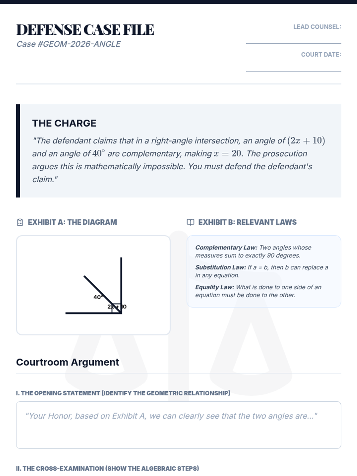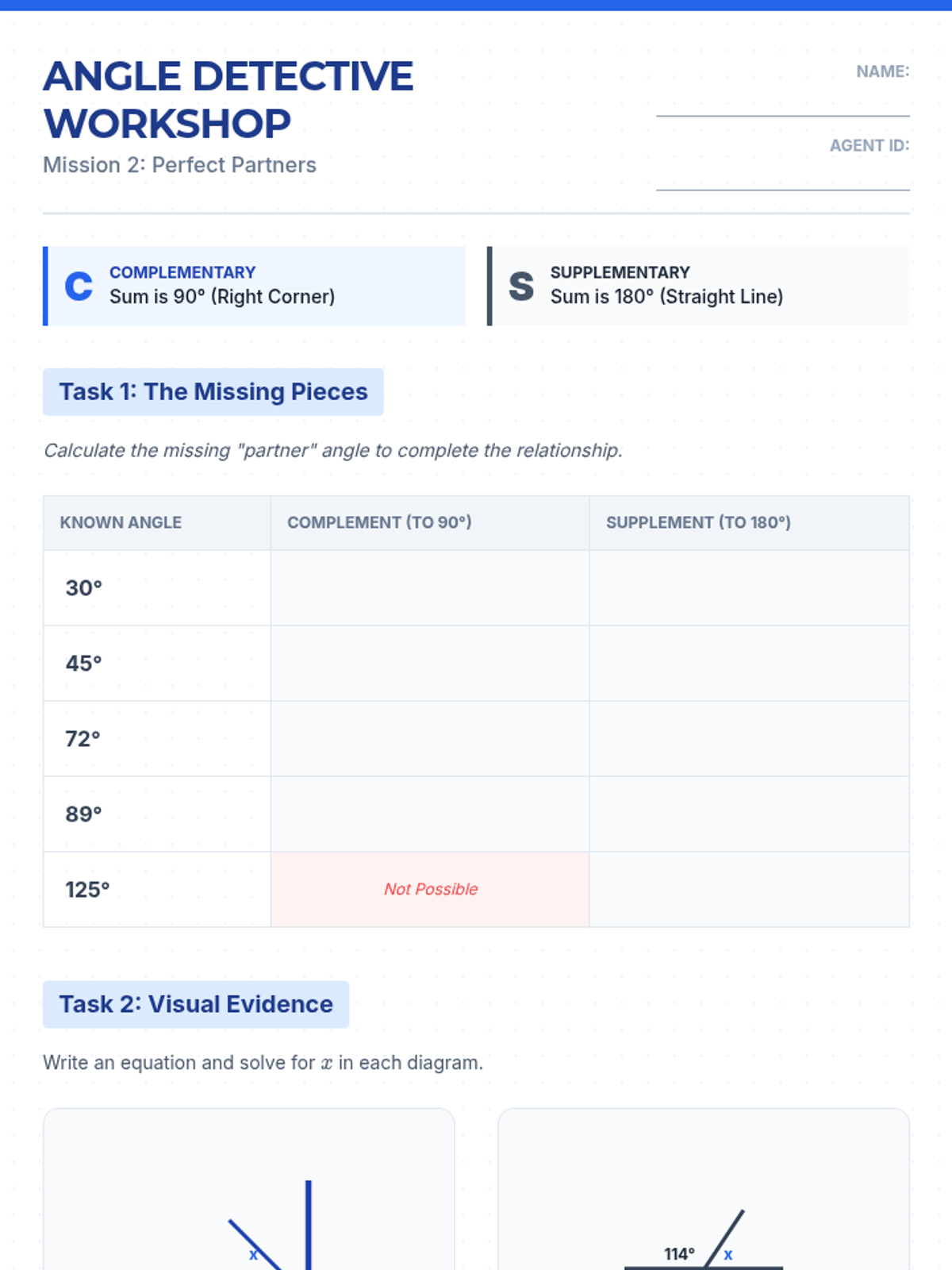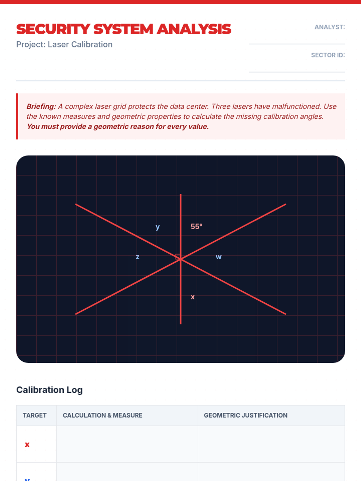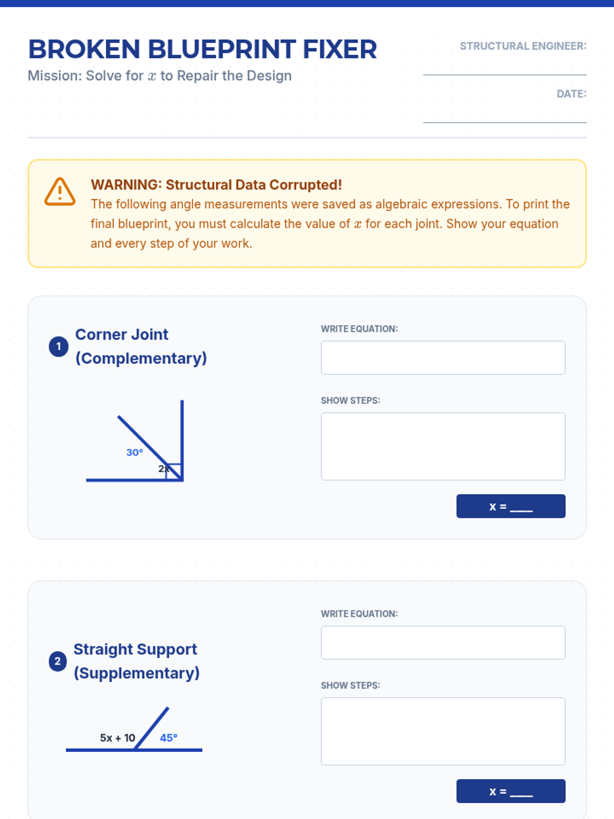 This sequence guides students through identifying, calculating, and proving angle relationships. Students transition from hands-on measurement of intersecting lines to solving complex multi-step algebraic geometry problems and constructing logical arguments.