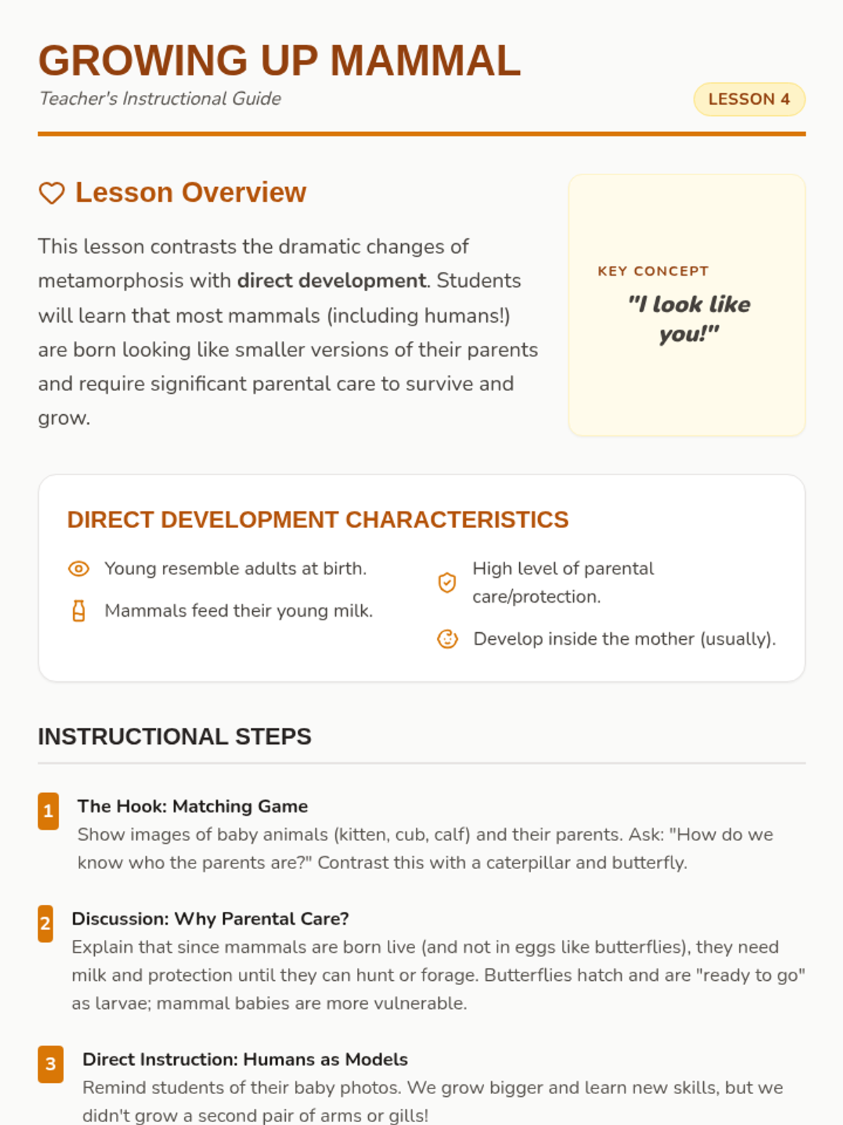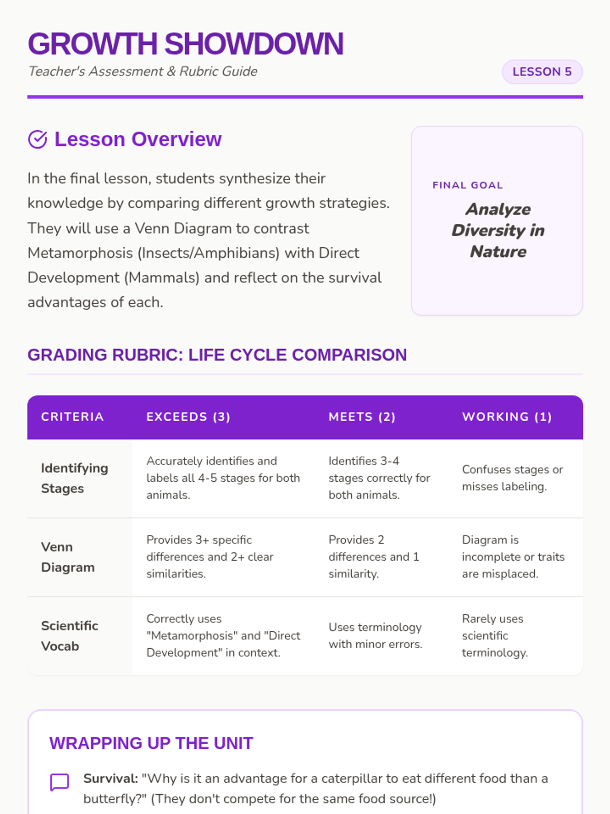 This sequence explores the diverse ways animals grow and change throughout their lives. Students will compare simple growth patterns in mammals with complex metamorphosis in insects and amphibians, building a comprehensive understanding of biological life cycles.
