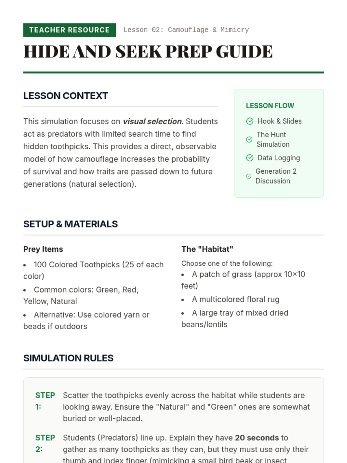 A two-day science unit for 2nd-3rd graders exploring how energy moves through nature. Students learn the basics of food chains on day one and expand their understanding to complex food webs on day two.