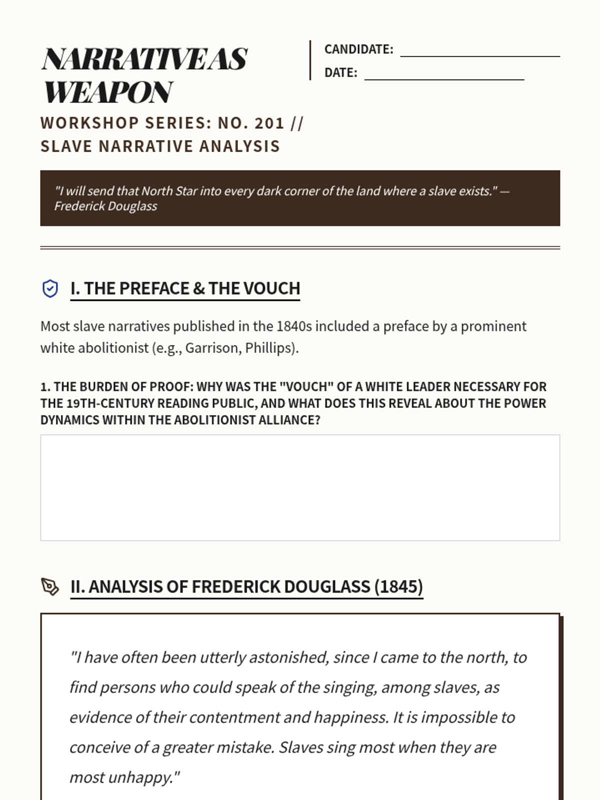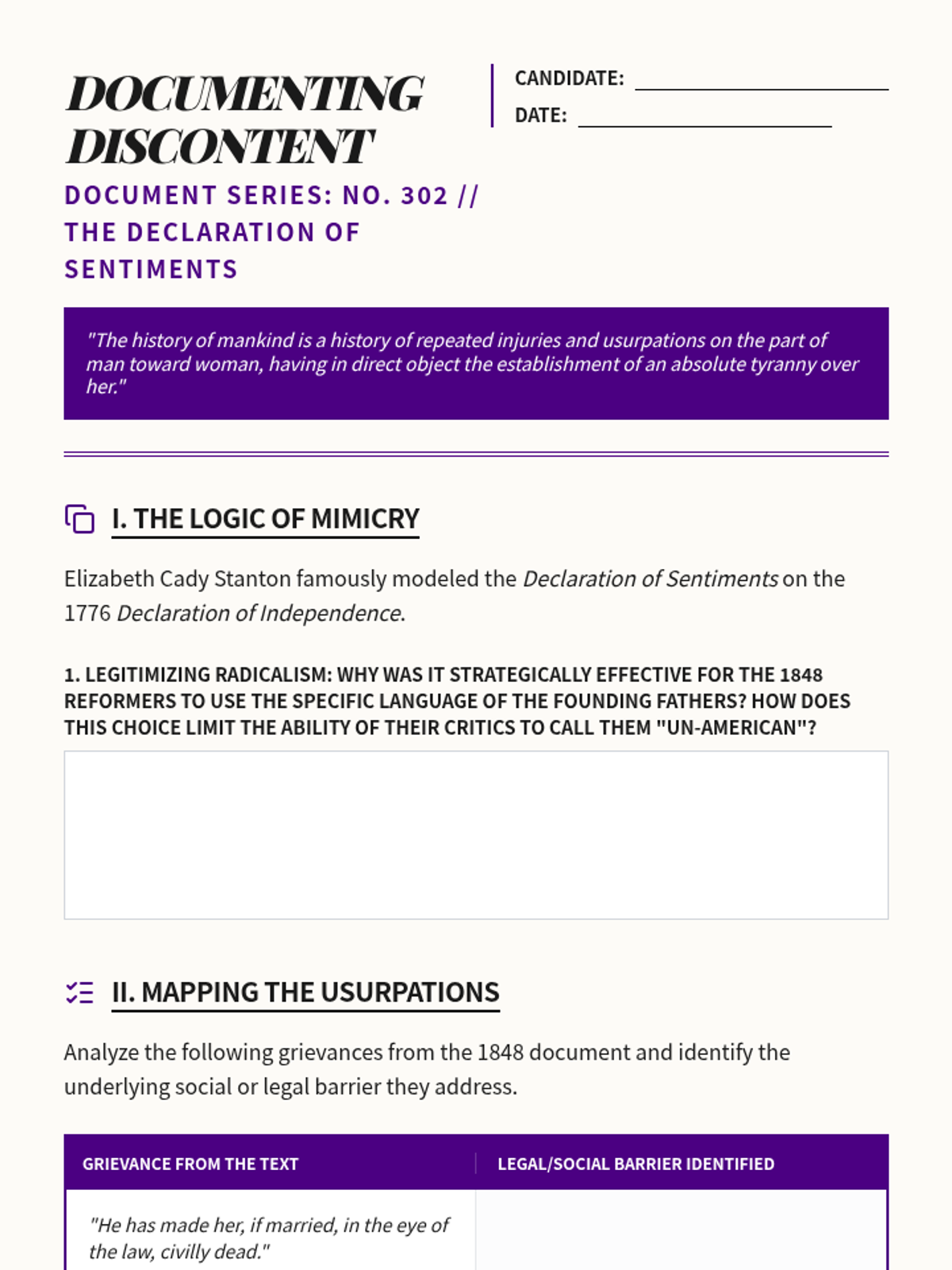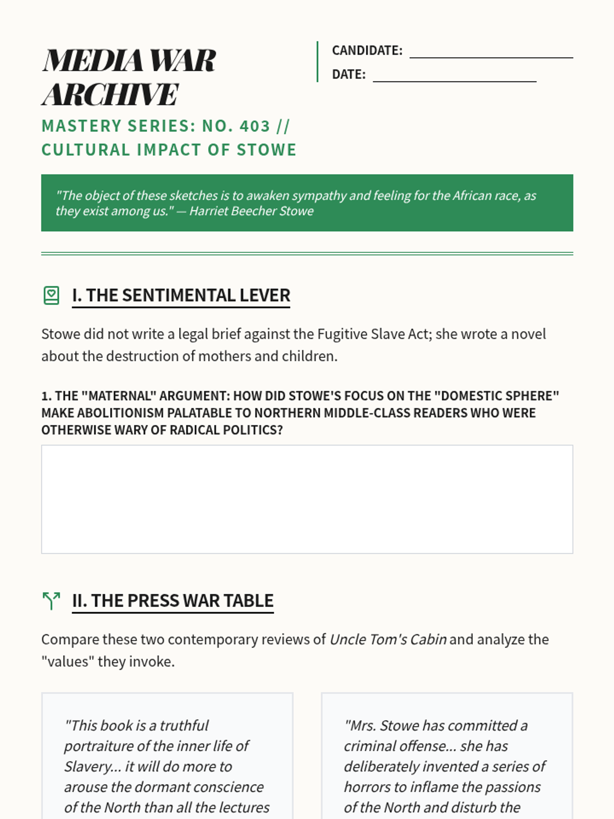 This undergraduate-level sequence explores the intellectual and religious roots of the Antebellum reform era, tracing the evolution from gradualism to radical abolitionism and its intersection with the early women's rights movement. Students analyze primary sources, rhetorical strategies, and the role of the press in shifting national discourse on slavery and equality.