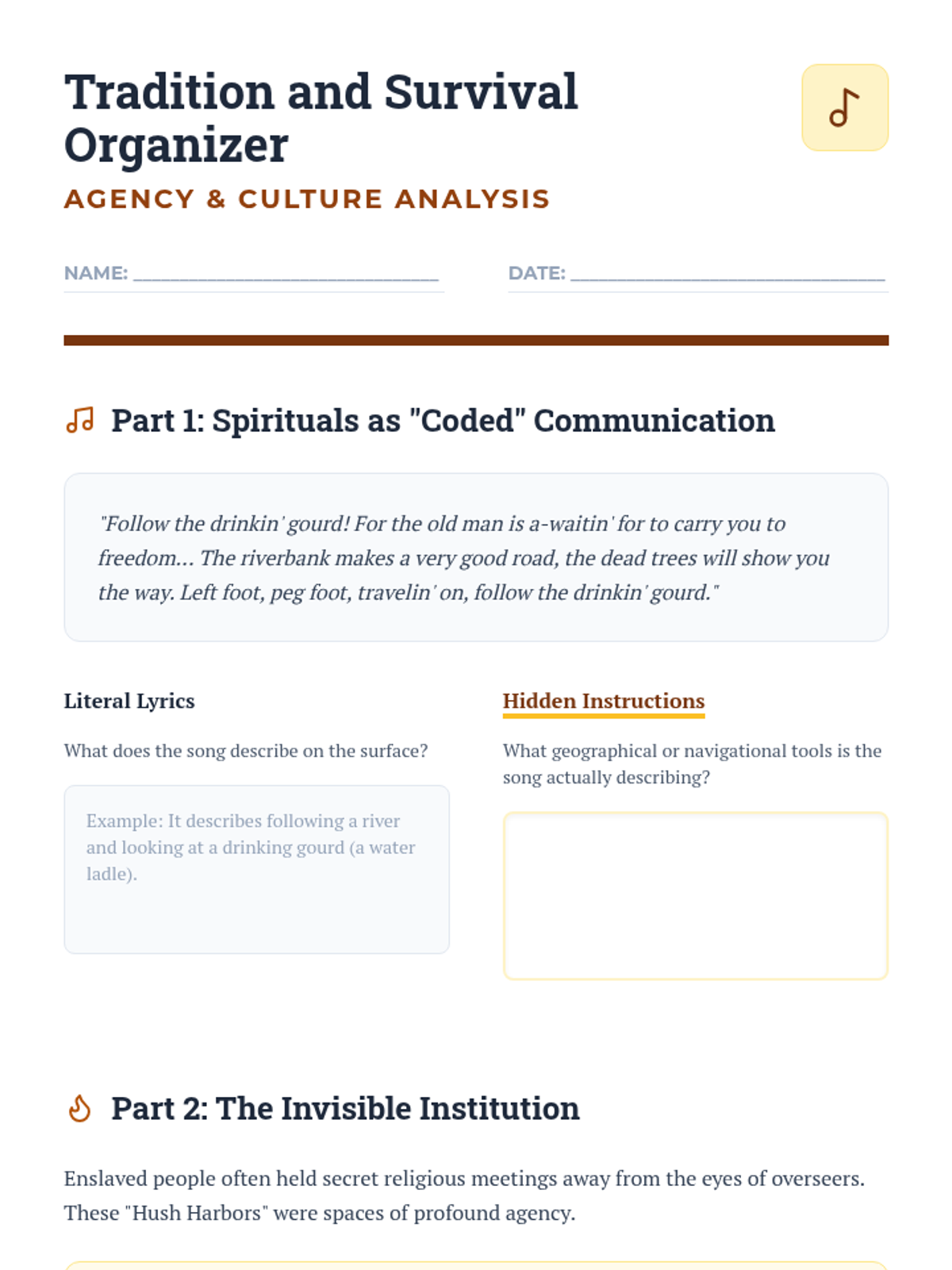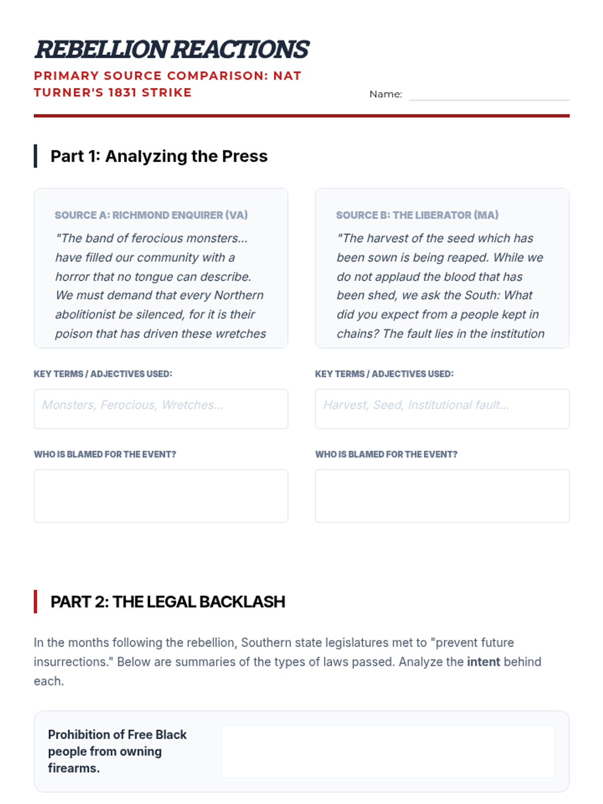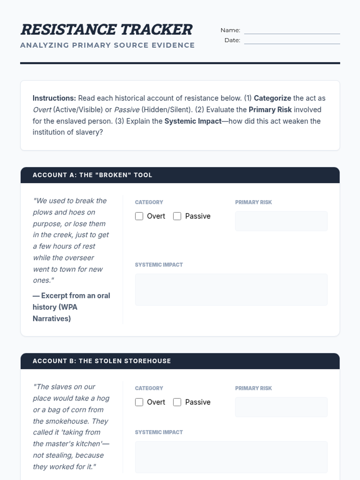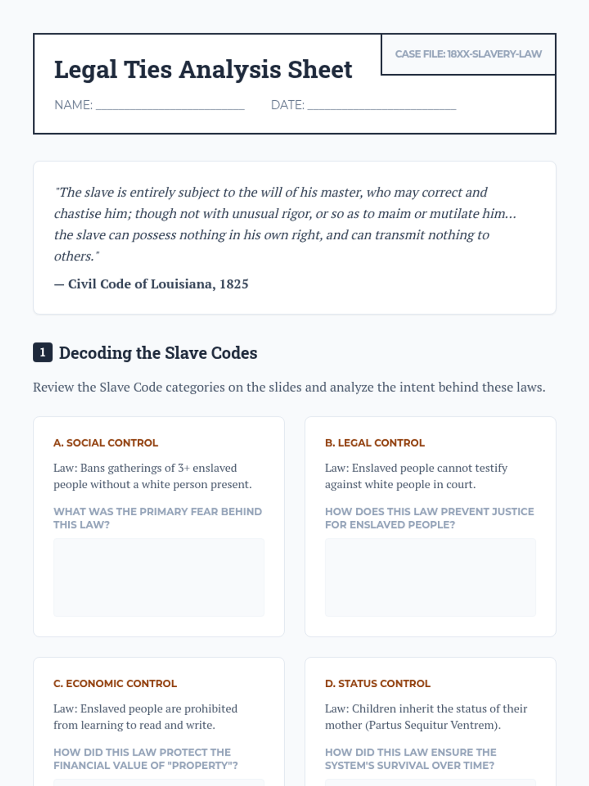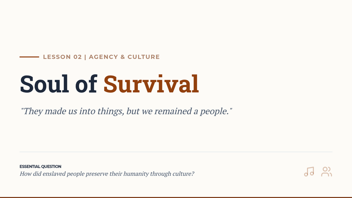 This sequence explores the institution of slavery in Antebellum America, focusing on the lived experiences, cultural agency, and various forms of resistance by enslaved people. It examines the legal framework of control and the profound impacts of slave rebellions on Southern society.