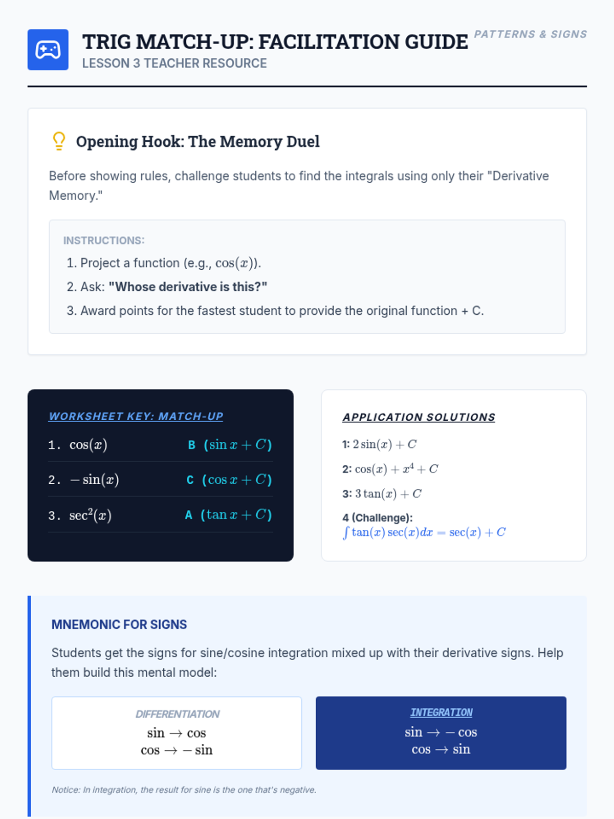 A remedial math sequence focused on clarifying misconceptions between integer addition and multiplication rules through conceptual visualization and active sorting.