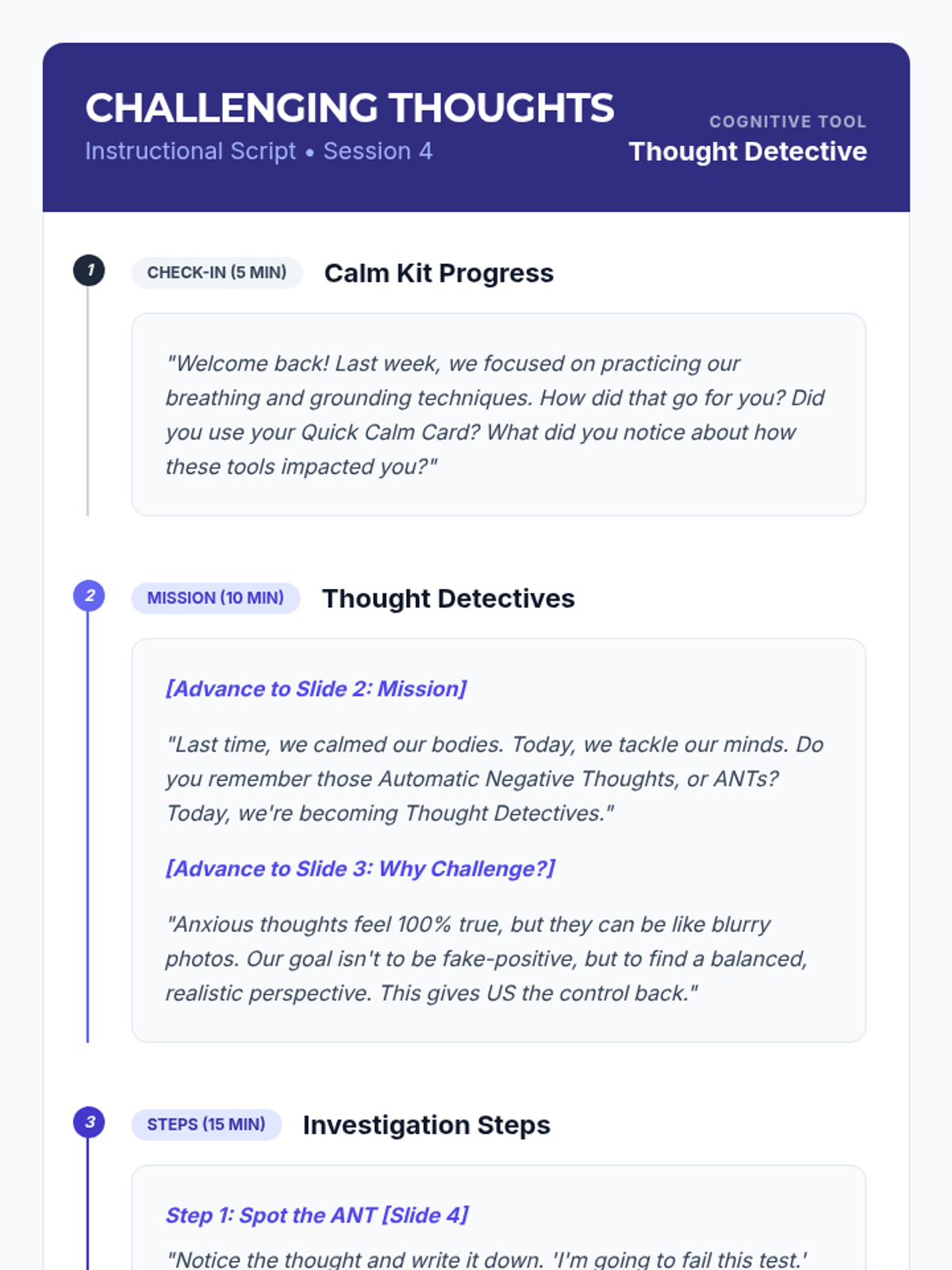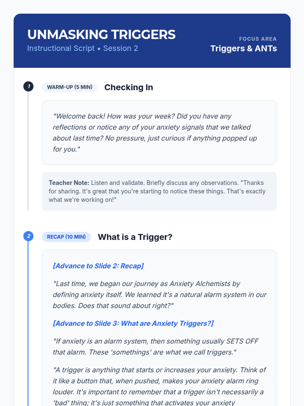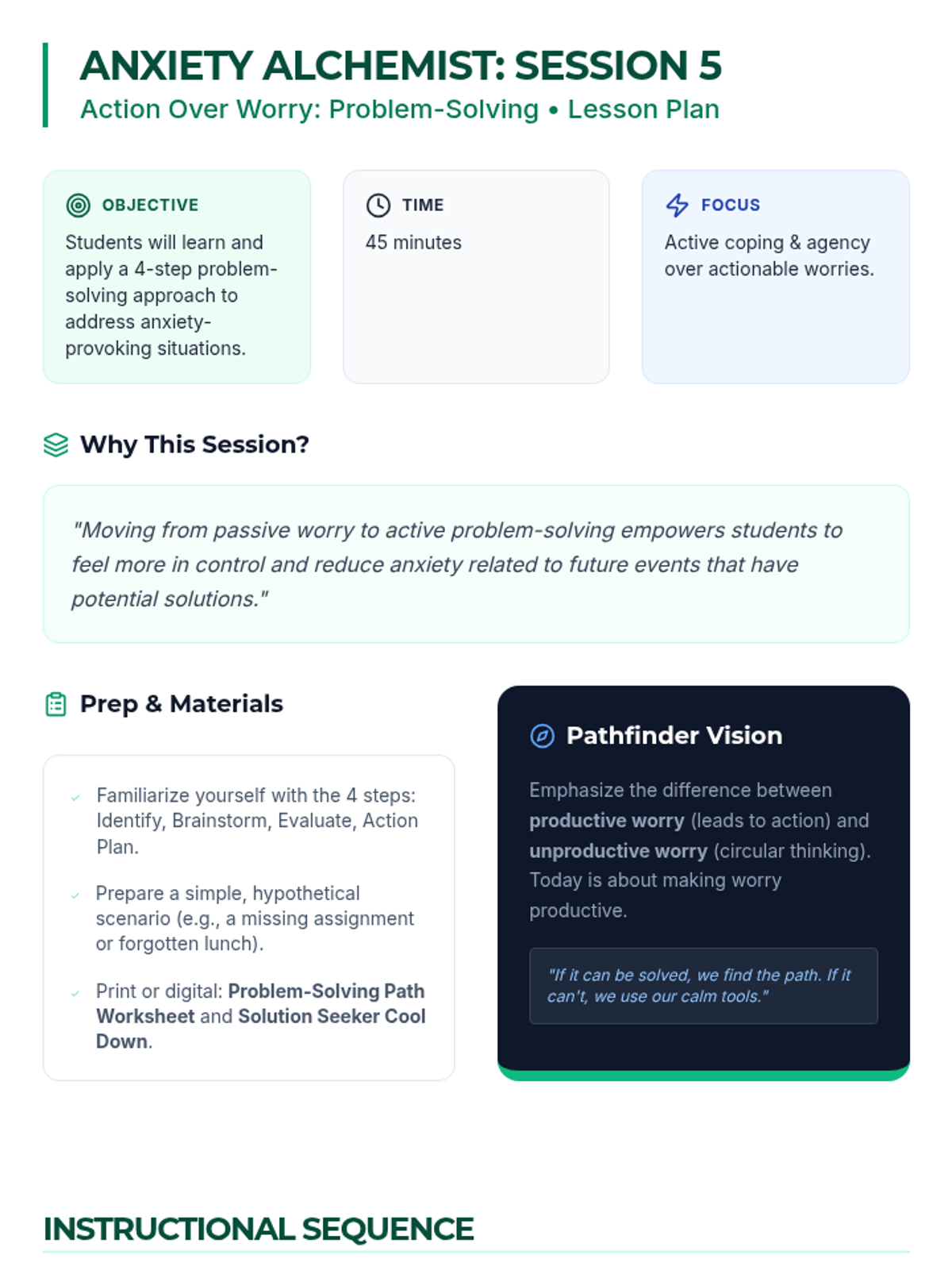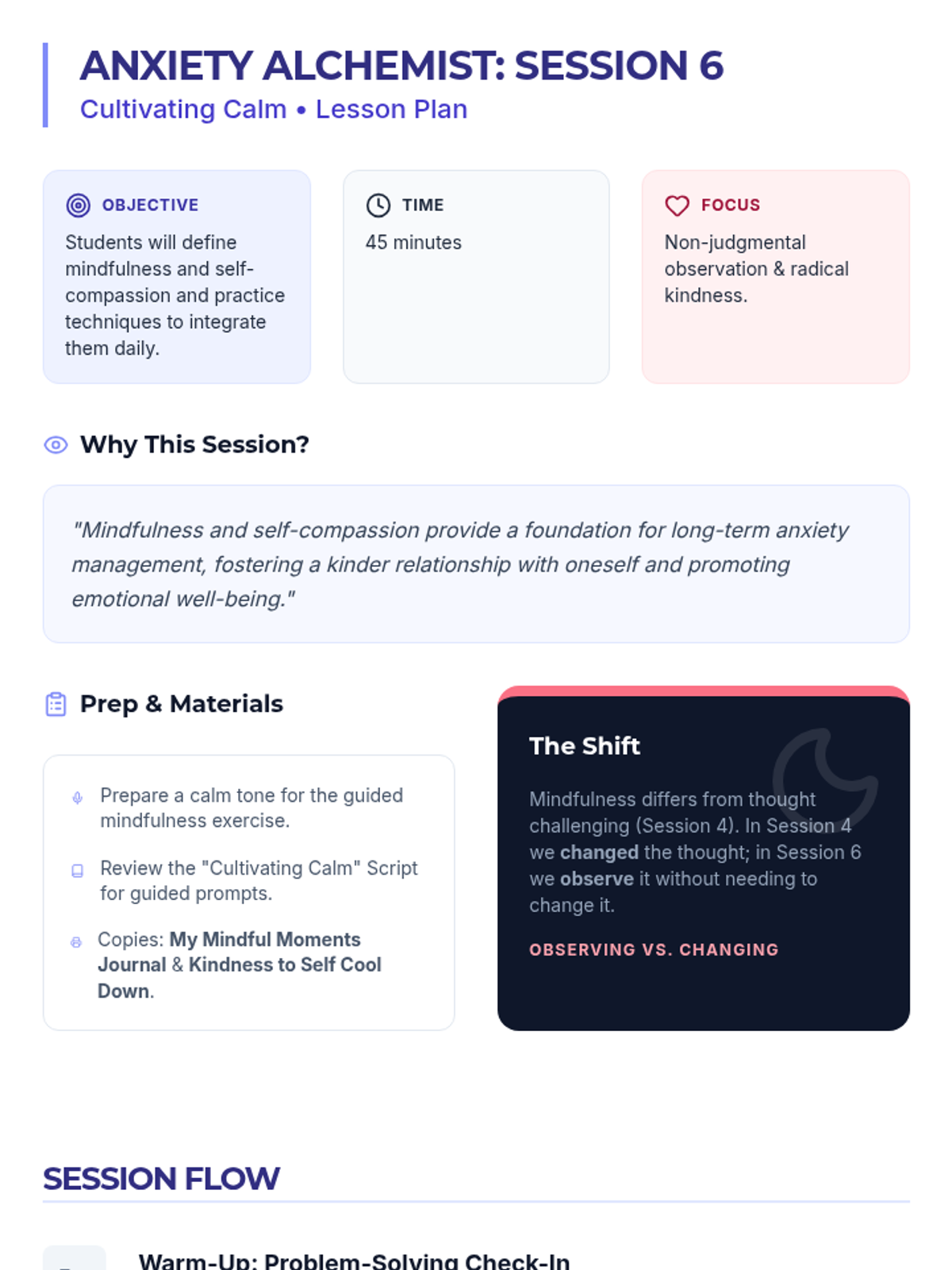 An 8-session individualized Tier 3 intervention series designed for 9th-grade students. This program transforms students into 'Anxiety Alchemists' by teaching them to understand, decode, and manage anxiety through practical coping strategies, cognitive reframing, and resilience building.