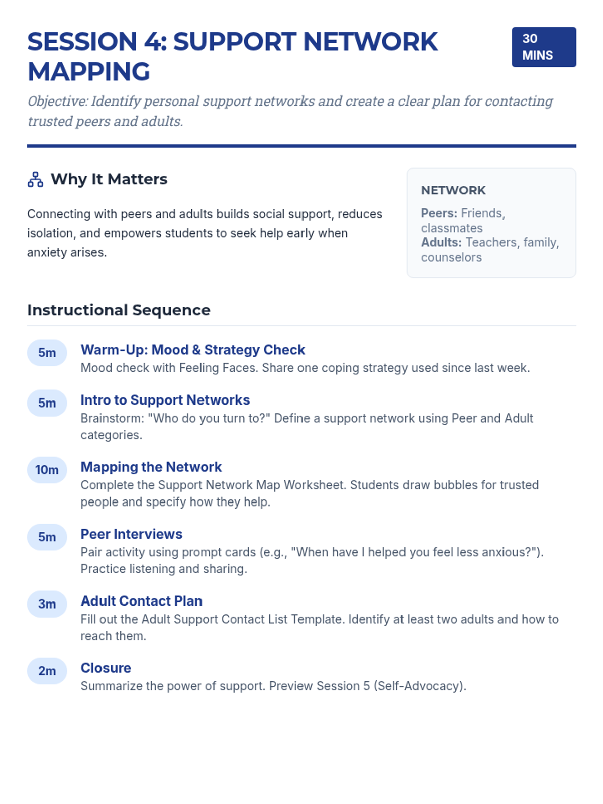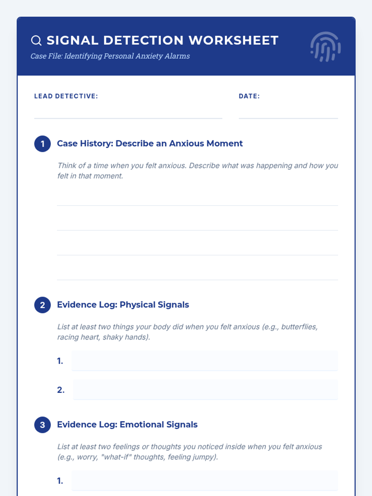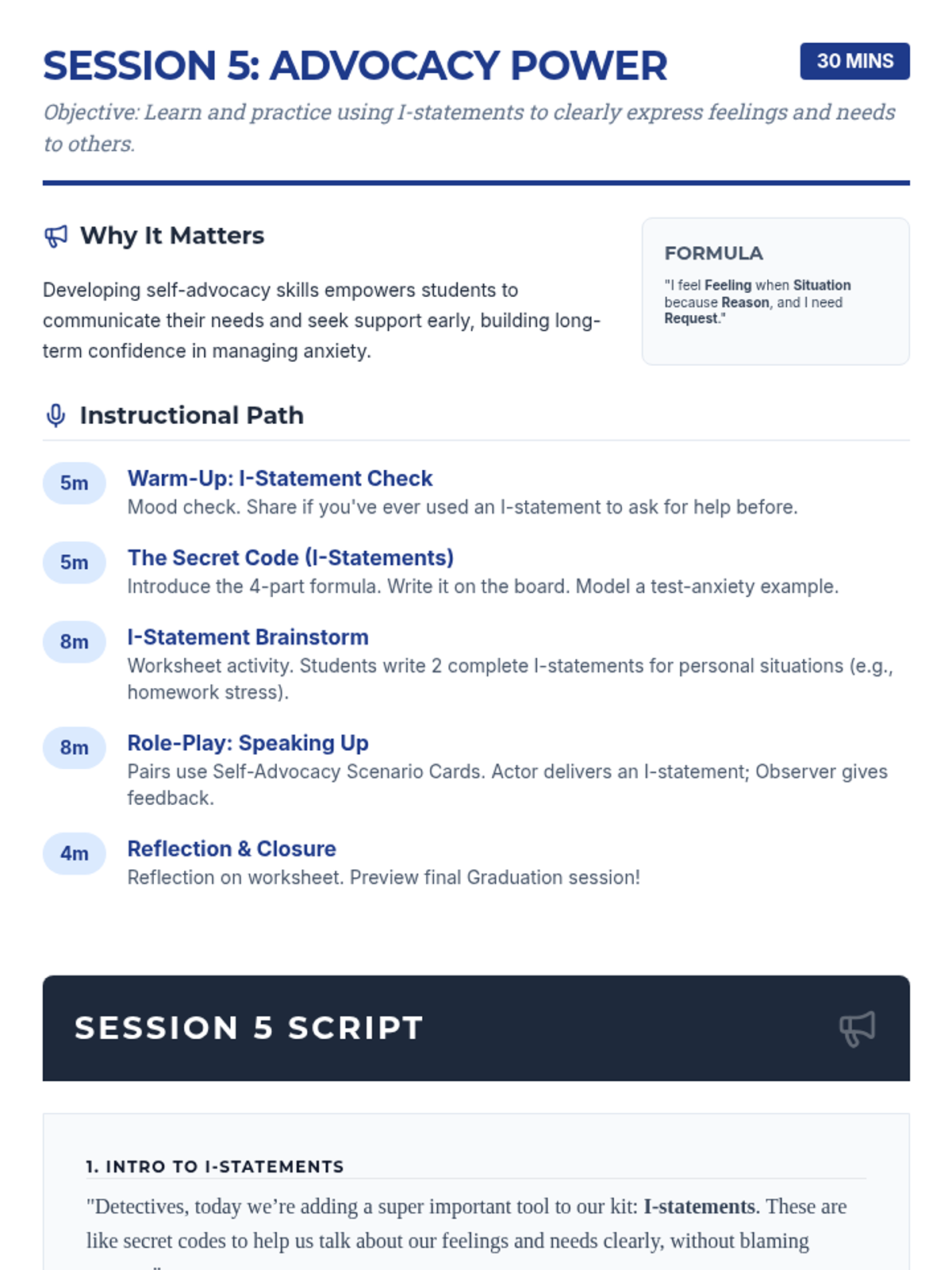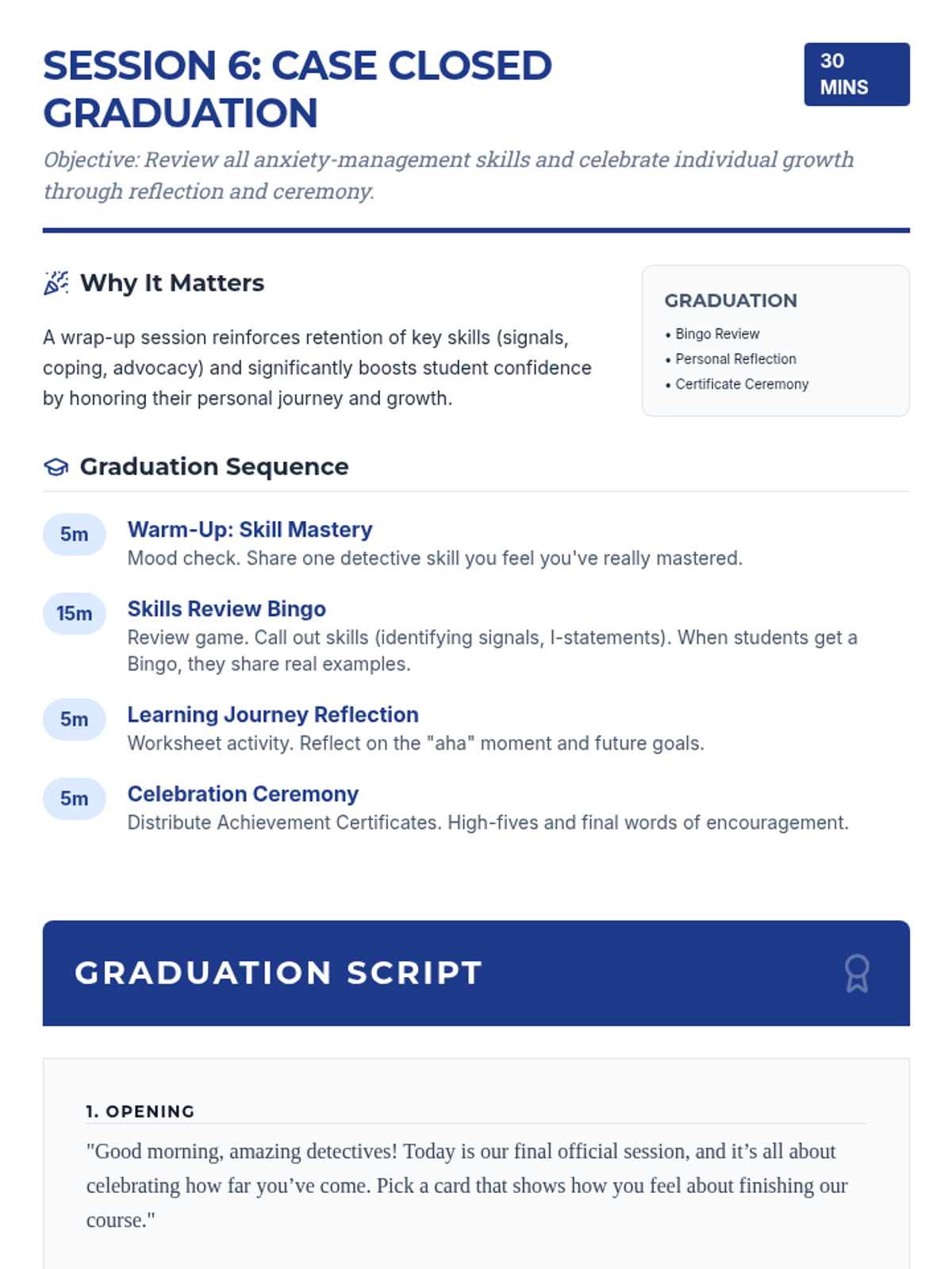 A 7-session Tier 2 intervention program for 6th-grade girls, using a detective-themed approach to build self-awareness, coping strategies, and resilience against anxiety. Students learn to identify personal signals, practice diverse coping tools, and build a strong support network through interactive activities and role-plays.