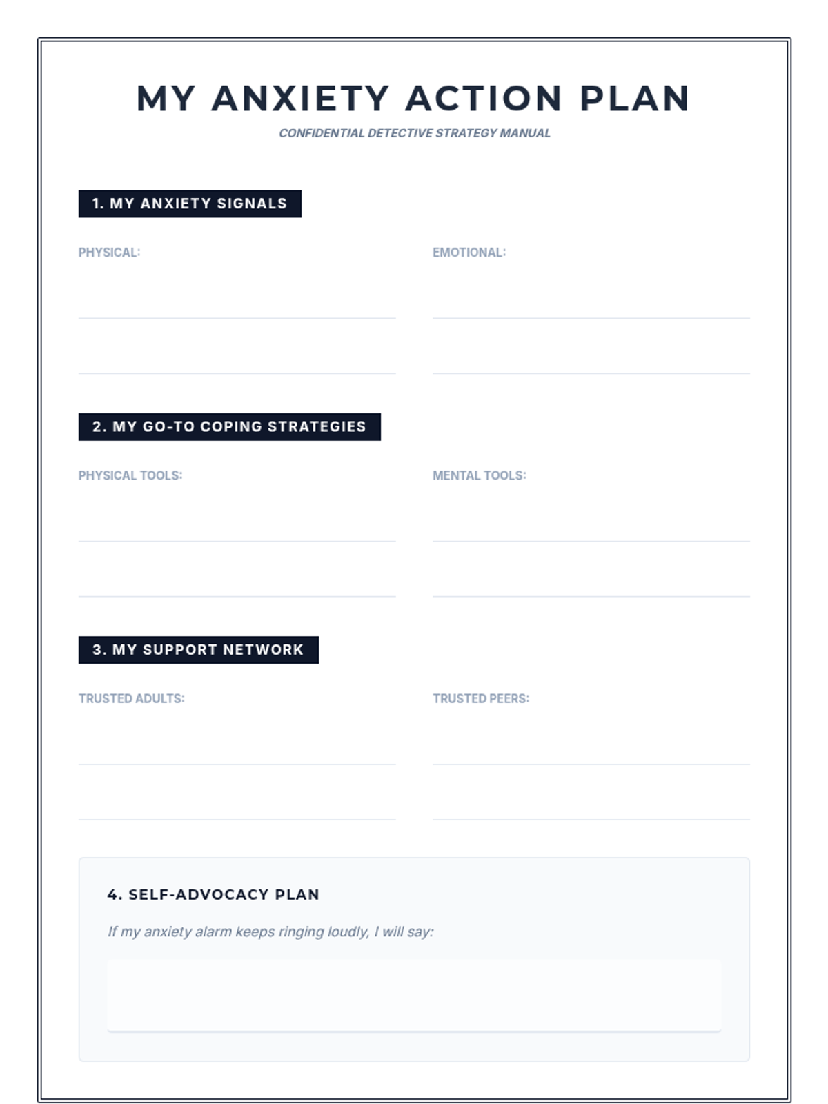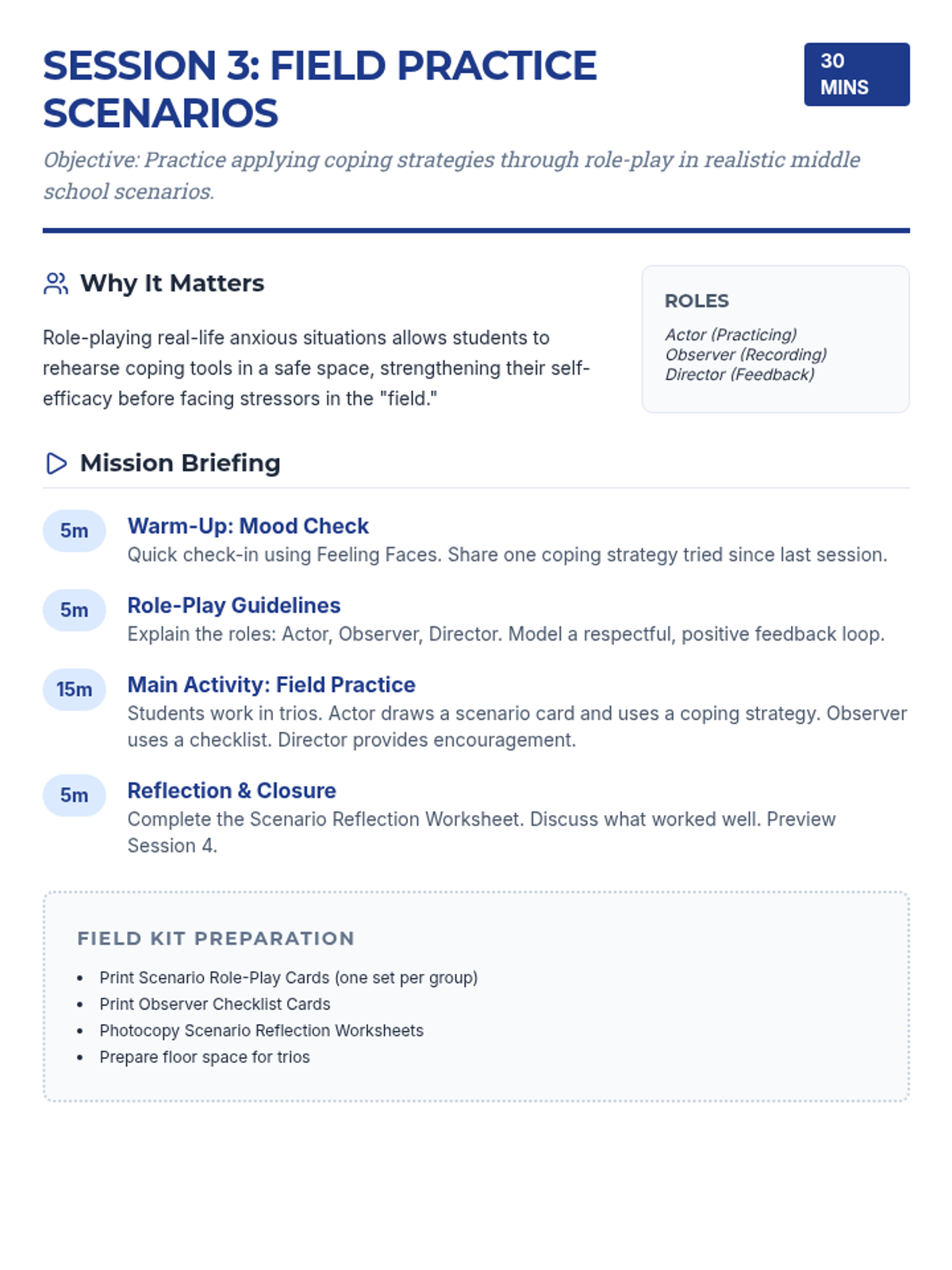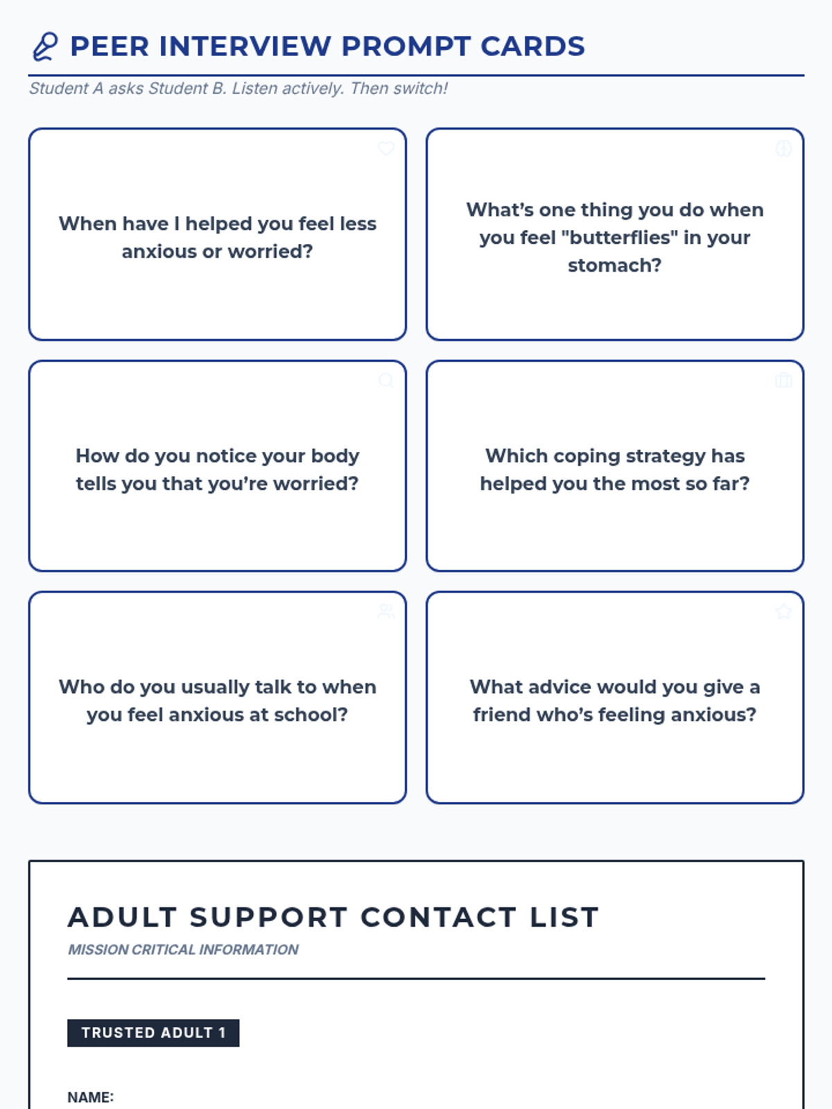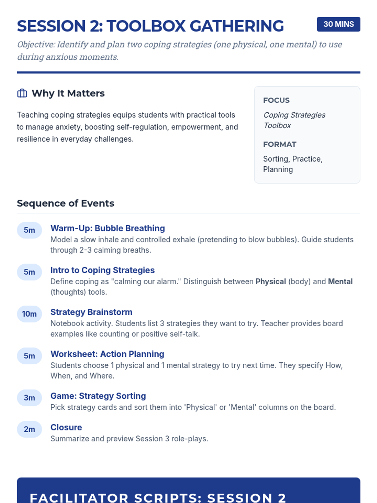 A 7-session Tier 2 intervention program for 6th-grade girls, using a detective-themed approach to build self-awareness, coping strategies, and resilience against anxiety. Students learn to identify personal signals, practice diverse coping tools, and build a strong support network through interactive activities and role-plays.