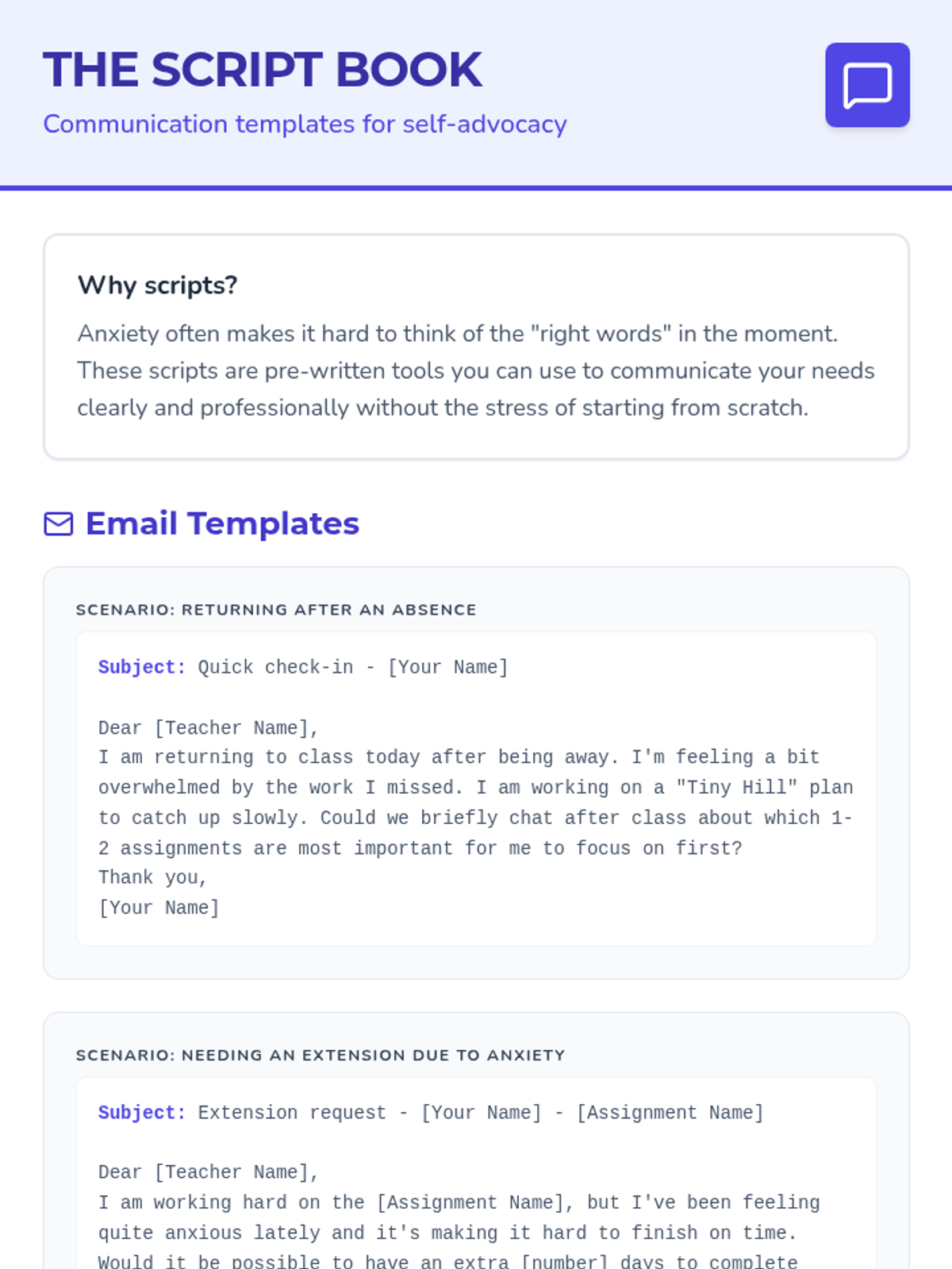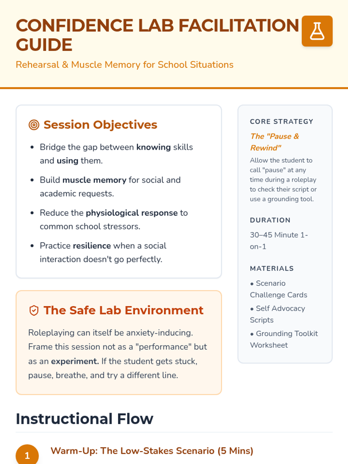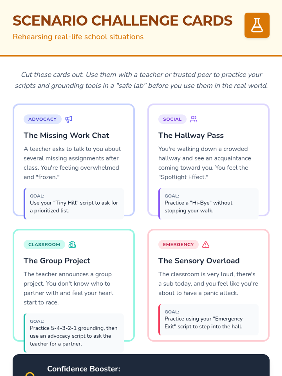 A comprehensive sequence of lessons designed for high school students managing re-entry and school-based anxiety. The curriculum focuses on physical and psychological safety, self-regulation tools, self-advocacy skills, and navigating social peer dynamics.