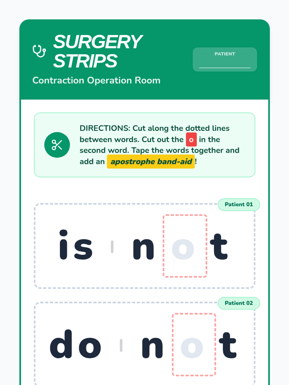 A whimsical journey for Kindergarteners to understand the apostrophe as a letter-replacing mark. Through storytelling, puppets, and 'surgery', students master the concept of contractions by visualizing the apostrophe as a placeholder for missing letters.