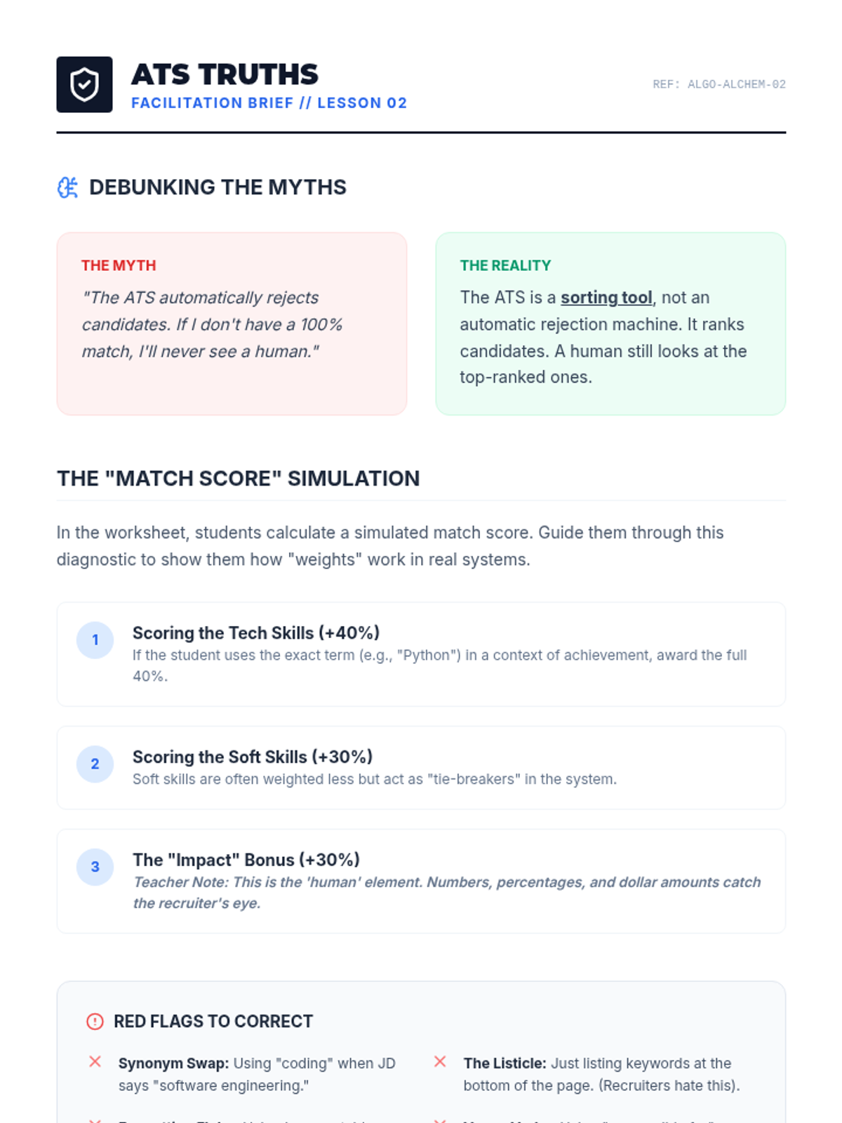 A career-readiness sequence designed for older students and undergraduates to identify their current skills, potential growth areas, and personality types using the Ikigai and Quadrant of Success models. Students move from auditing their time to creating a strategic roadmap for professional development.