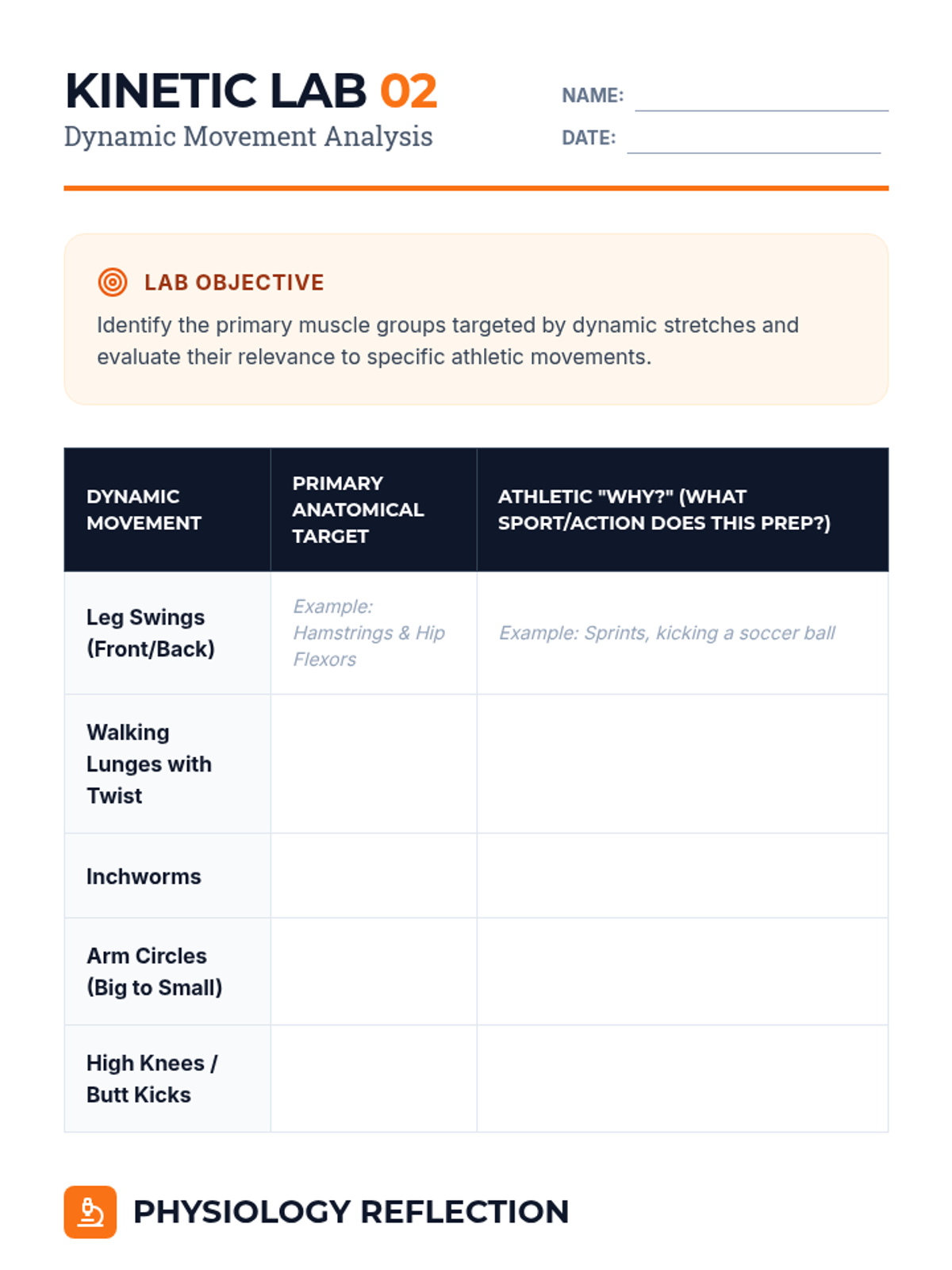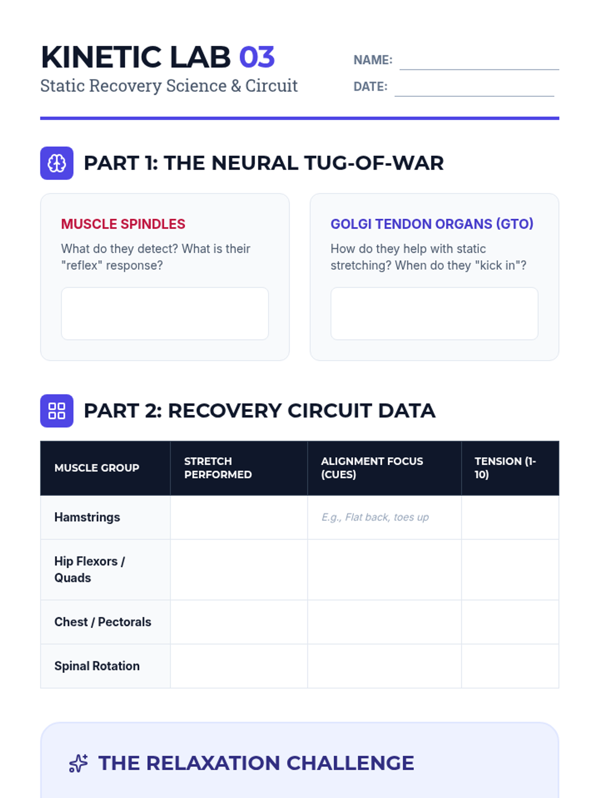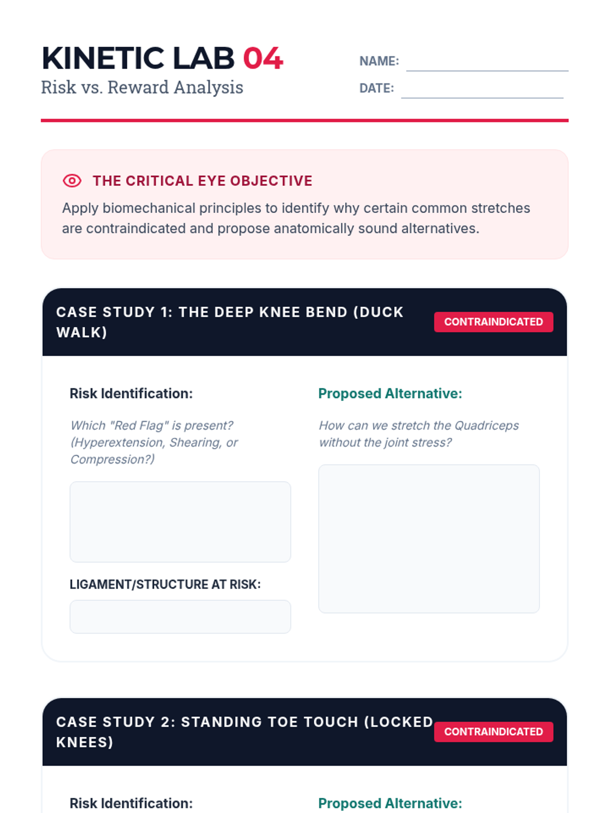 This 10th-grade sequence explores the anatomical and biomechanical foundations of flexibility. Students will move from identifying muscle groups and joint structures to practicing dynamic and static techniques, culminating in the ability to critique unsafe exercises and design safe, effective routines.