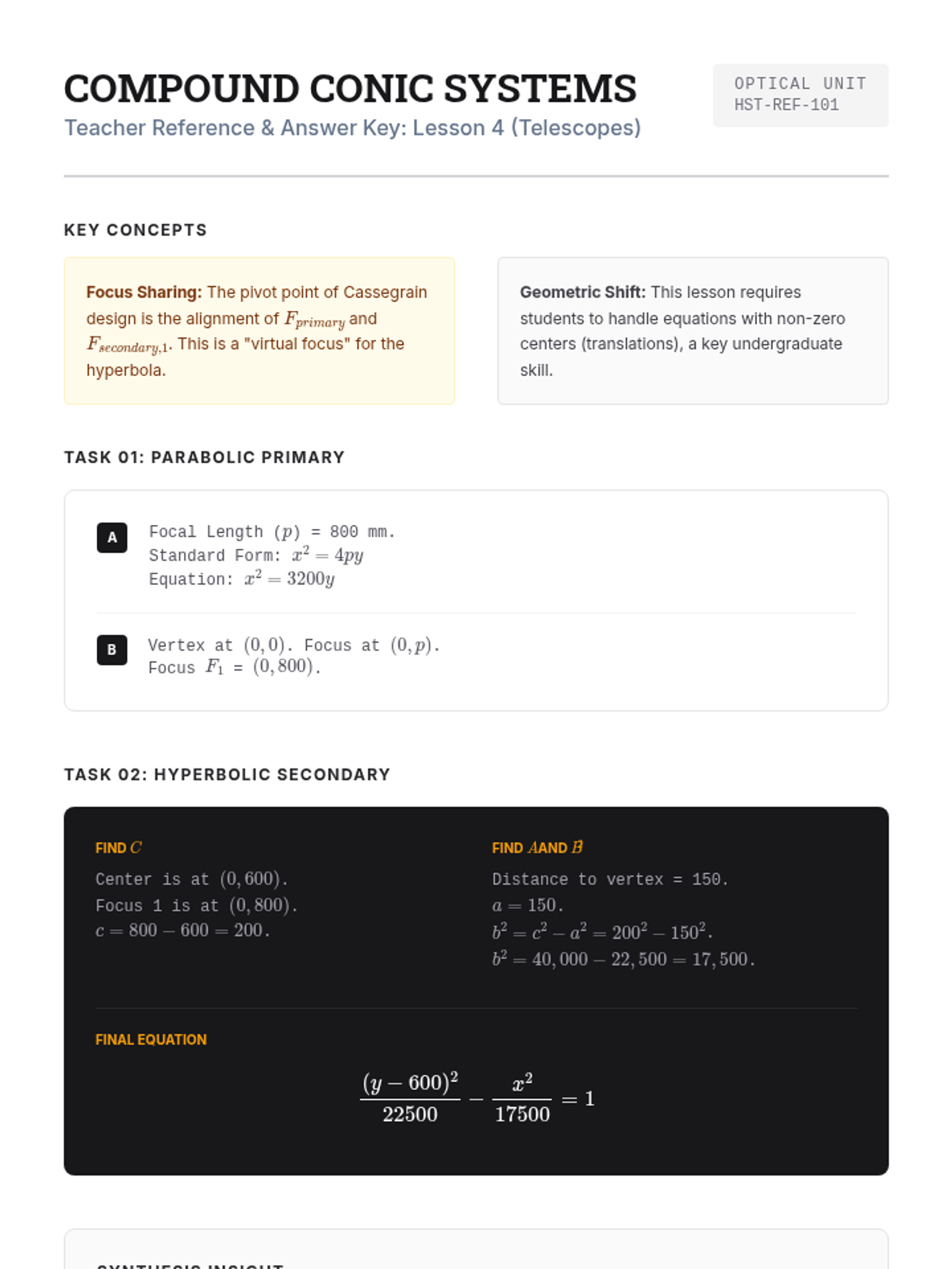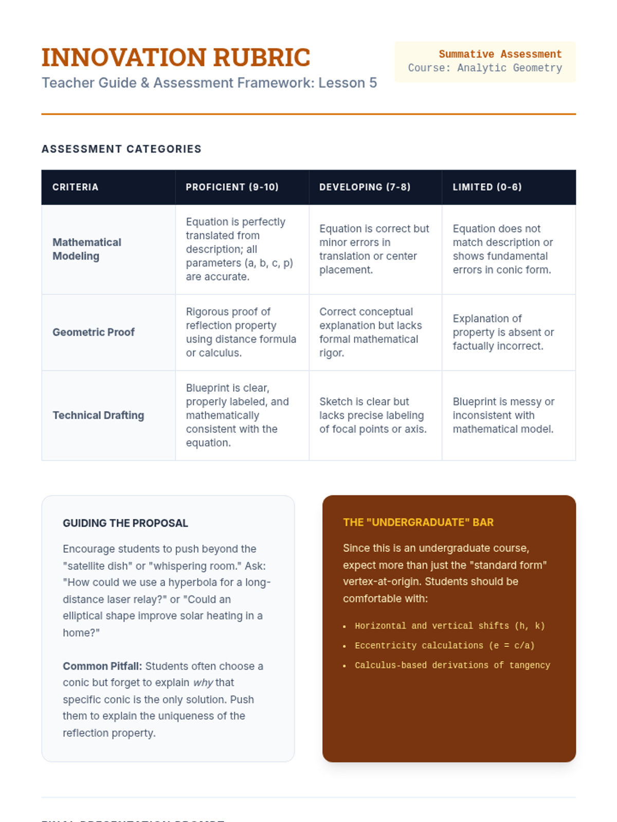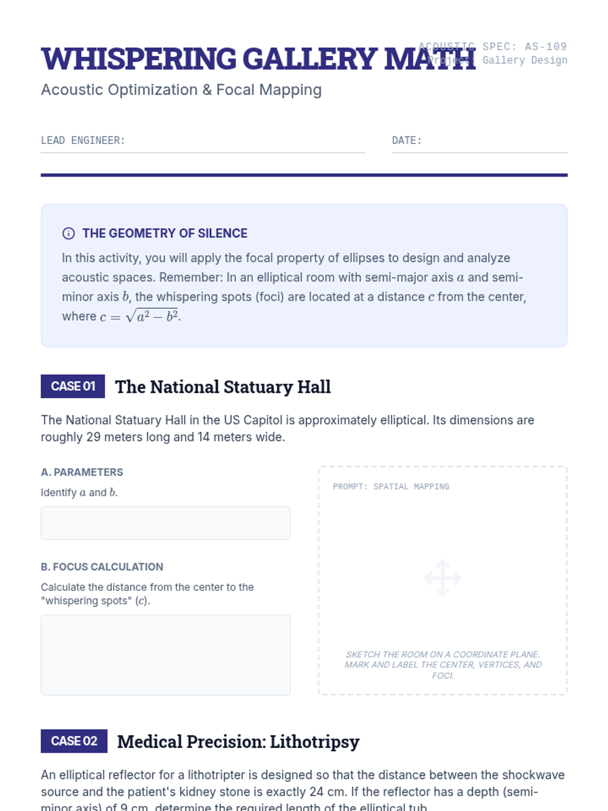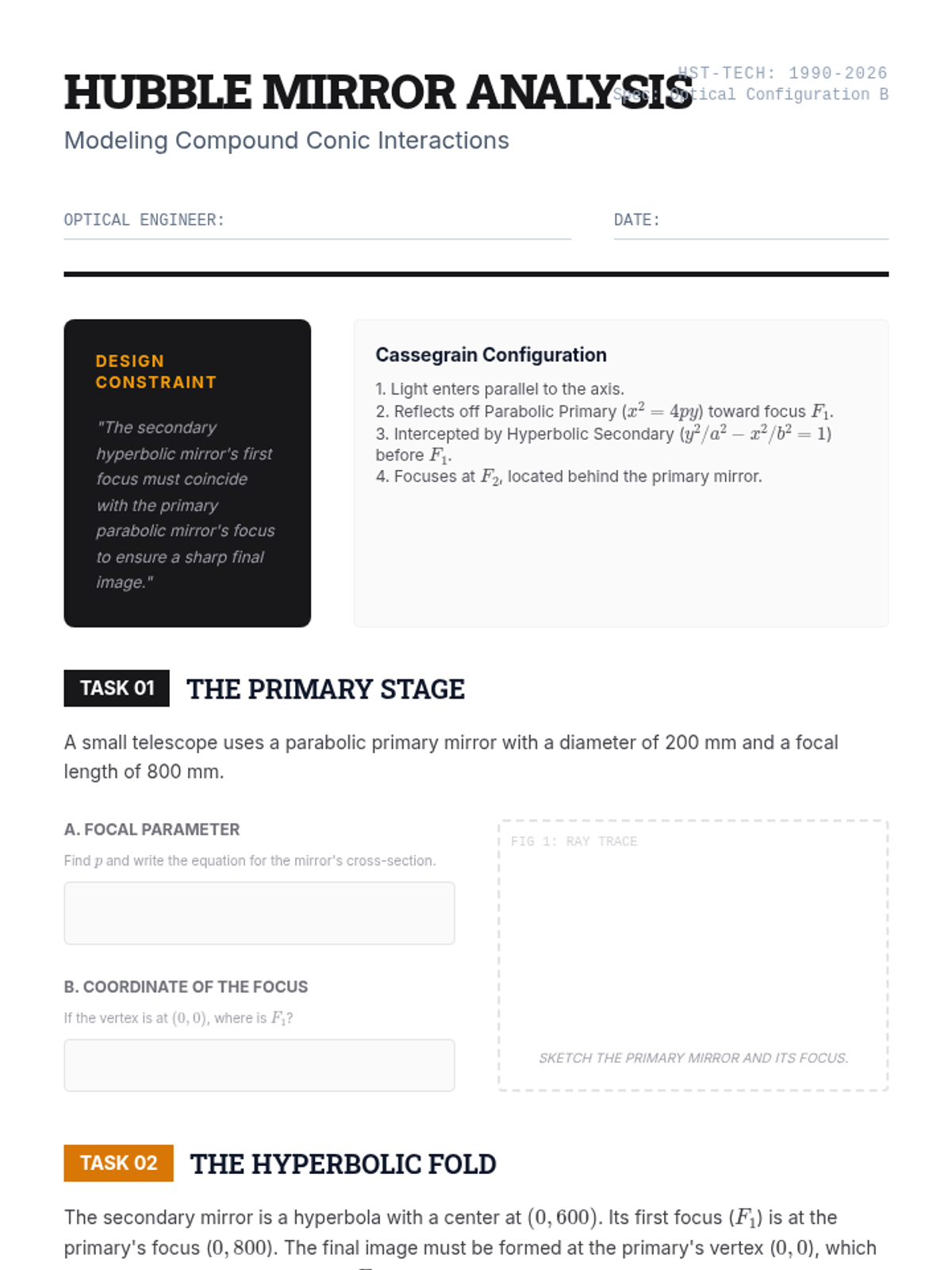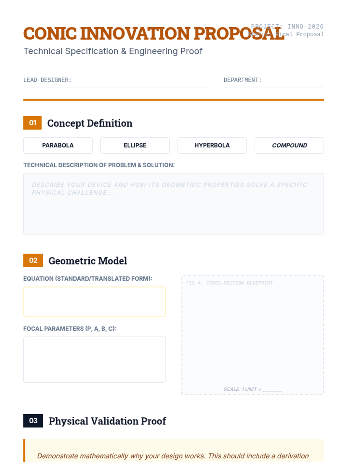 A project-based exploration of analytic geometry focusing on the physics and engineering applications of conic sections, including reflection properties, navigation, and optical systems.