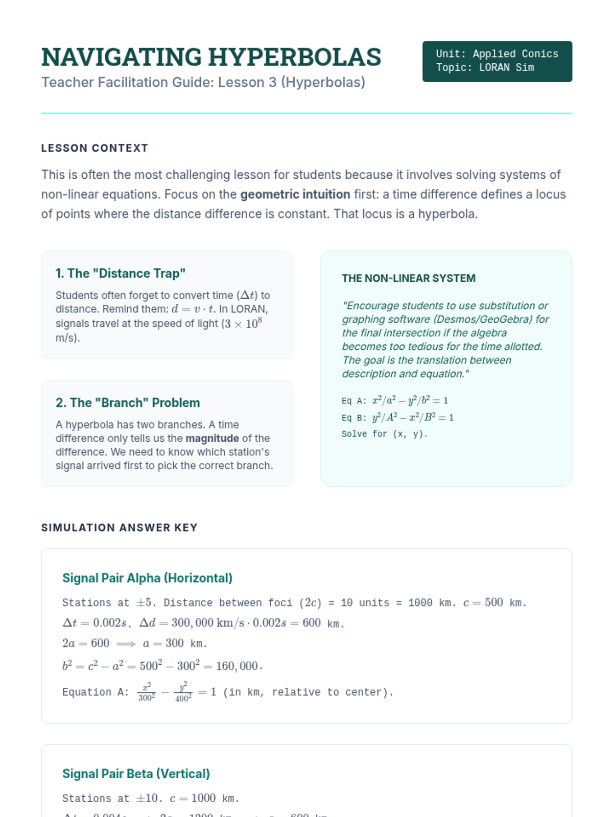 A comprehensive lesson sequence for 12th Grade Pre-Calculus/Calculus students on solving and visualizing systems of nonlinear equations involving conic sections. Students move from sketching predictions to algebraic verification and creative system design.