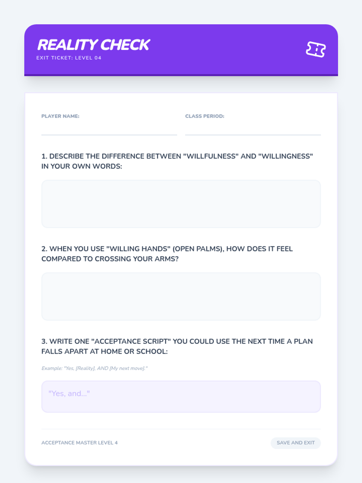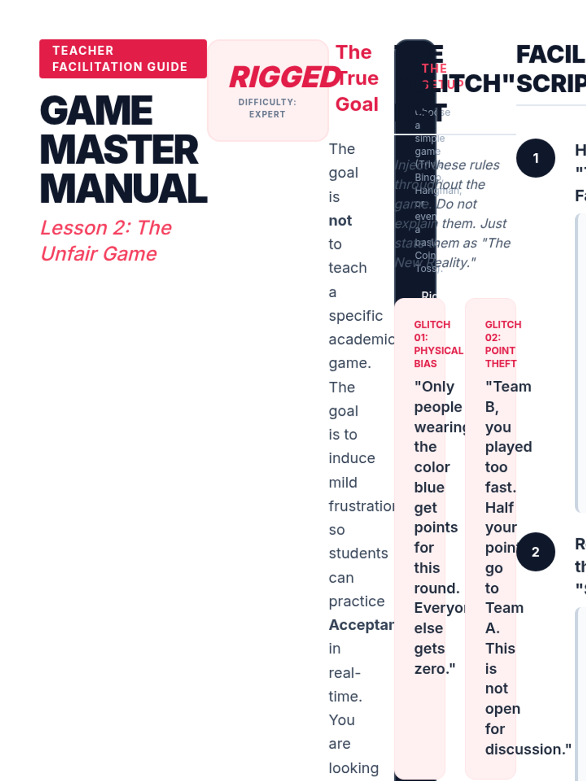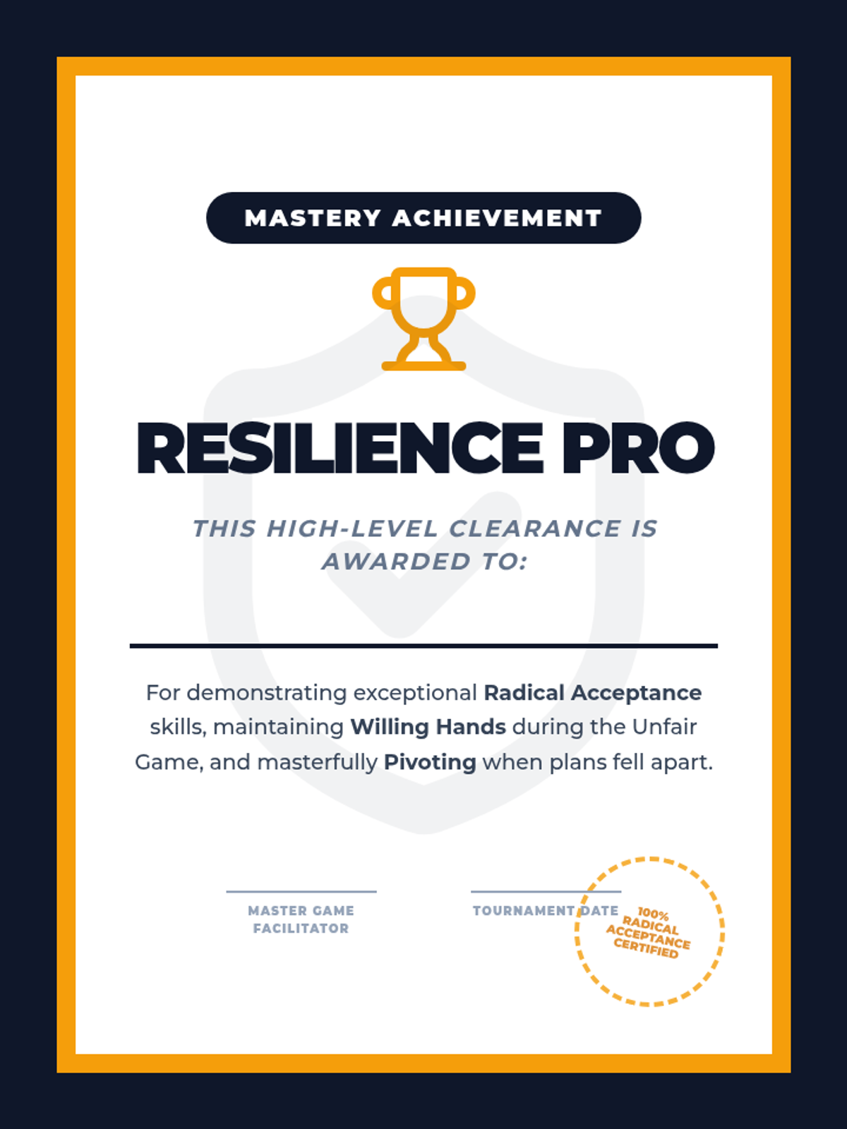 A game-based learning sequence for 7th graders to practice radical acceptance. Through improv, rigged games, and obstacle courses, students learn to accept reality as it is to move forward effectively.
