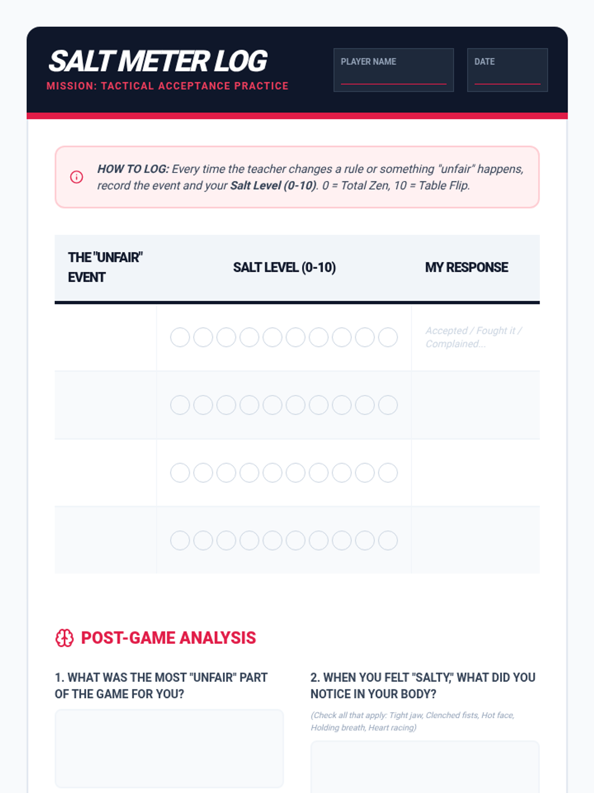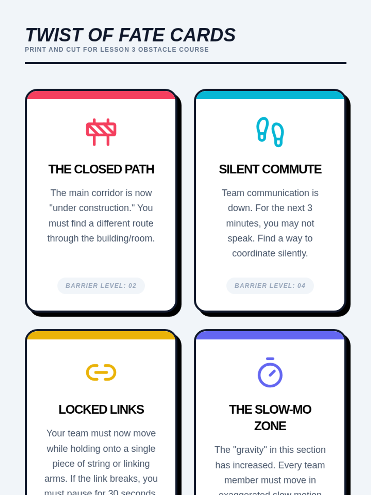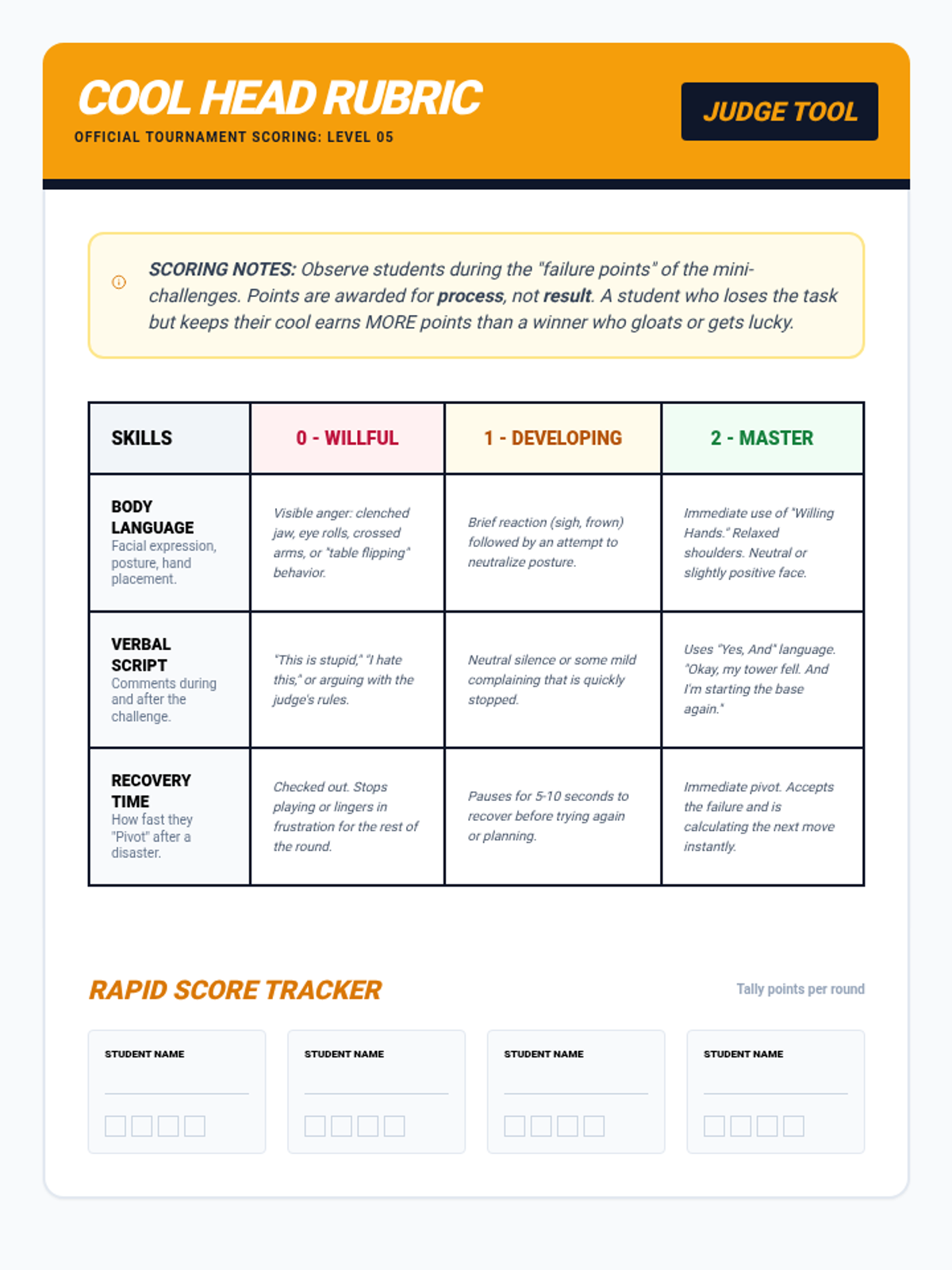 A game-based learning sequence for 7th graders to practice radical acceptance. Through improv, rigged games, and obstacle courses, students learn to accept reality as it is to move forward effectively.