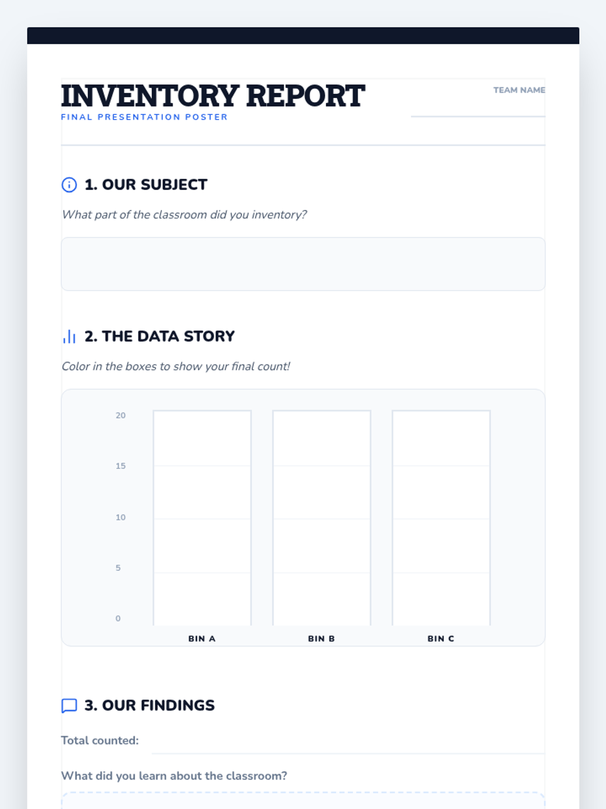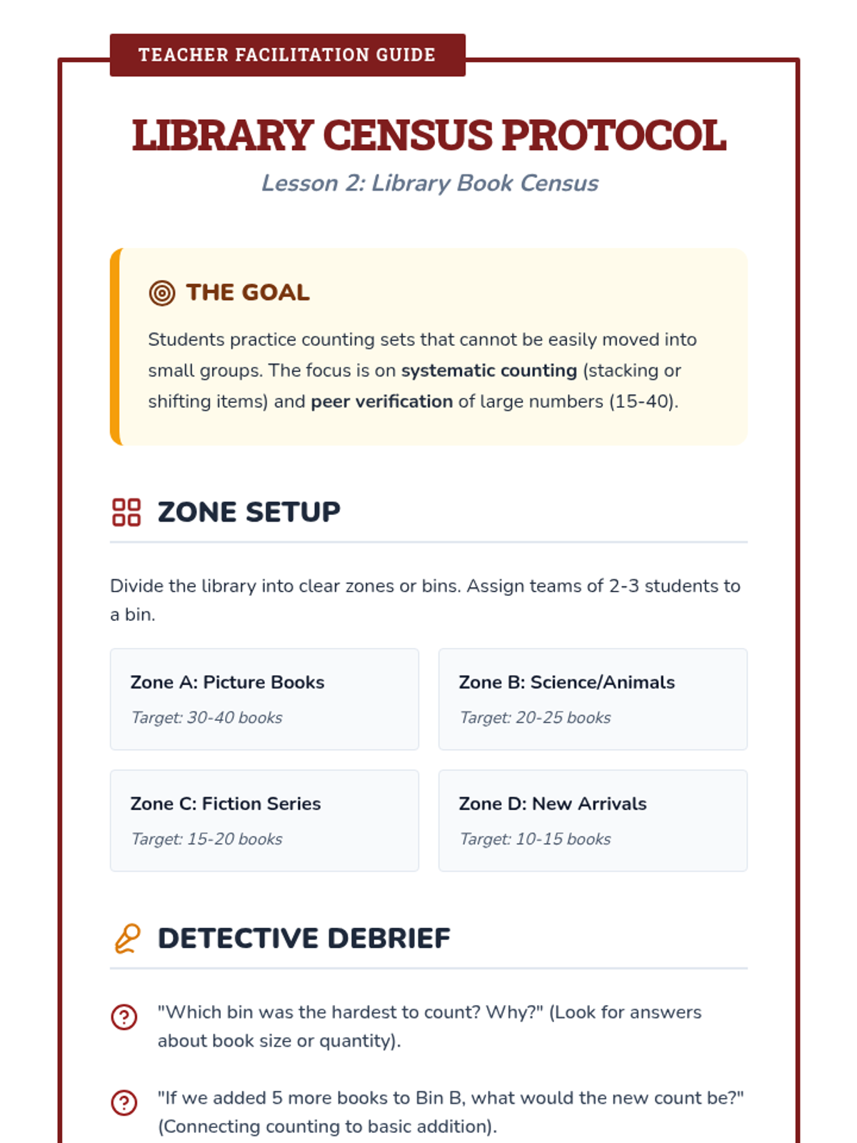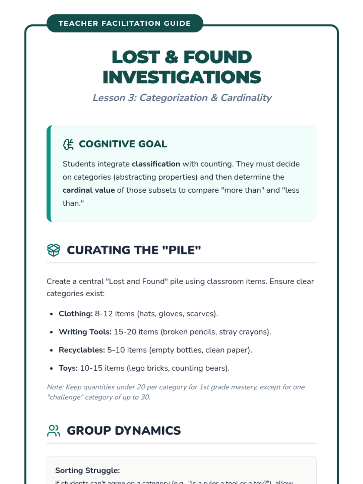 A project-based sequence where 1st graders become 'Classroom Inventory Specialists,' counting supplies, books, and lost items to understand how counting helps organize their community.