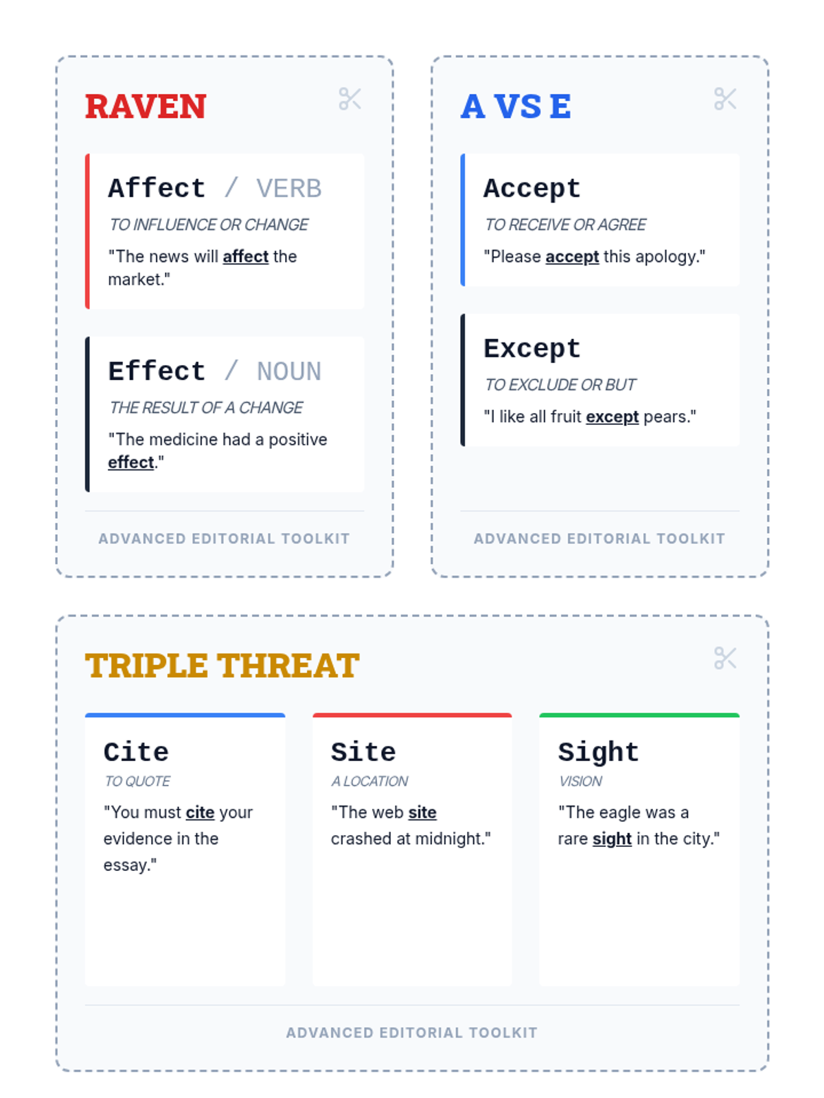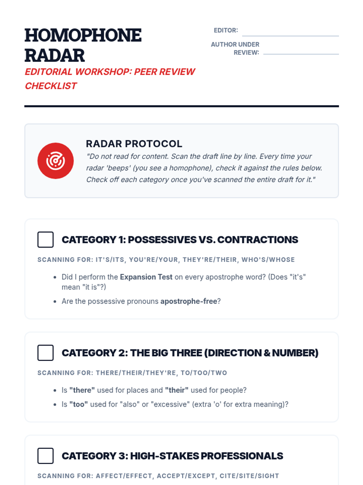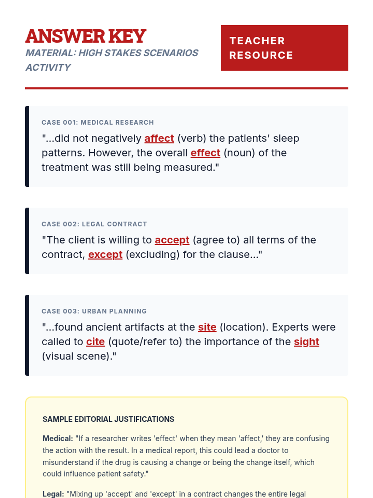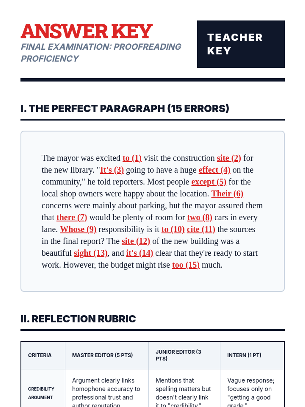 A rigorous writer's workshop sequence targeting homophone accuracy in formal writing. Students master common and advanced homophones through grammatical analysis and peer-editing cycles.