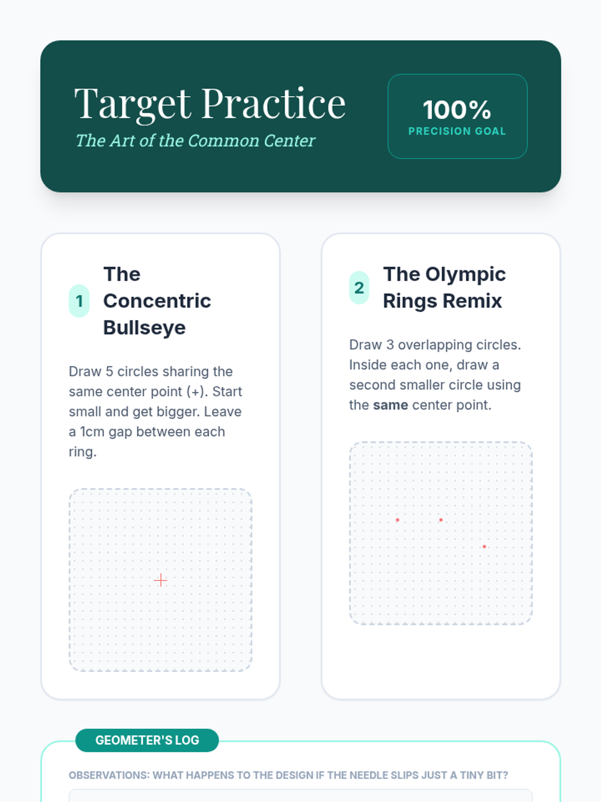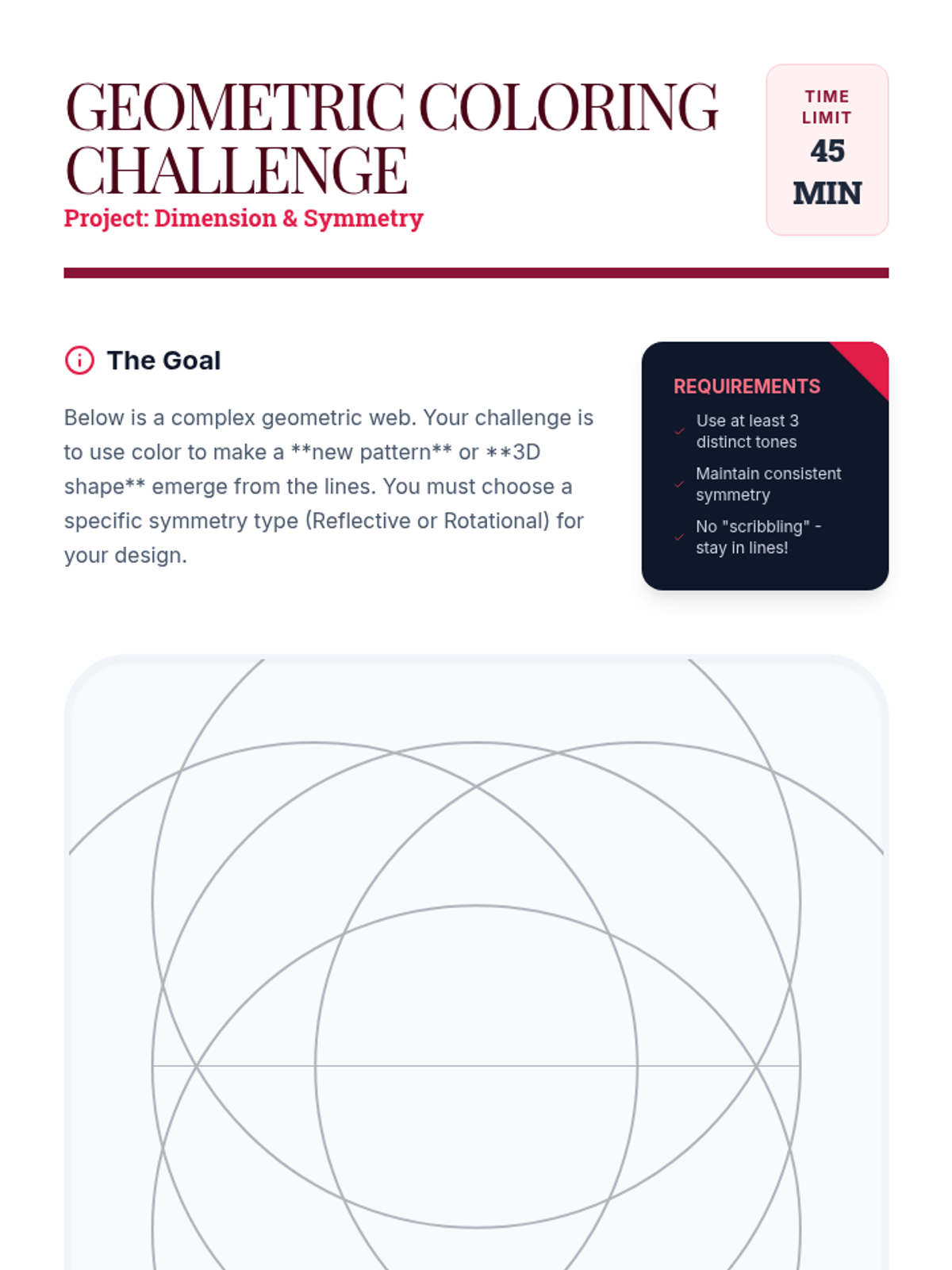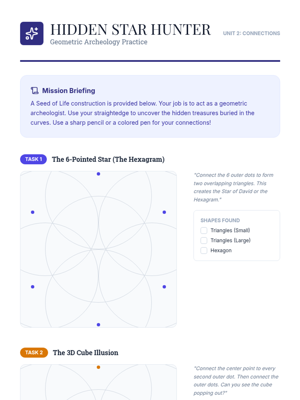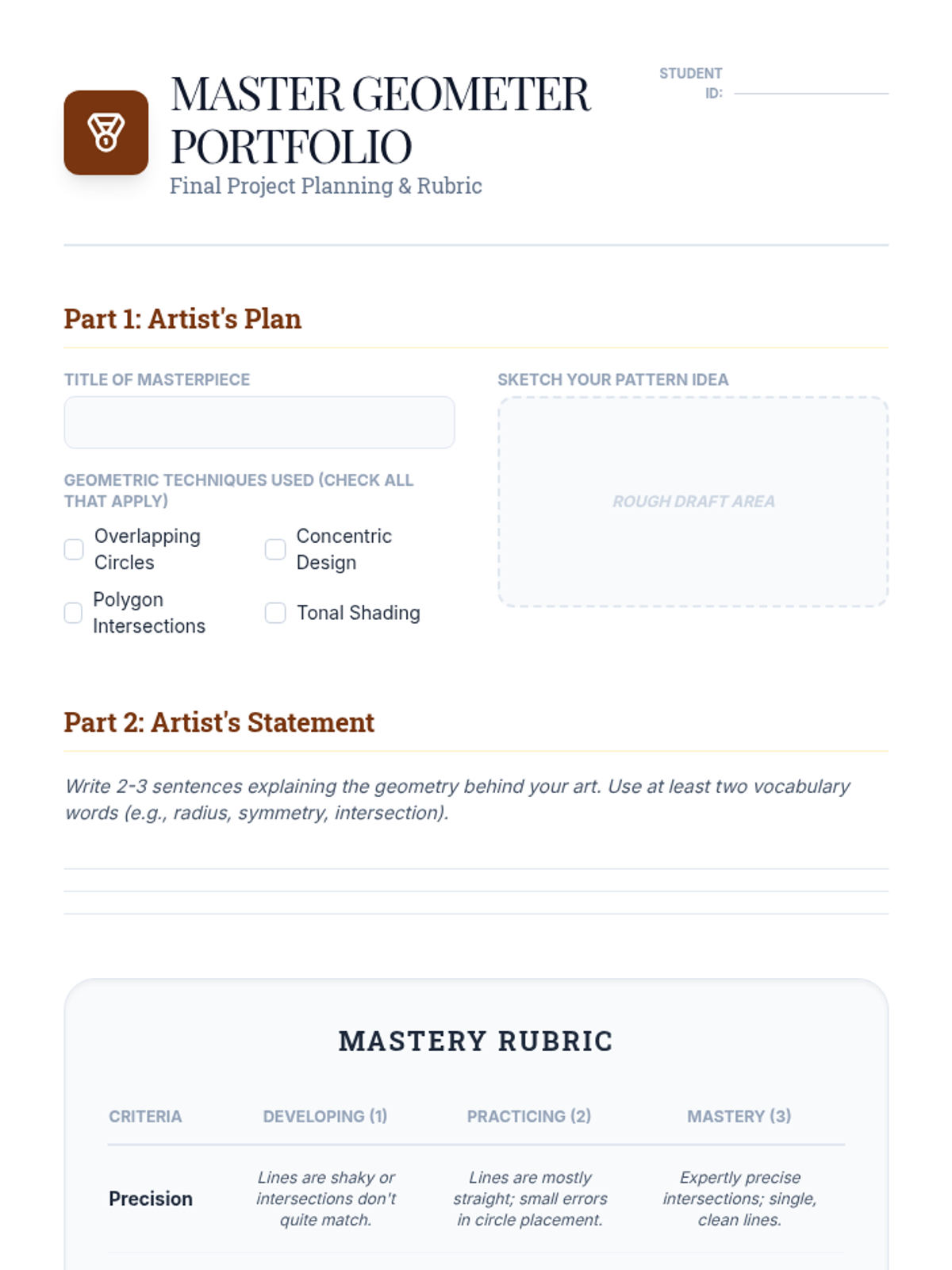 A 4th-grade geometry sequence exploring the intersection of math and art. Students master compass and straightedge constructions, moving from basic overlapping circles to complex geometric patterns and optical illusions.