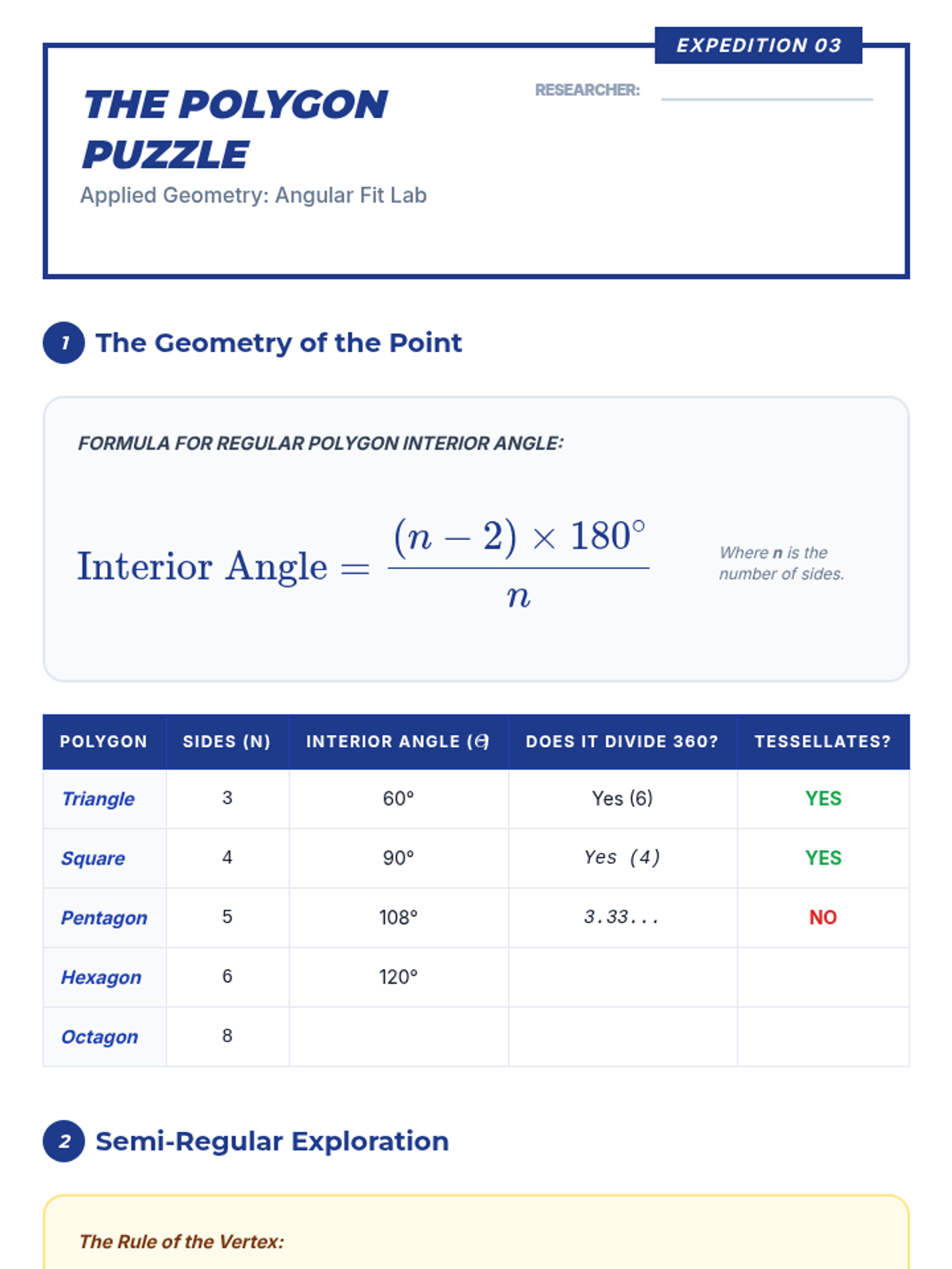 This 8th Grade Math sequence explores the properties of triangles, focusing on the Triangle Angle Sum Theorem and its applications in algebraic problem-solving. Students progress from hands-on measurement to complex multi-step relay challenges.