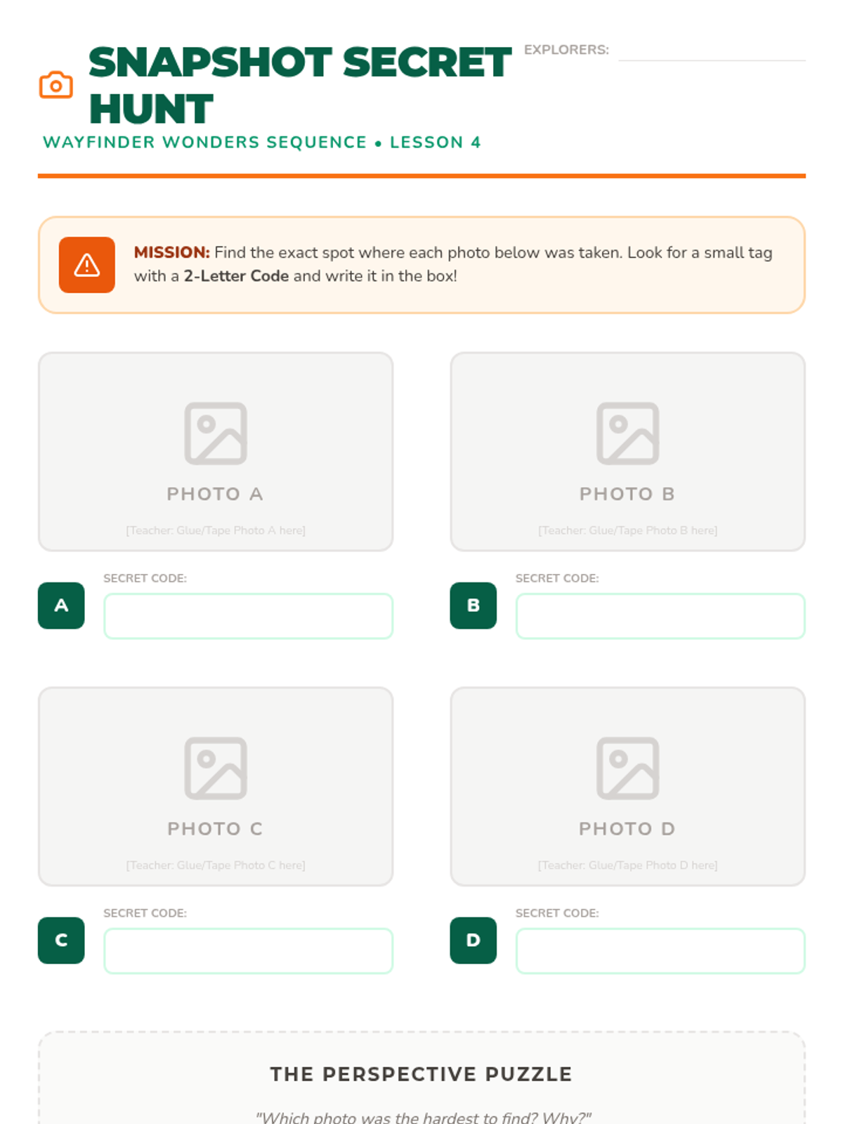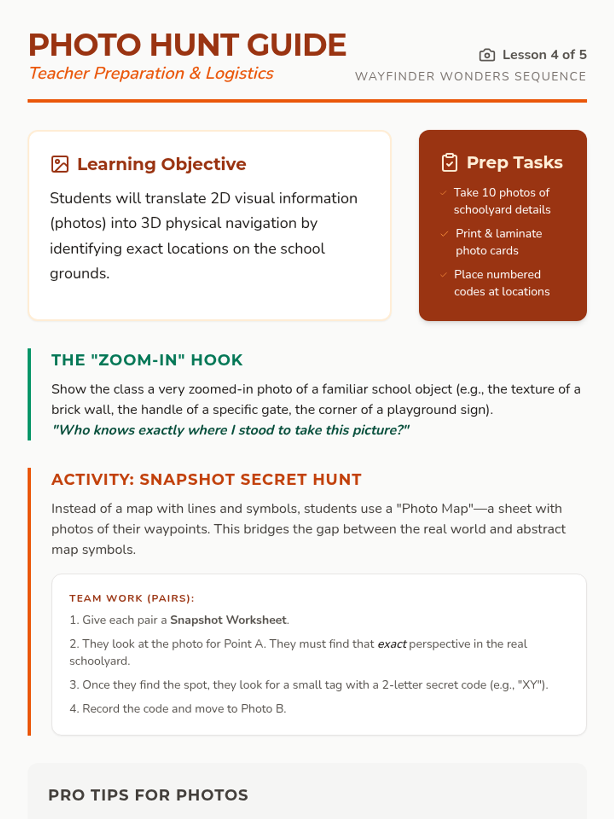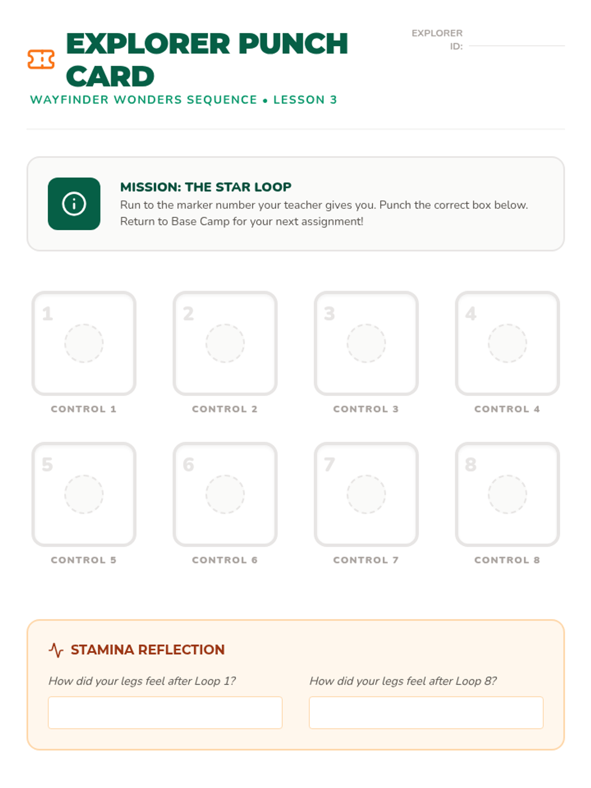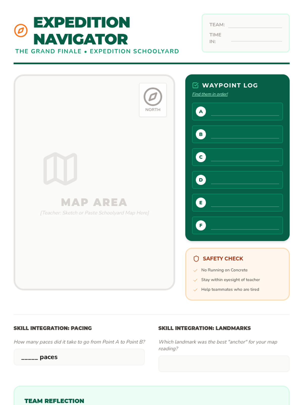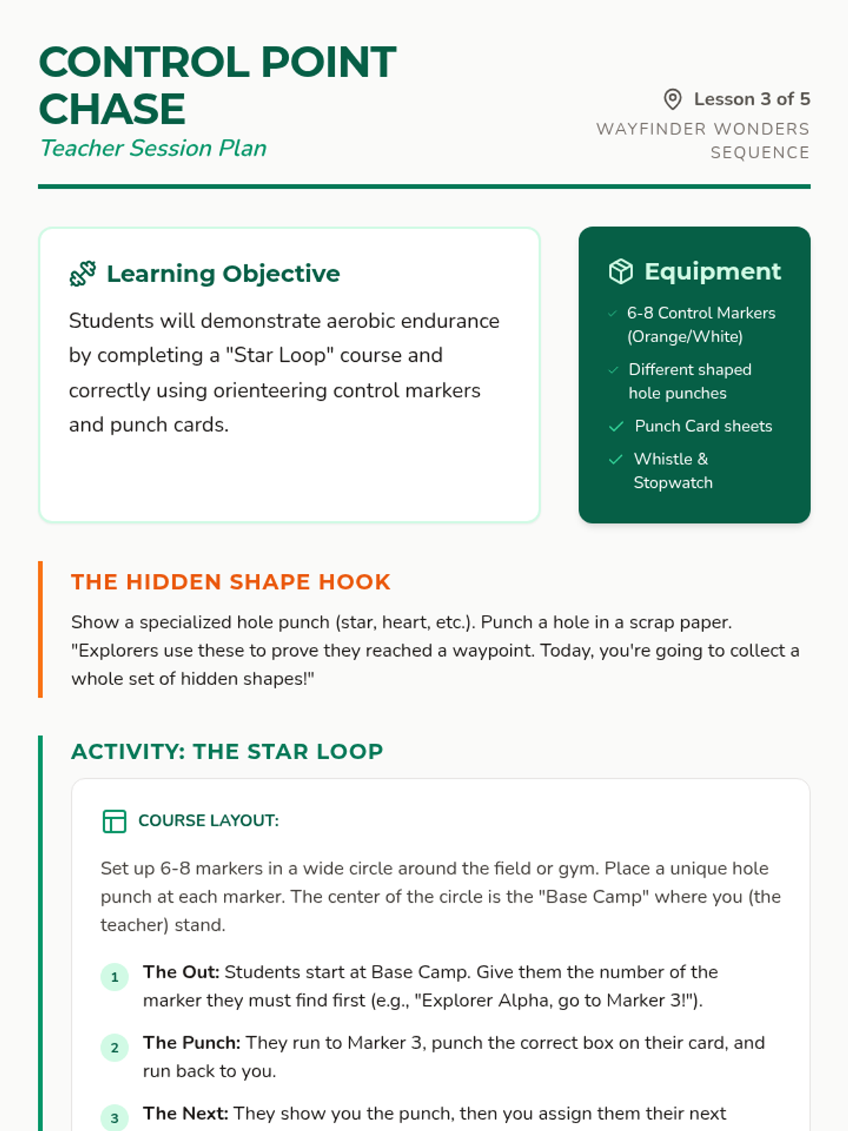 A physical and cognitive journey for 3rd graders to master the basics of navigation, pacing, and orienteering through active, outdoor-focused challenges. Students move from measuring their own stride to completing a full-scale schoolyard expedition.