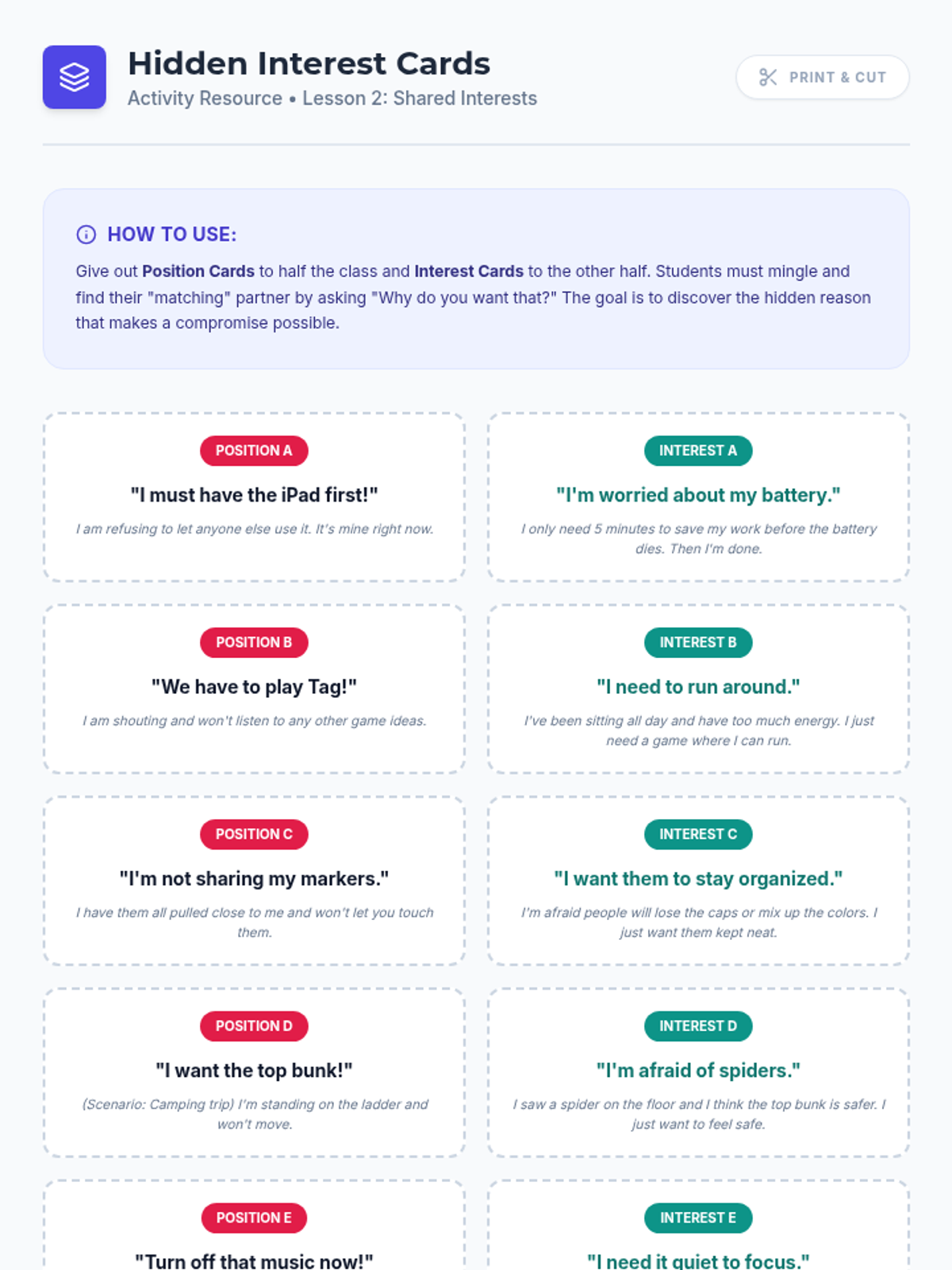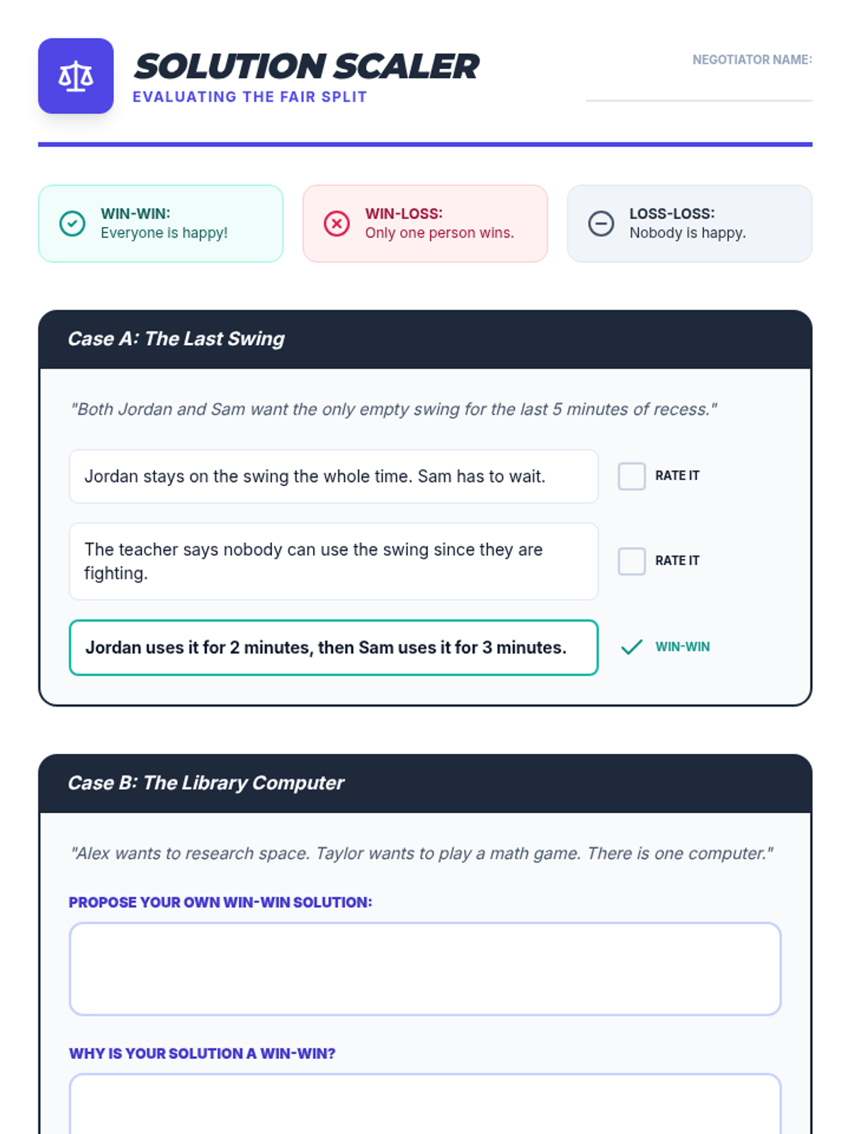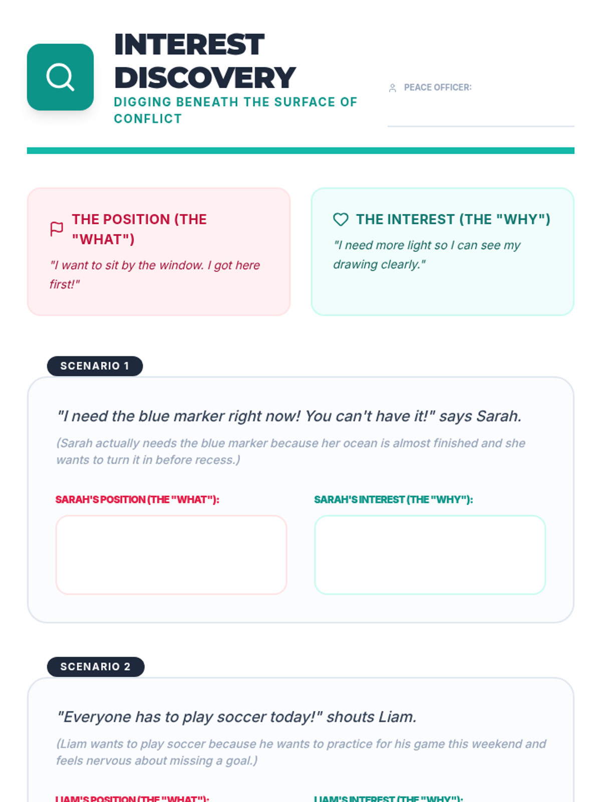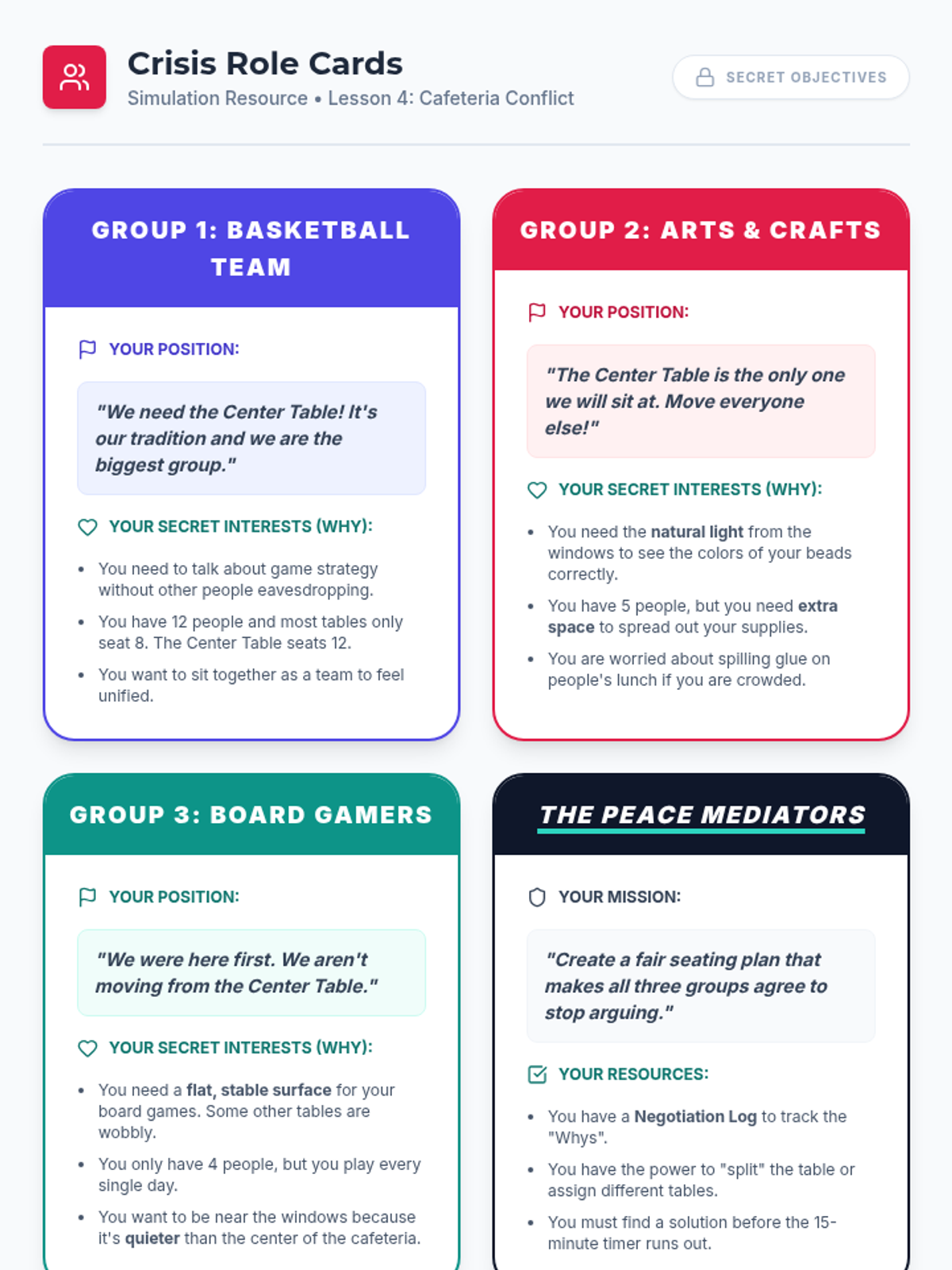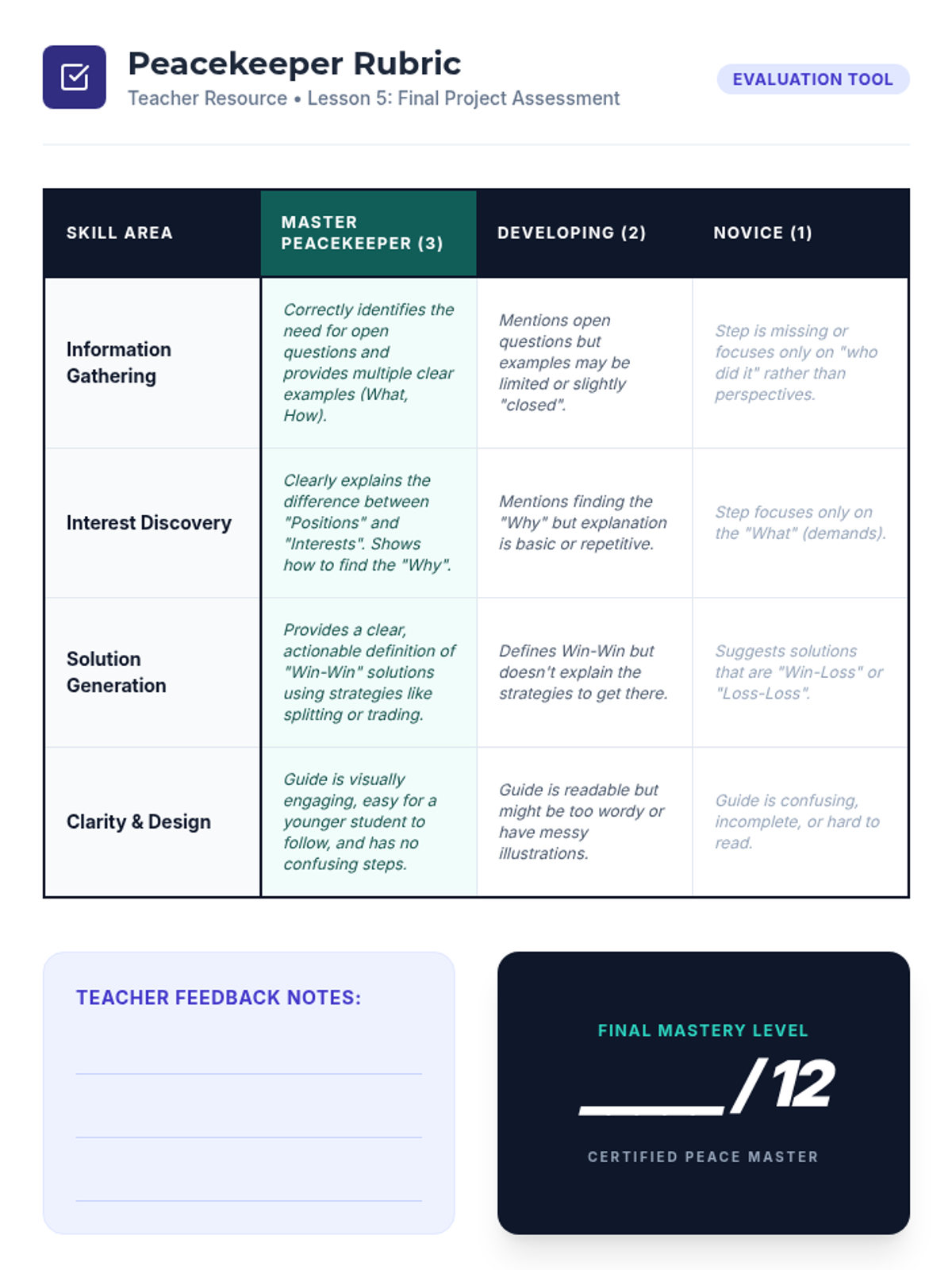 A 5th-grade social communication sequence focusing on peer mediation and negotiation. Students progress from gathering perspectives to managing complex simulations, ending with the creation of a mediation guide for others.