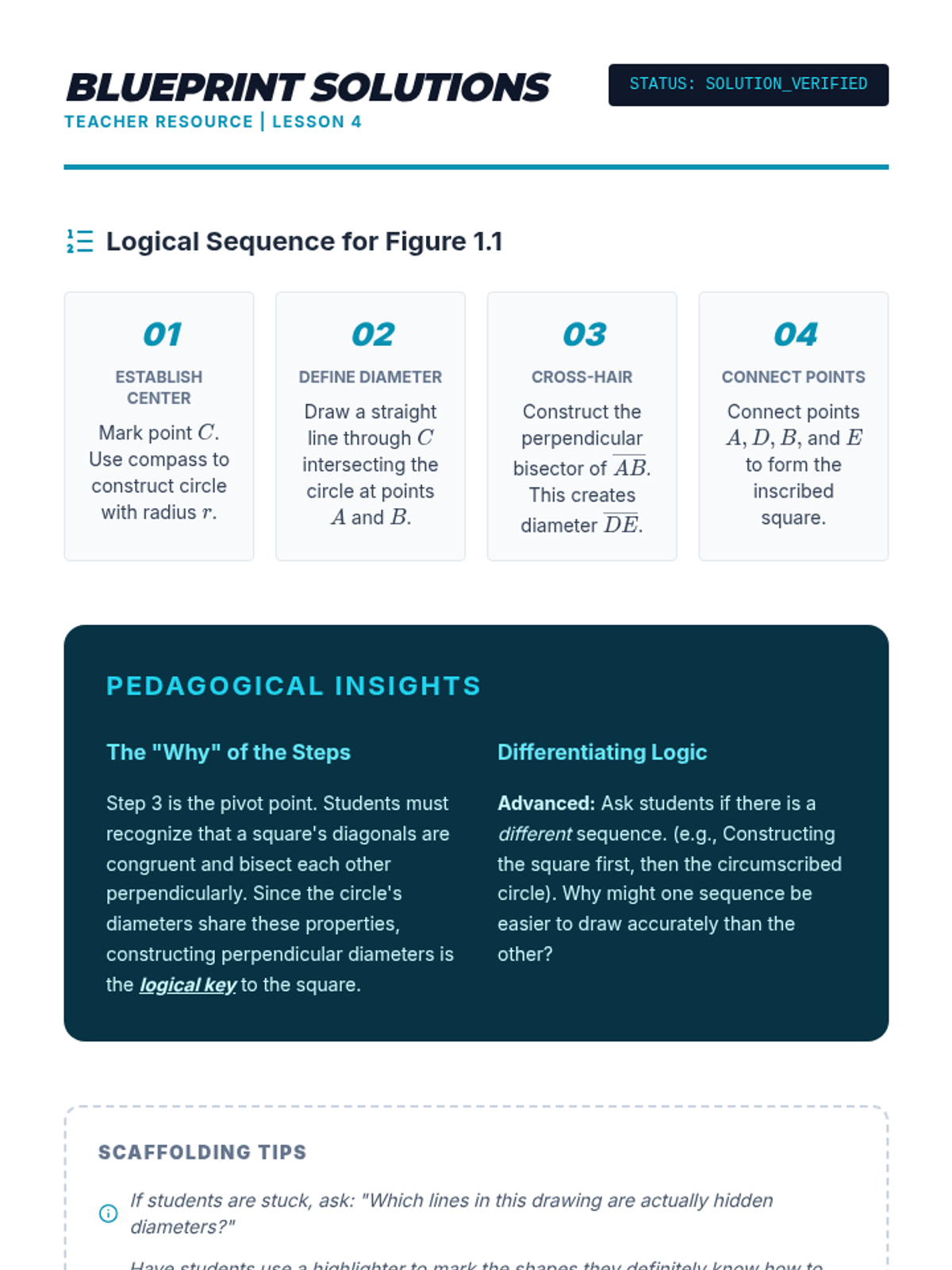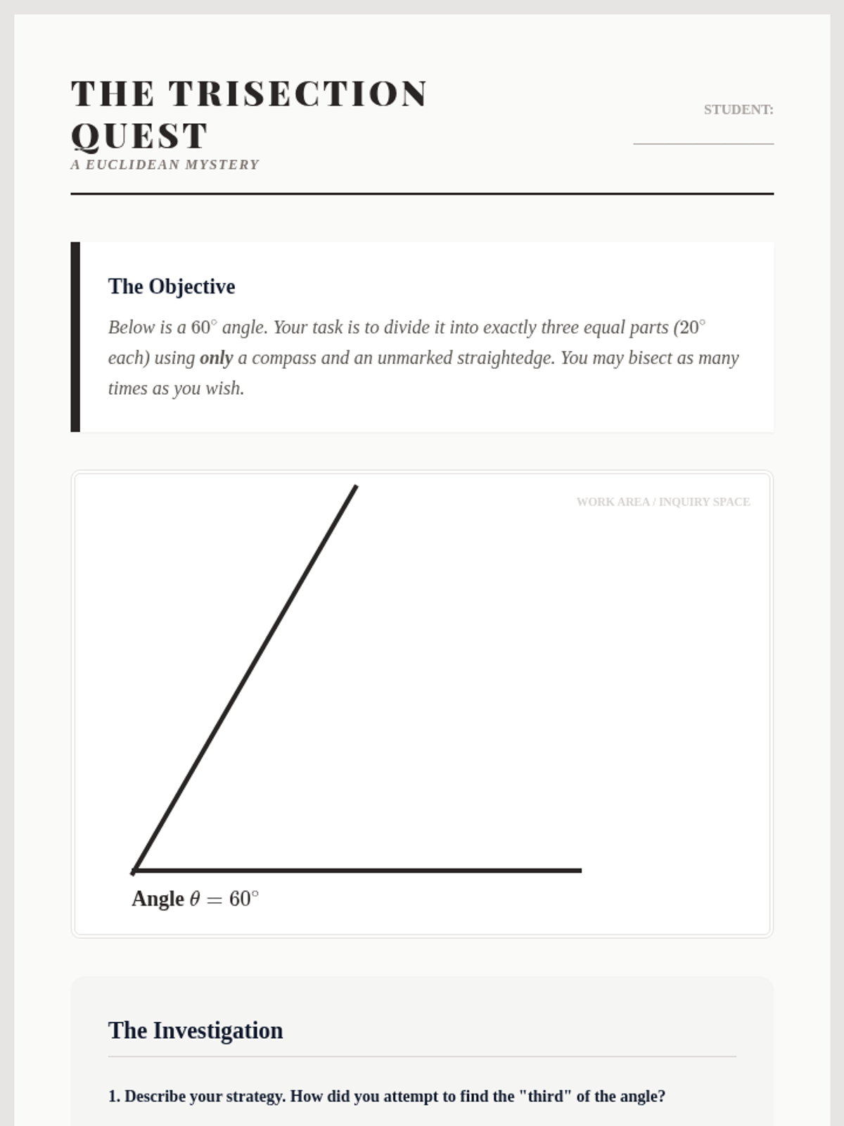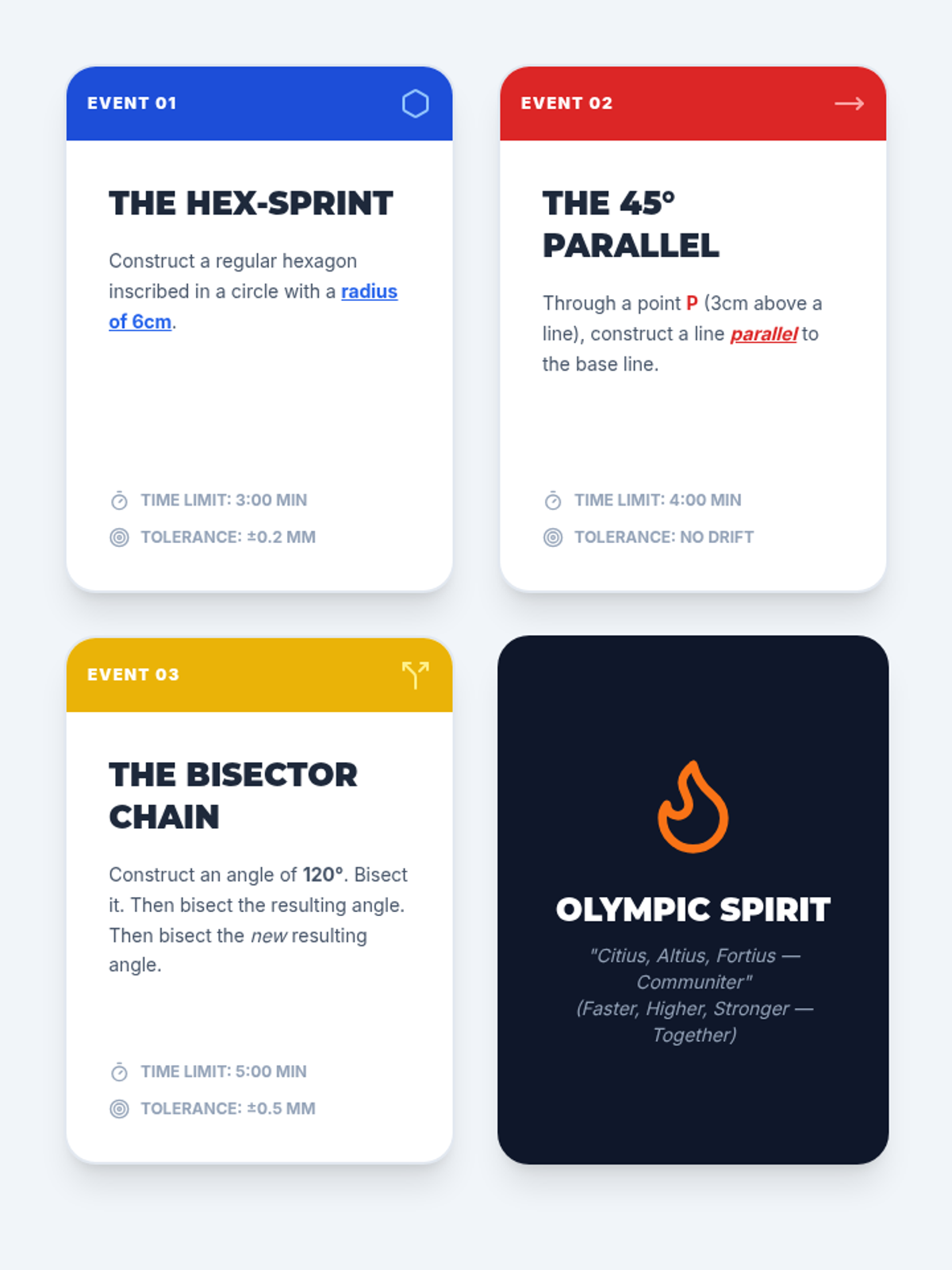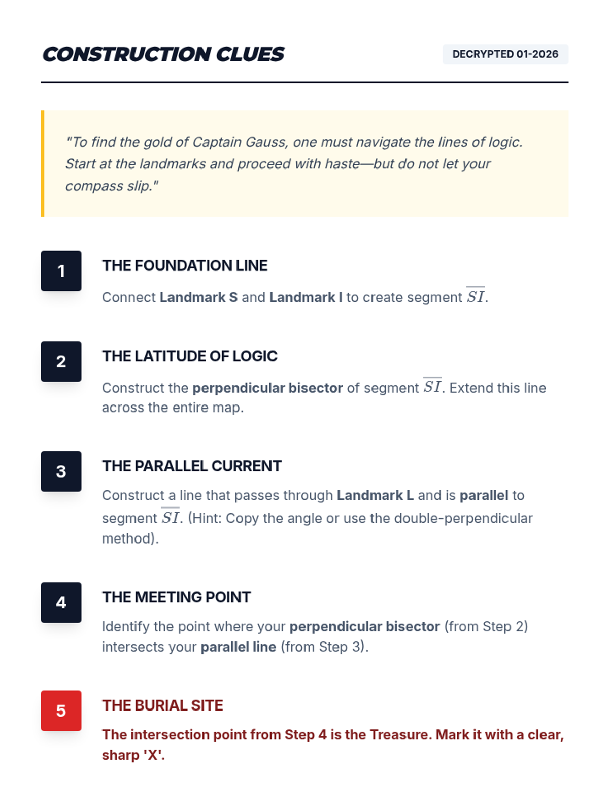 A 7th-grade geometry sequence focusing on the precision, logic, and limitations of geometric constructions through gamified challenges and error analysis. Students explore the 'why' behind compass and straightedge techniques while honing their technical skills.