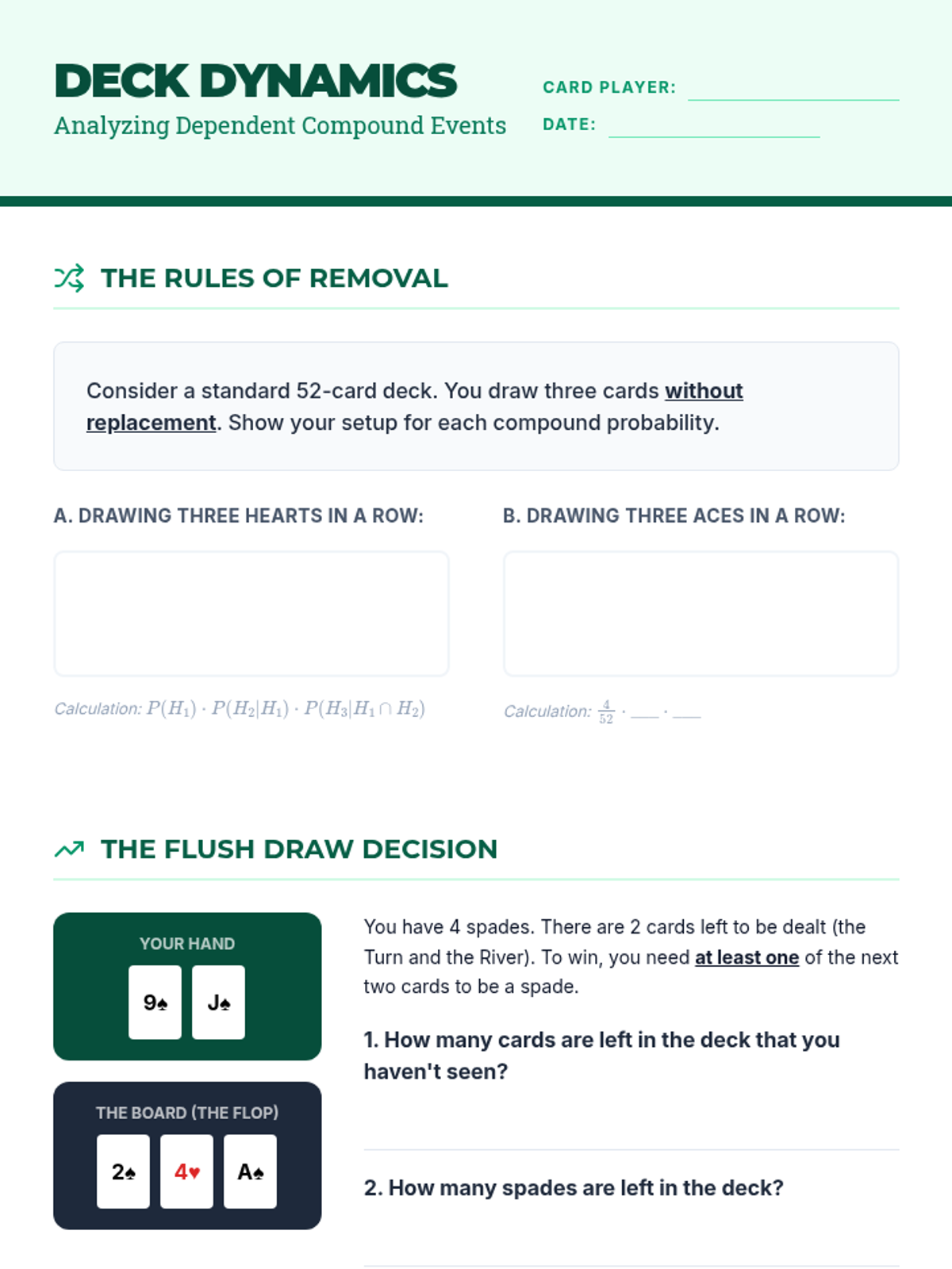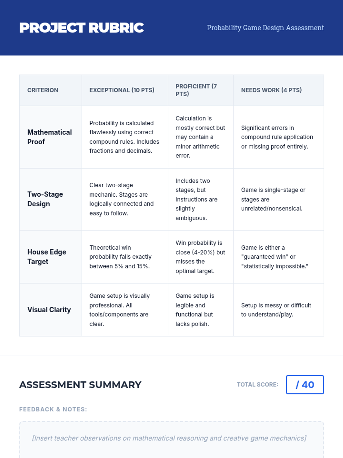 A 12th-grade mathematics unit exploring compound probability through the lens of casino games, lotteries, and game design, focusing on the distinction between independent and dependent events.