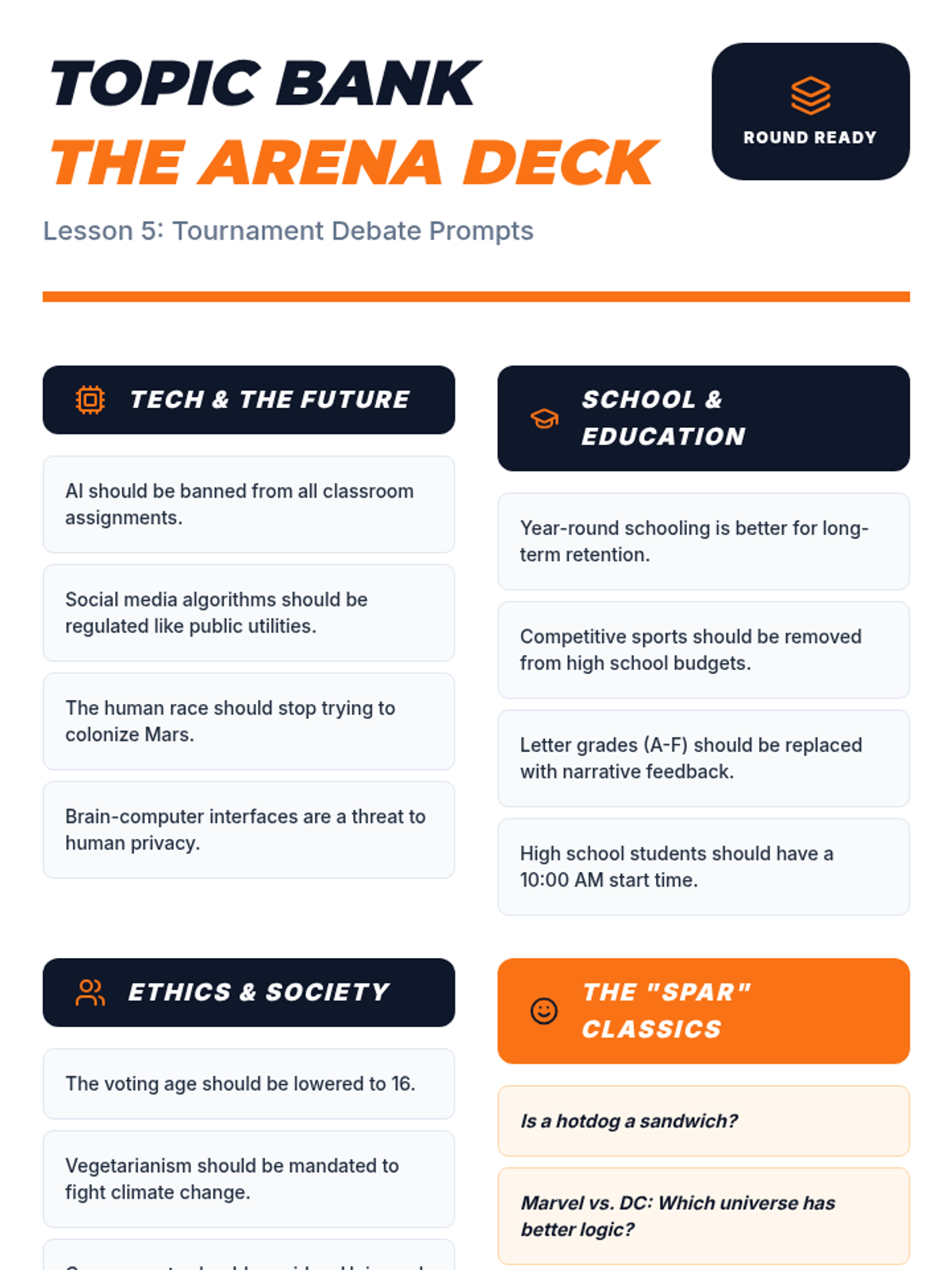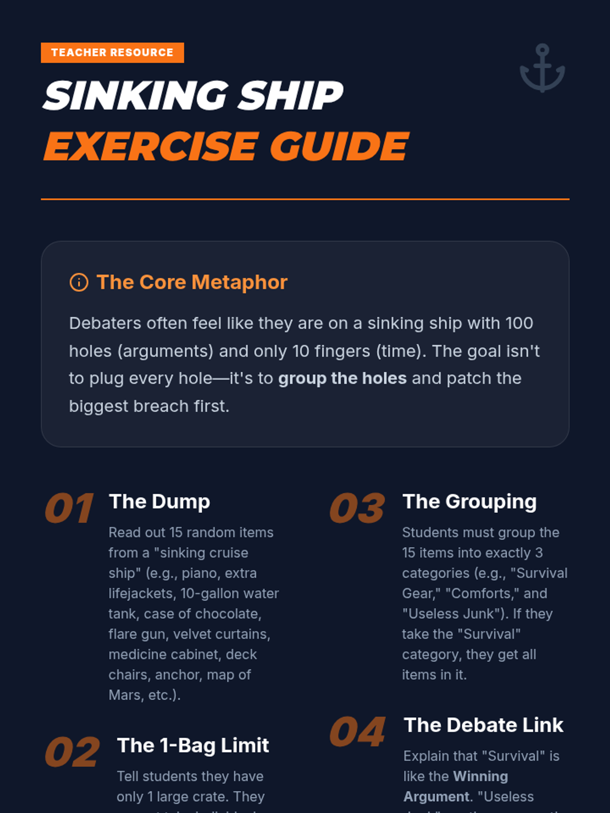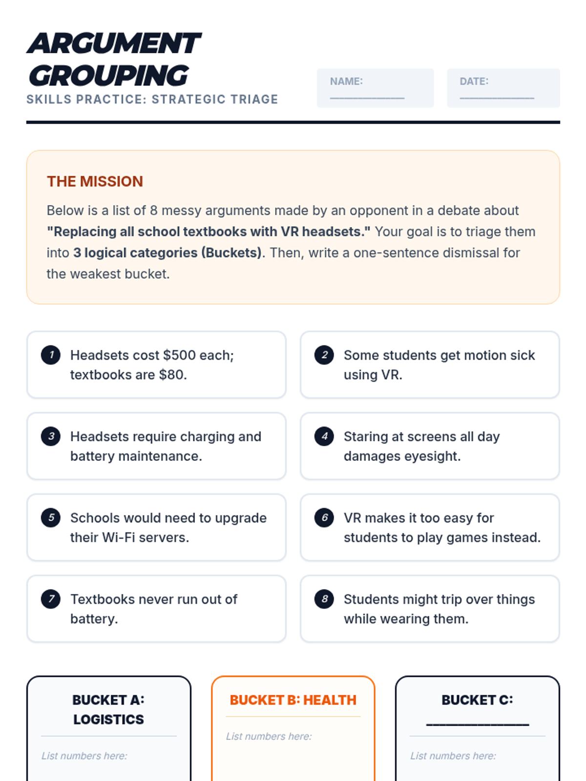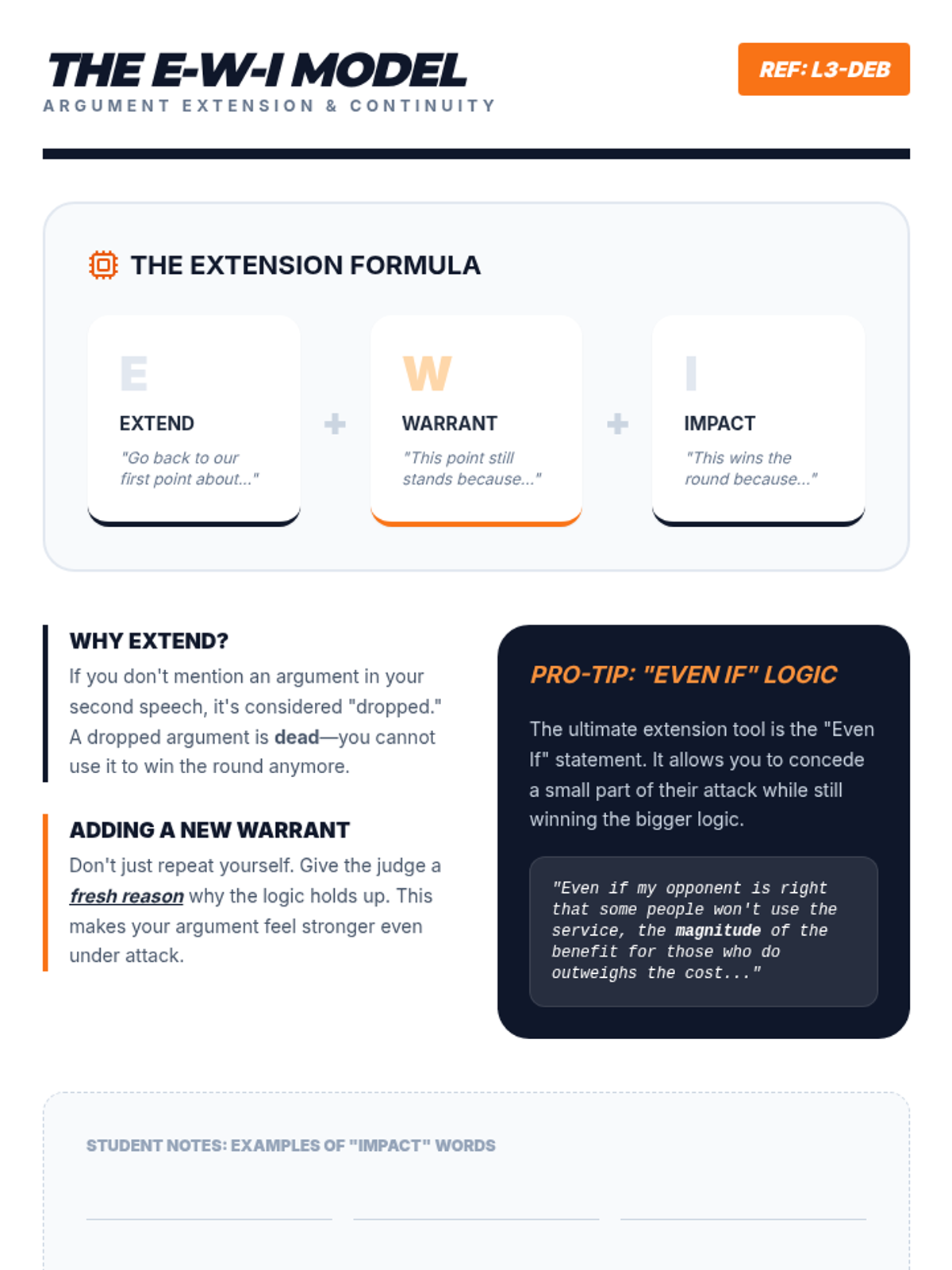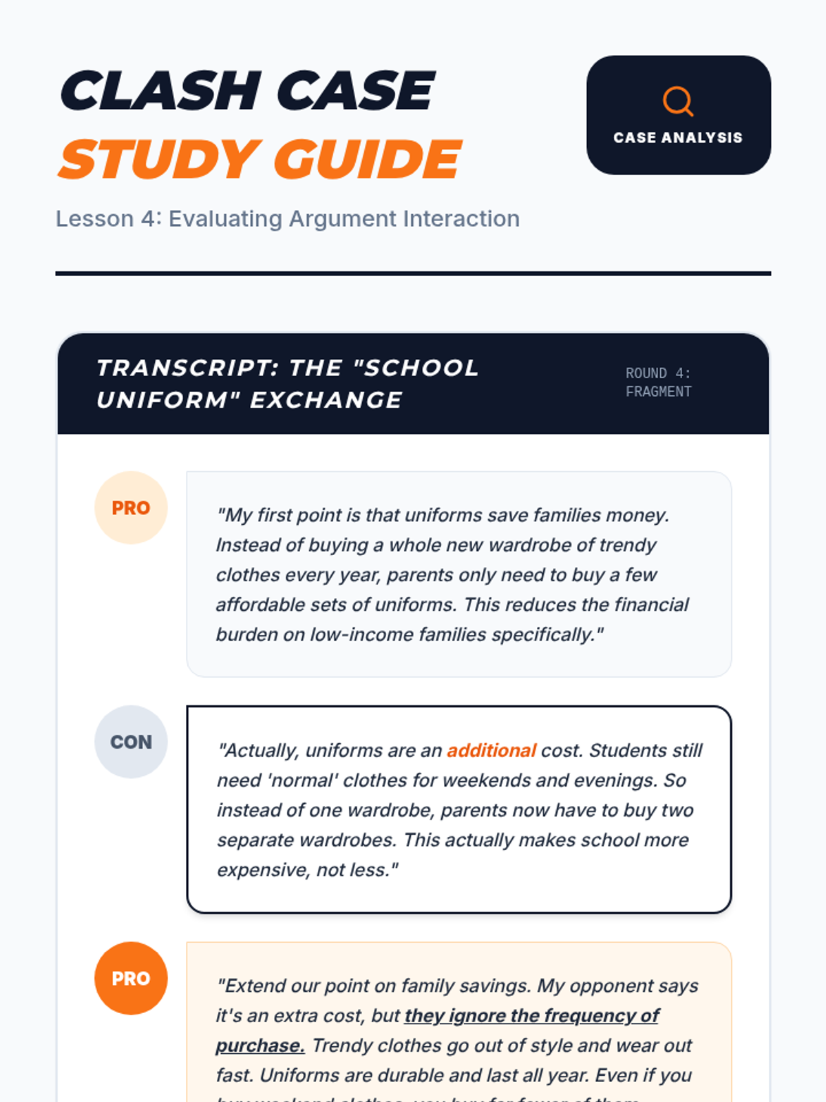 This sequence synthesizes refutation, weighing, and listening into short-form 'Spar' debates. Students learn to prioritize arguments, extend logic, and judge peer performances to build adaptability and engagement skills under strict time constraints.