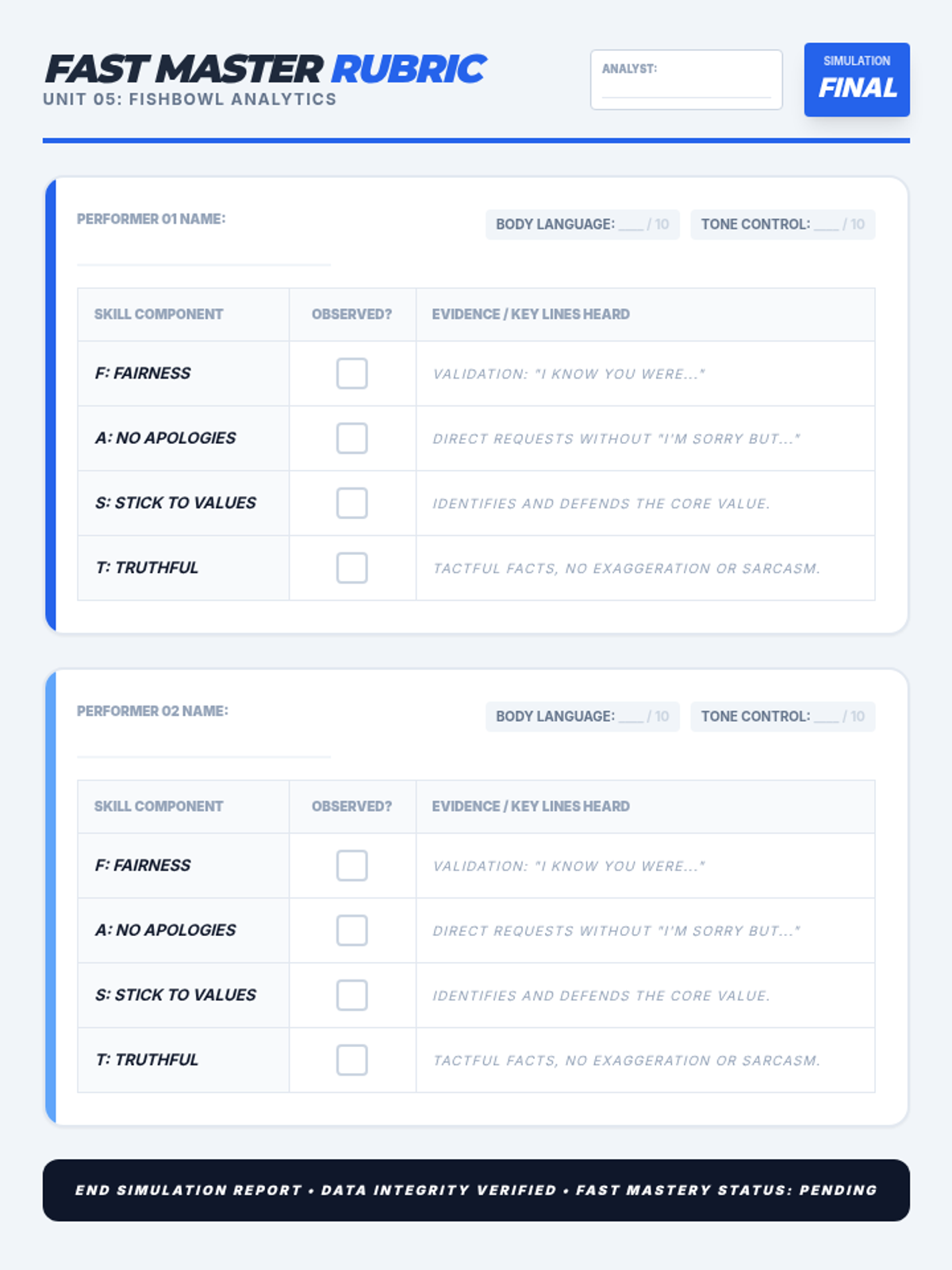 A simulation-heavy sequence for 7th graders to master FAST skills (Fair, Apologies, Stick to values, Truthful) through social labs, role-plays, and pattern recognition.