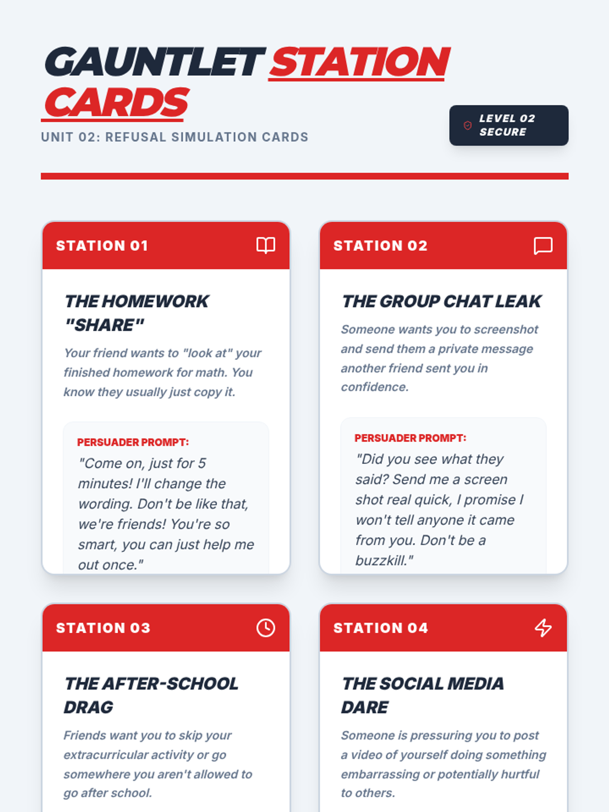A 6-week small group curriculum for middle schoolers designed to build school readiness through organization, time management, study strategies, and stress management. The 'Level Up' theme uses a quest-based narrative to engage students in mastering academic skills.
