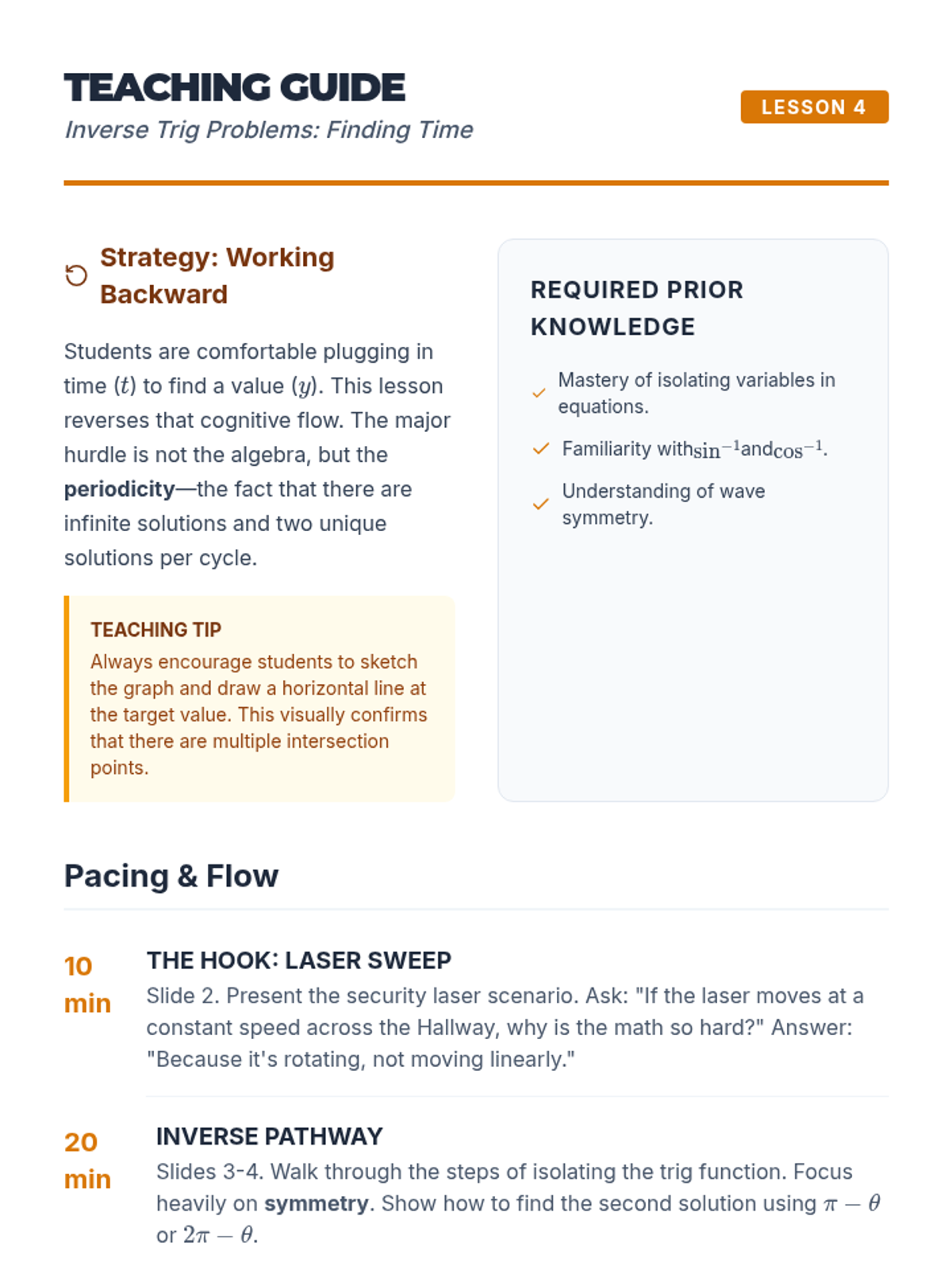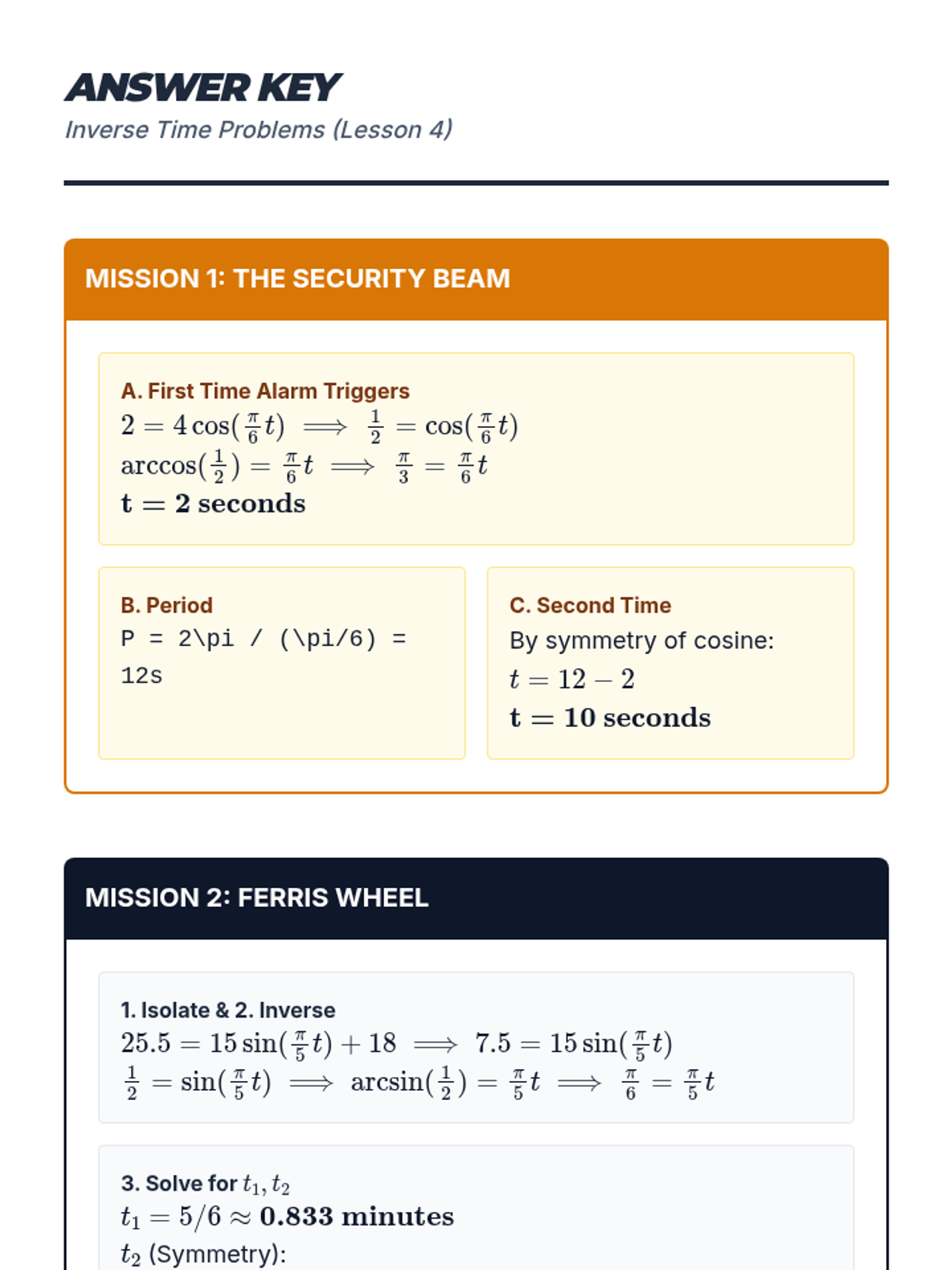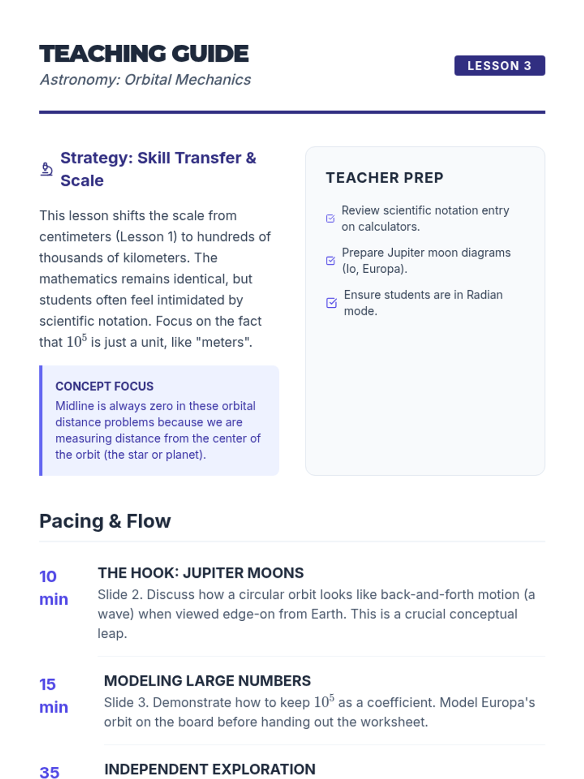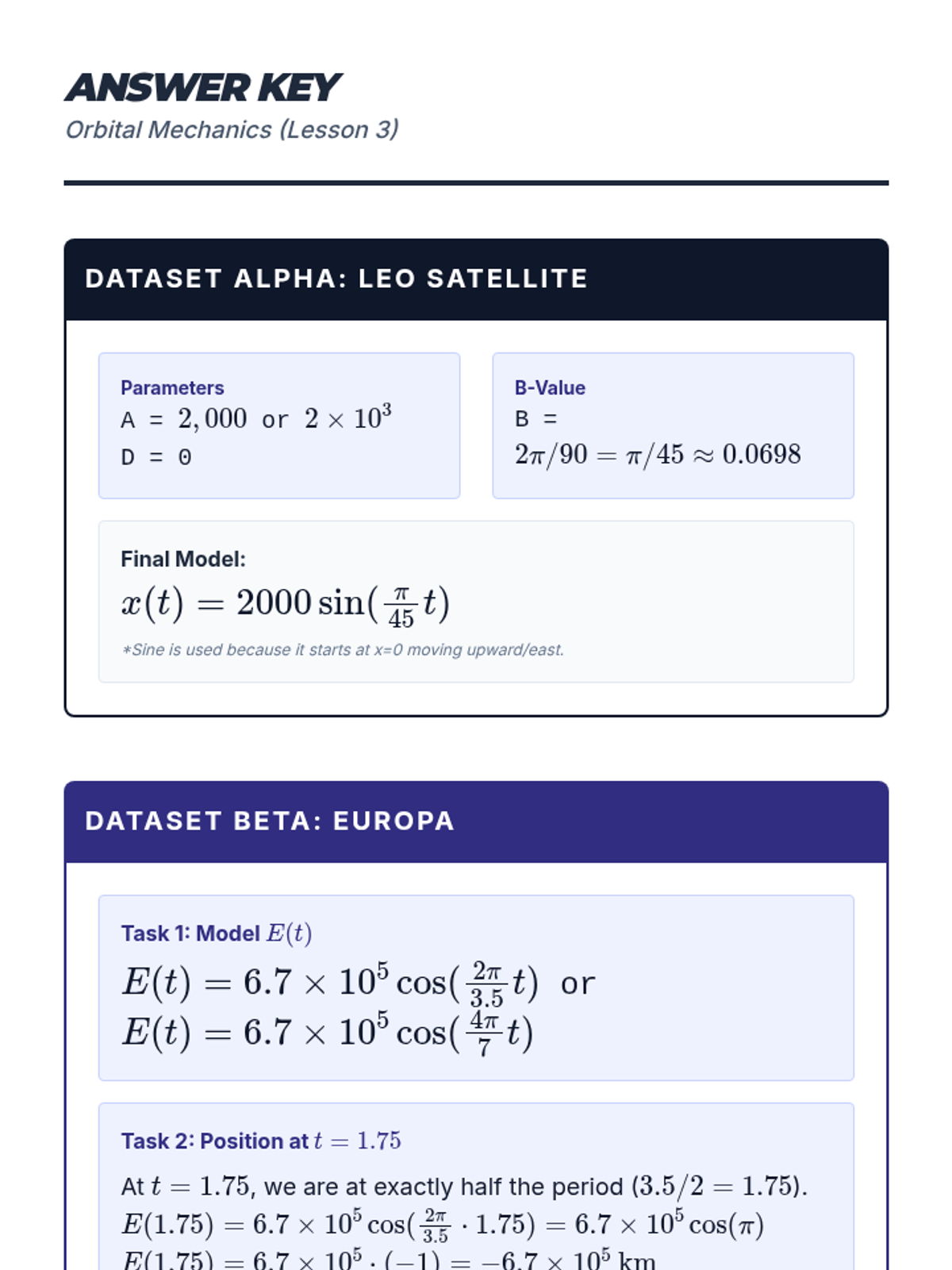 A comprehensive unit on modeling real-world periodic phenomena using trigonometric functions across physics, biology, and astronomy. Students master identifying amplitude, midline, and period from contextual data to build and solve predictive equations.