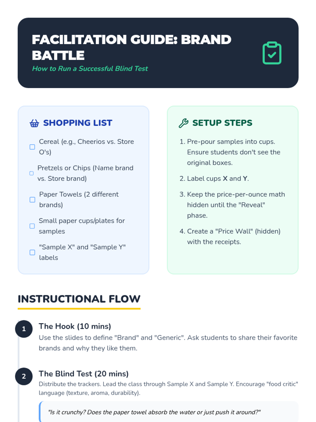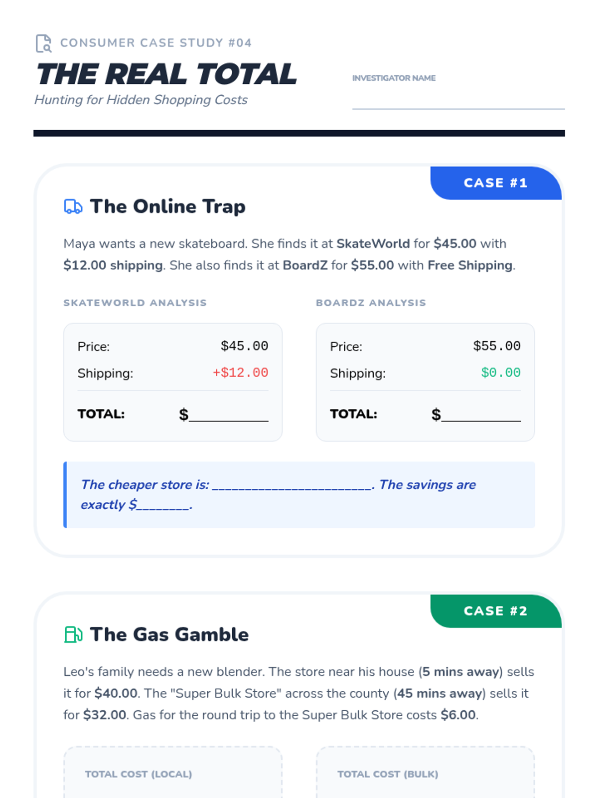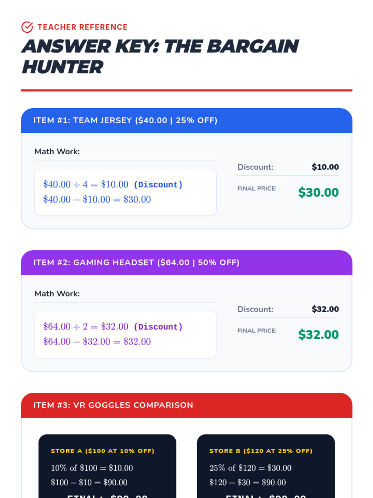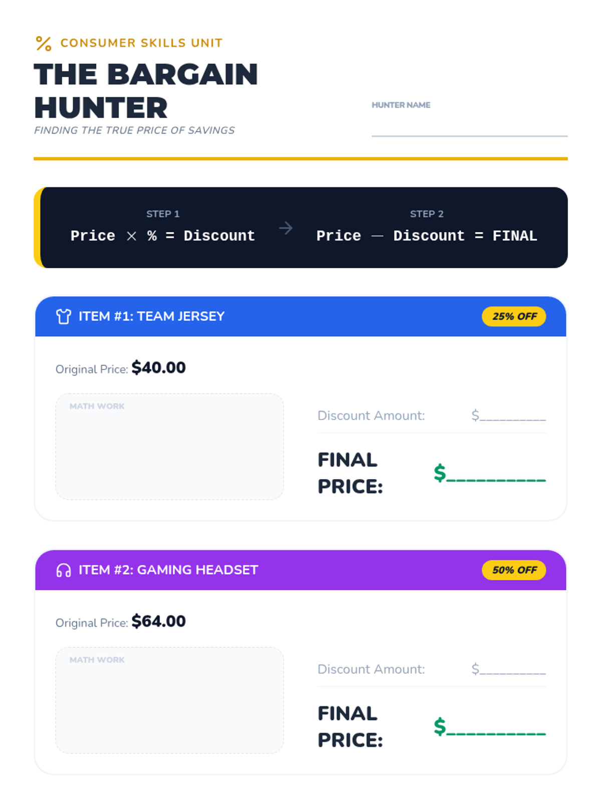 A comprehensive financial literacy sequence that teaches 5th graders to master comparison shopping. Students learn to calculate unit prices, evaluate brand vs. generic value, navigate discounts, and account for hidden costs to make smart consumer choices.