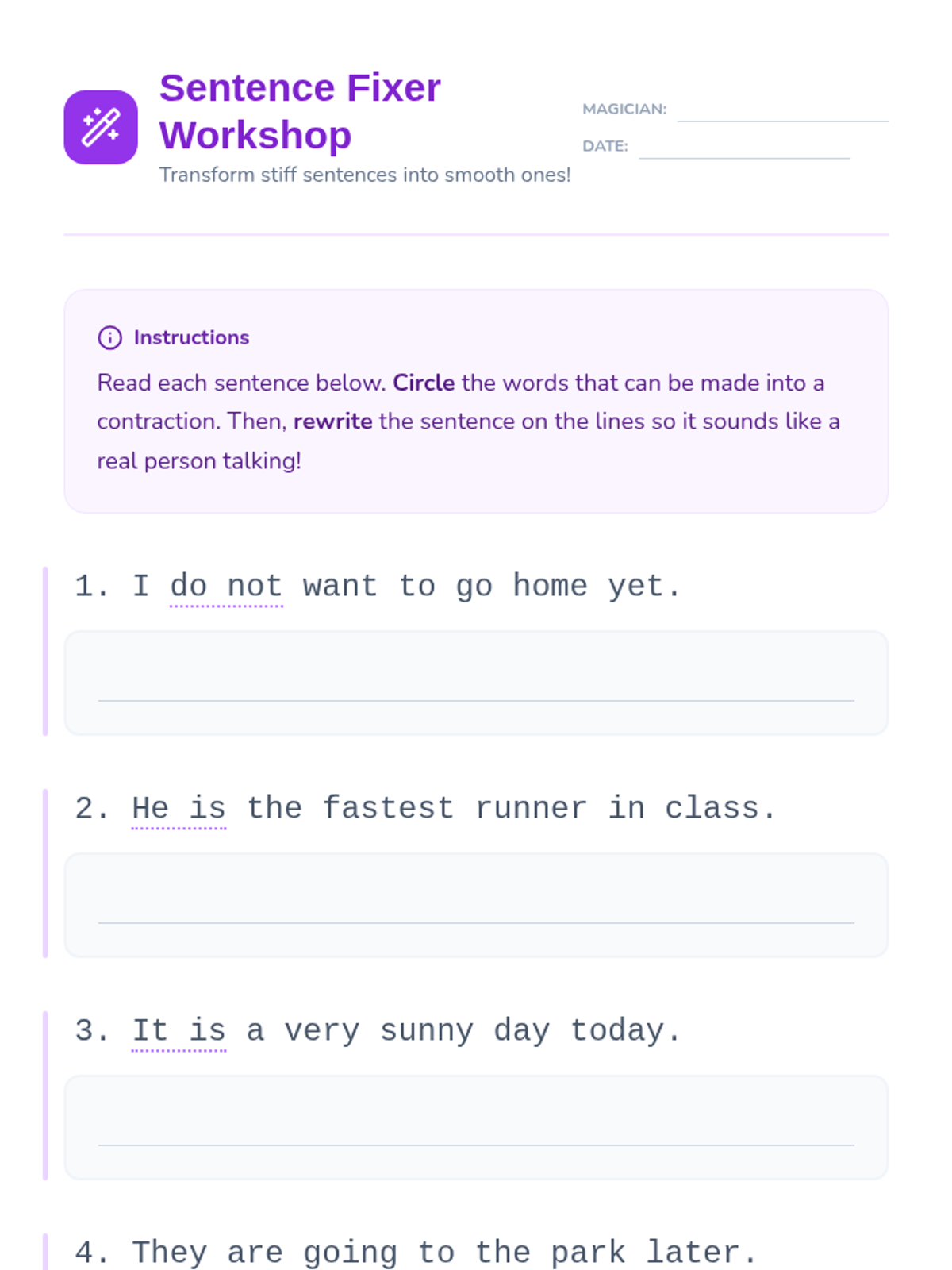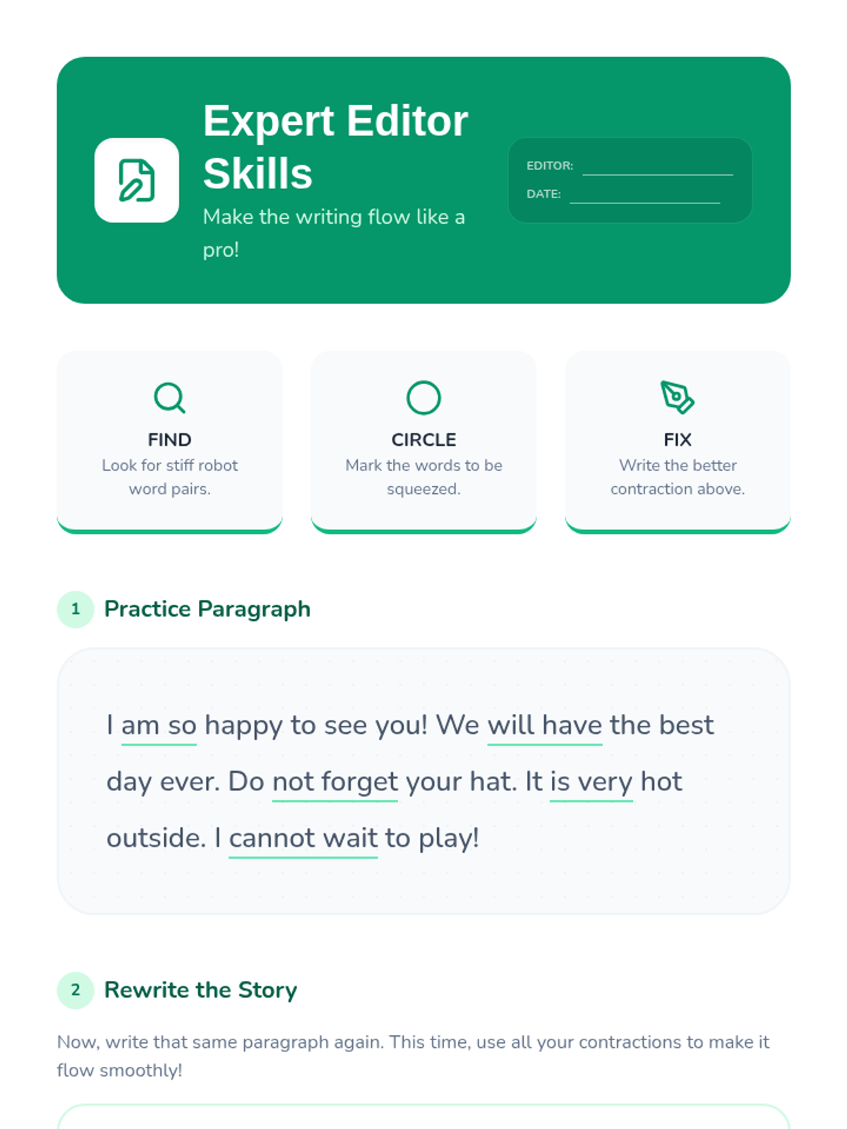 Students explore how contractions affect the 'voice' of a sentence, making it sound more natural and conversational. This 5-lesson sequence guides 1st graders from identifying stiff 'robot' speech to editing and publishing their own stories with smooth sentence flow.