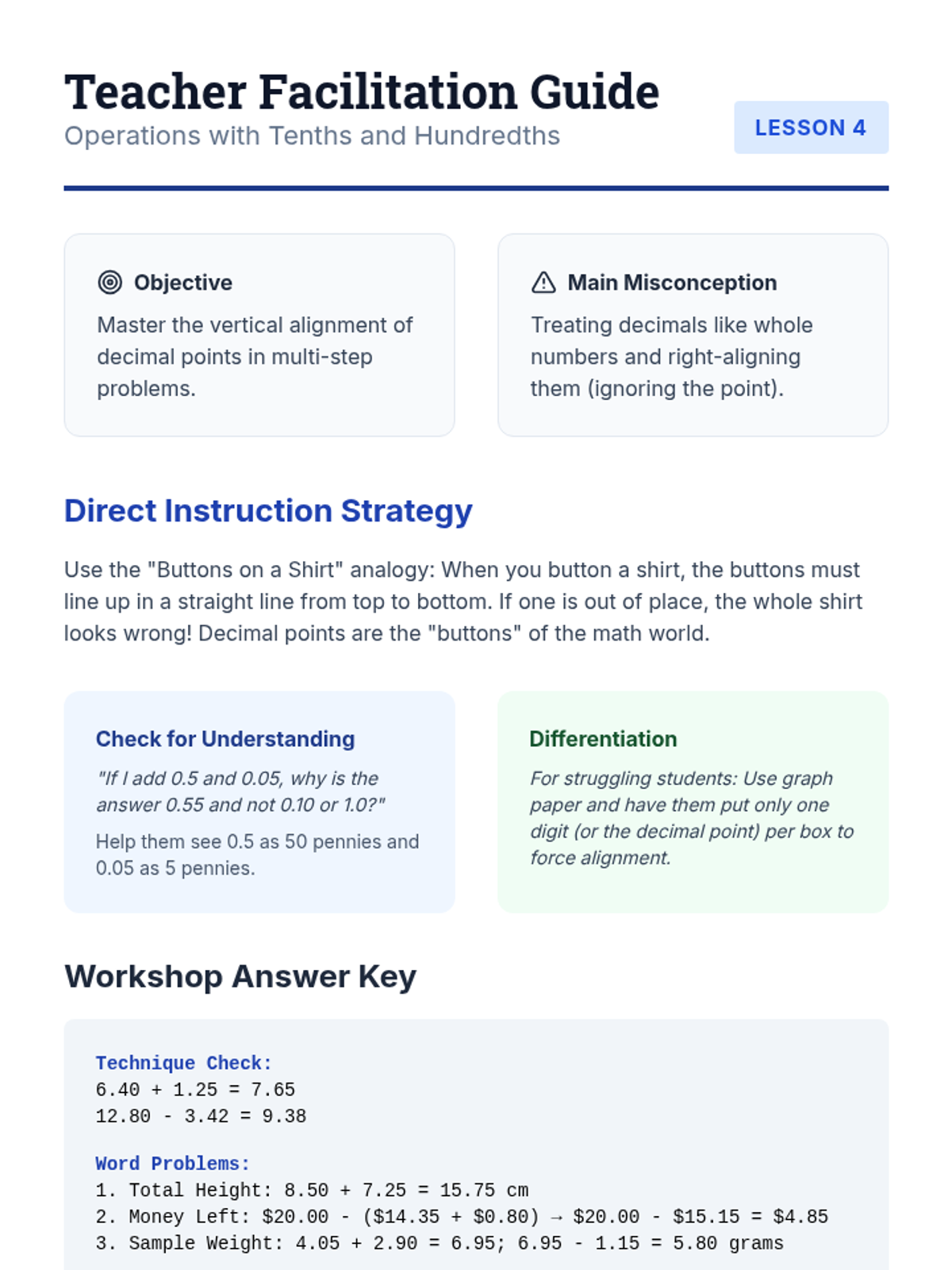 A 6-lesson intervention sequence for 6th-grade students focusing on multi-digit decimal operations and rational number concepts on the number line and coordinate plane. Designed for small-group instruction using High Leverage Concepts.