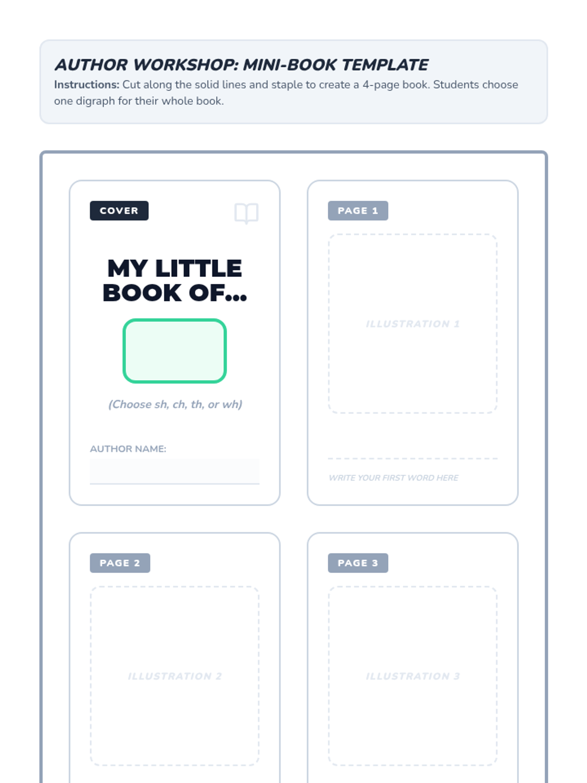 A Kindergarten Phonics sequence focused on applying consonant digraphs (ch, sh, th, wh) in reading and writing. Students transition from identifying digraphs in shared reading to creating their own 'Digraph Mini-Books'.