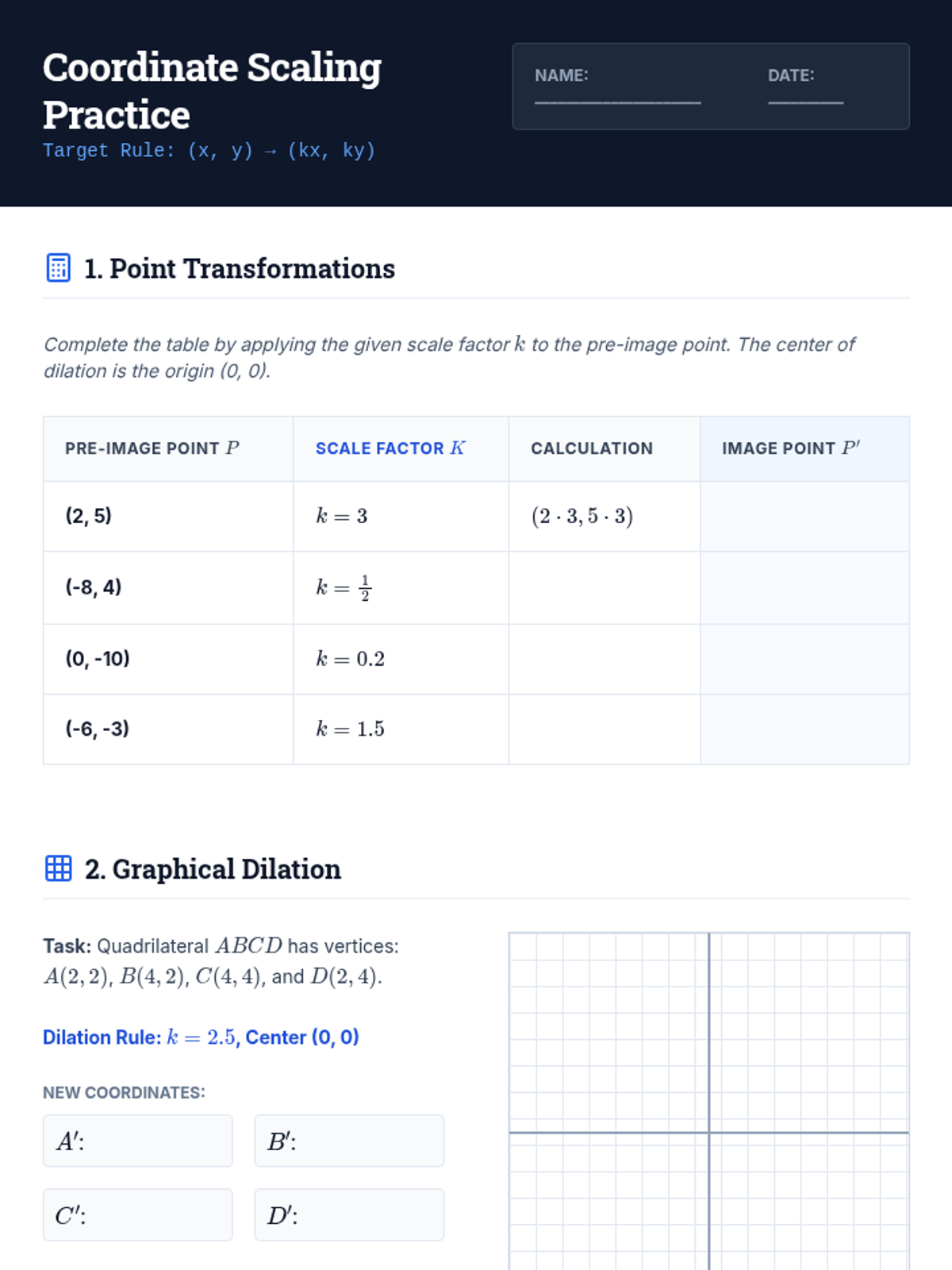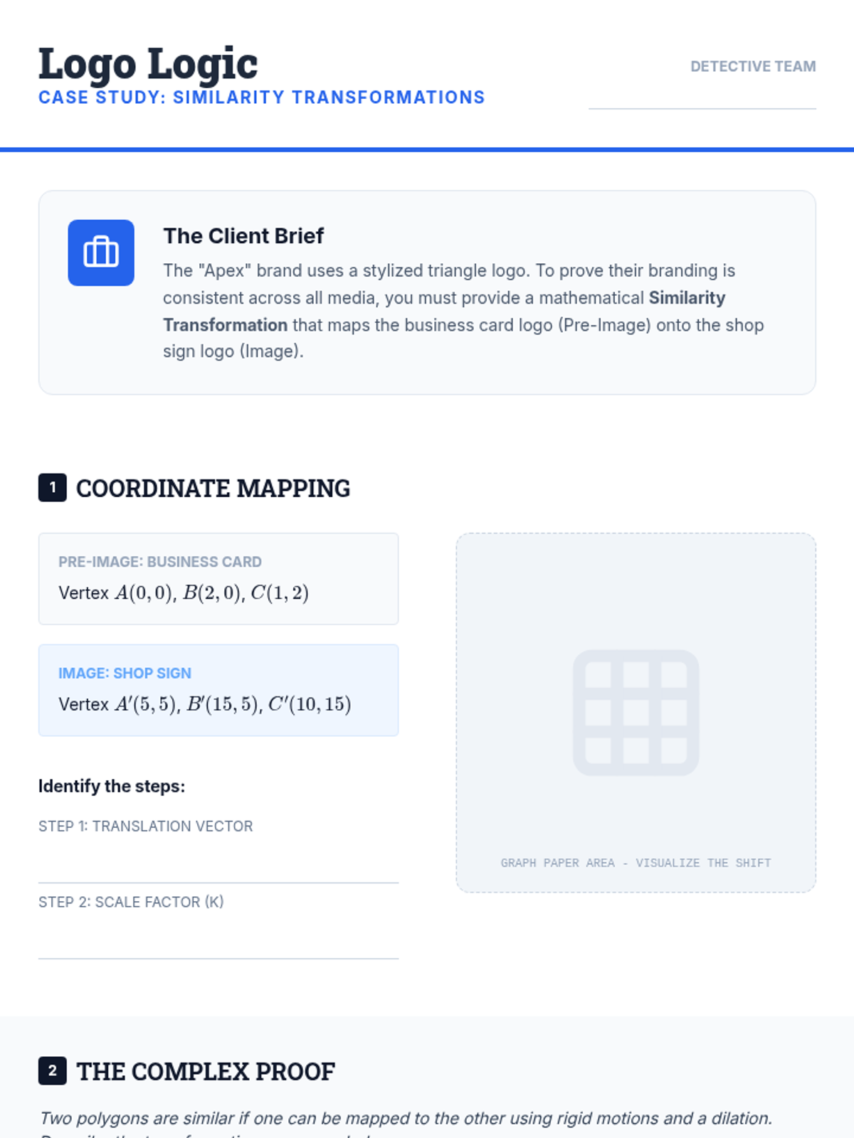 A comprehensive 10th-grade geometry unit exploring dilations as non-rigid transformations. Students investigate scale factors, coordinate rules, and the formal definition of similarity, culminating in complex problem-solving and forensic modeling applications.