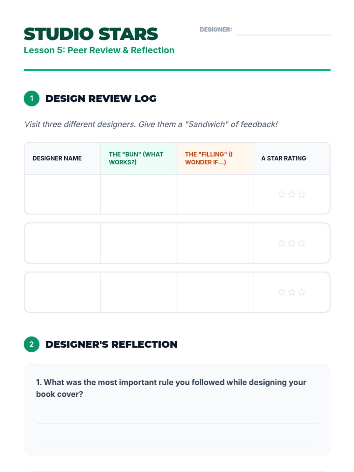 A 5-lesson unit introducing 3rd-grade students to graphic design and typography principles. Students explore how font styles and layout arrangements communicate emotion and message, culminating in a professional-style book cover design project.