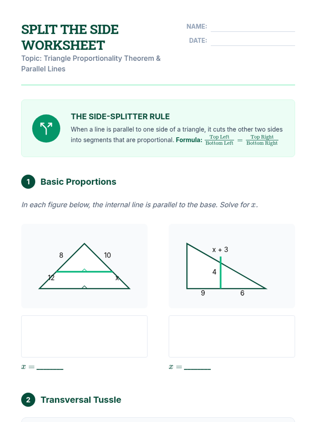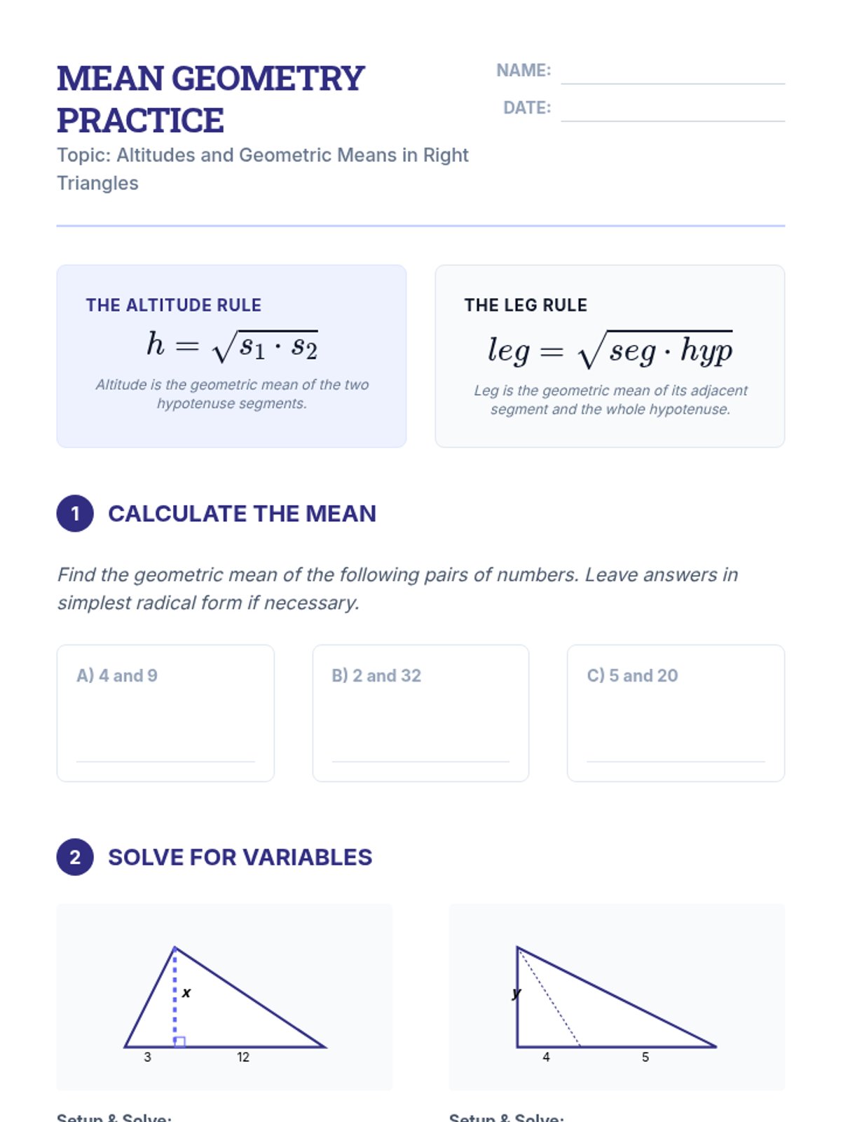 This sequence applies similarity theorems (AA, SAS, SSS) and proportional reasoning to solve complex geometric and real-world problems. Students explore triangle proportionality, geometric means in right triangles, and indirect measurement techniques, culminating in a design-focused scale modeling project.