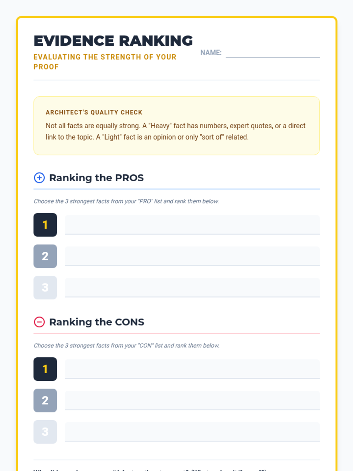 Students move beyond finding sources to organizing scattered information into a structured debate brief. They learn to categorize evidence, rank its strength, and group facts into cohesive reasons to build a powerful argument.