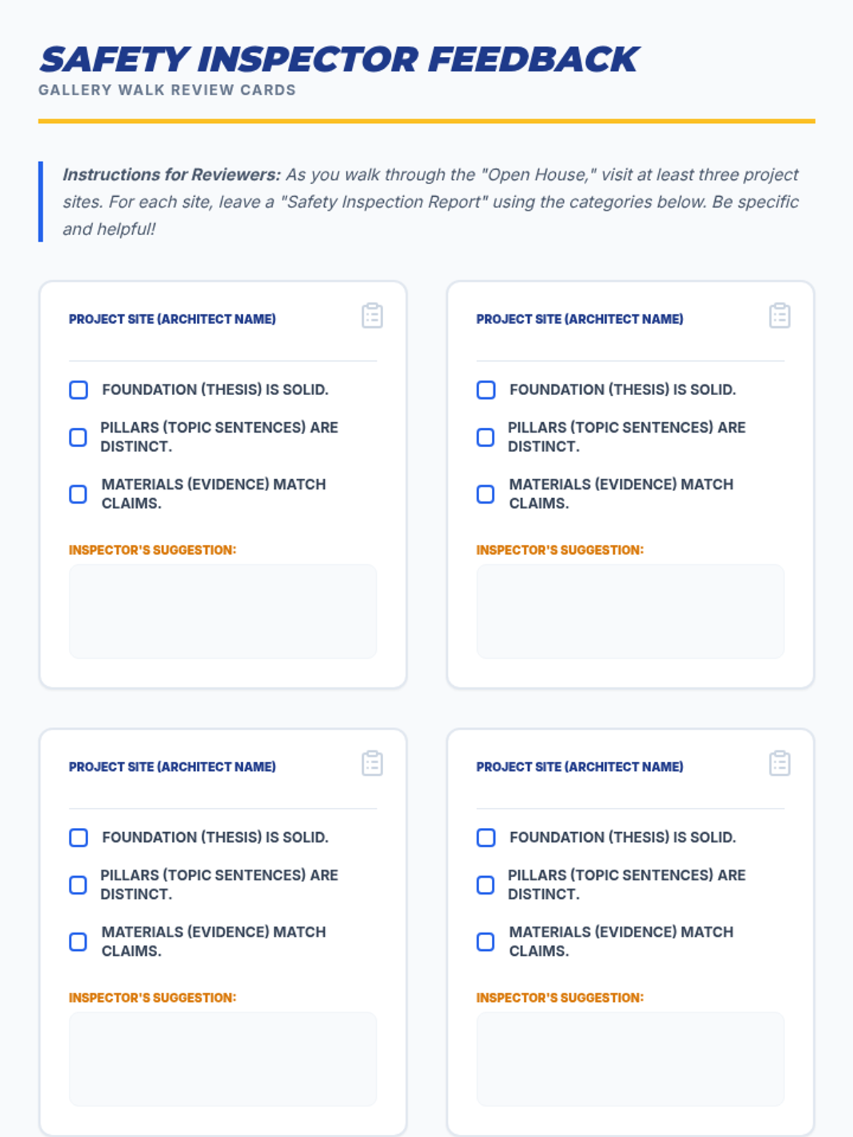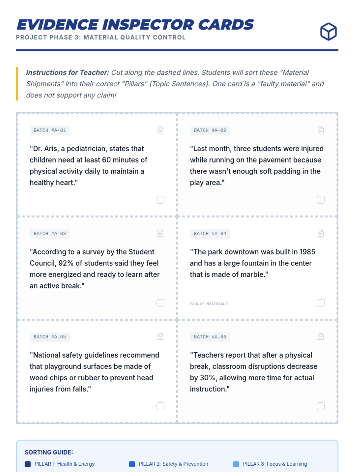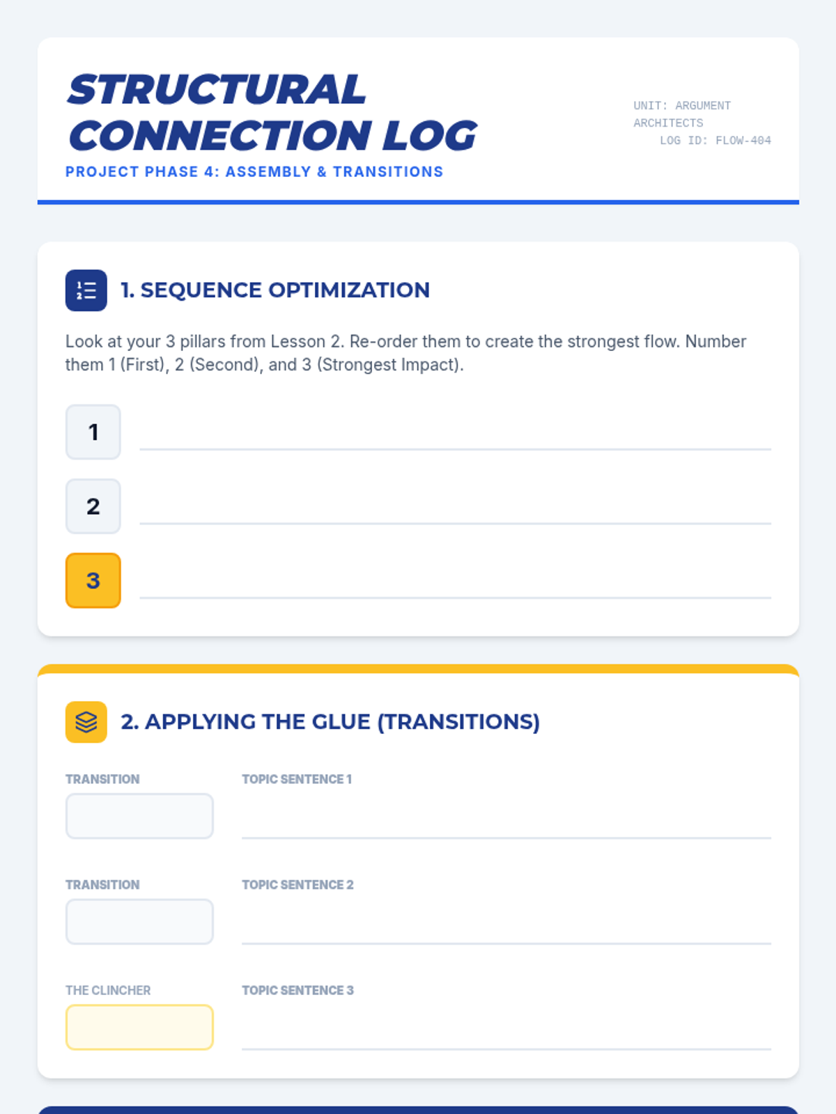 A project-based sequence where 5th-grade students learn to construct strong persuasive arguments by mastering thesis statements and topic sentences, themed around architectural blueprints and construction.