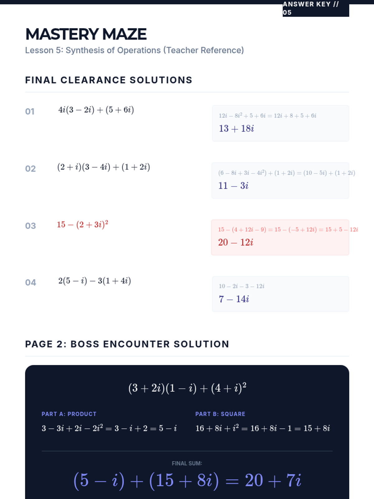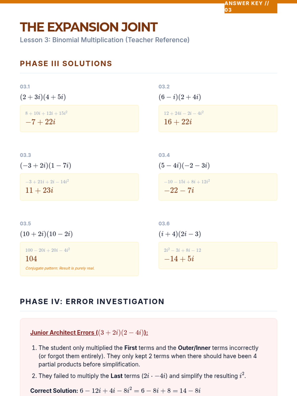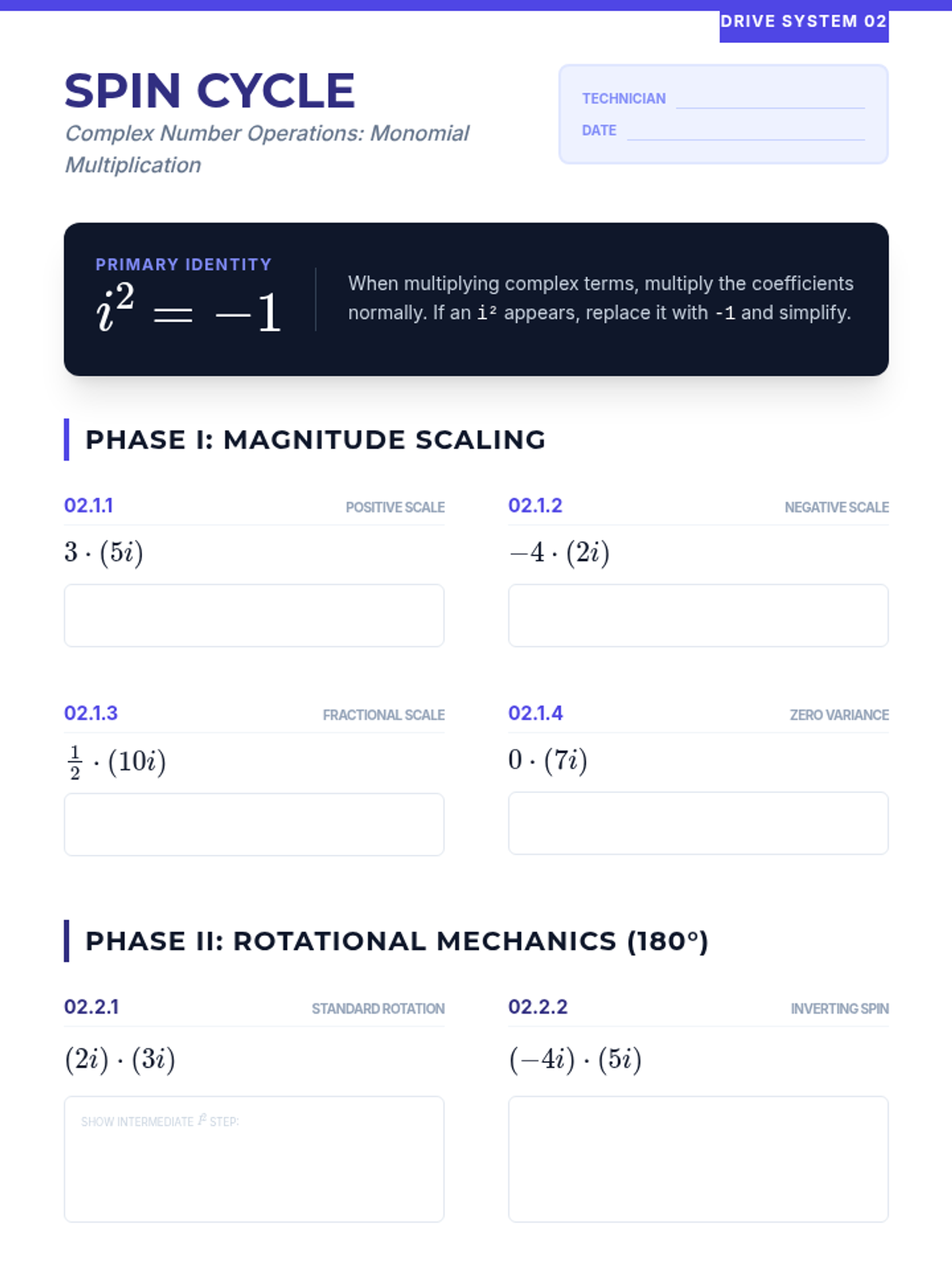 A comprehensive sequence for 10th-grade students covering addition, subtraction, and multiplication of complex numbers. Students learn to treat 'i' as a variable while applying the identity \(i^2 = -1\) to simplify expressions.