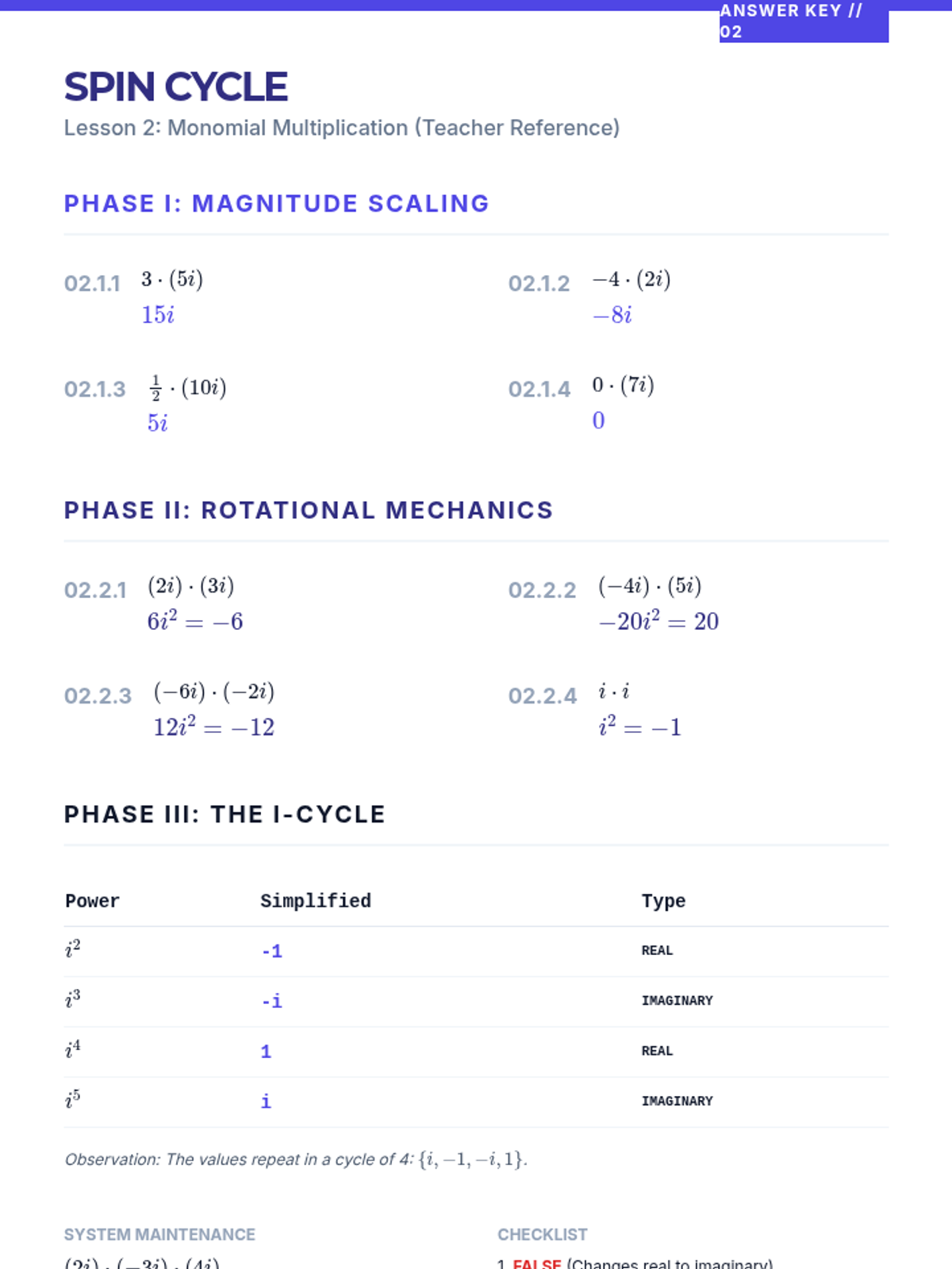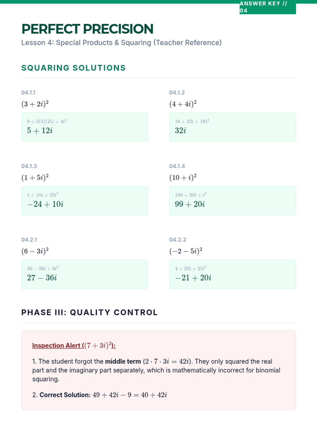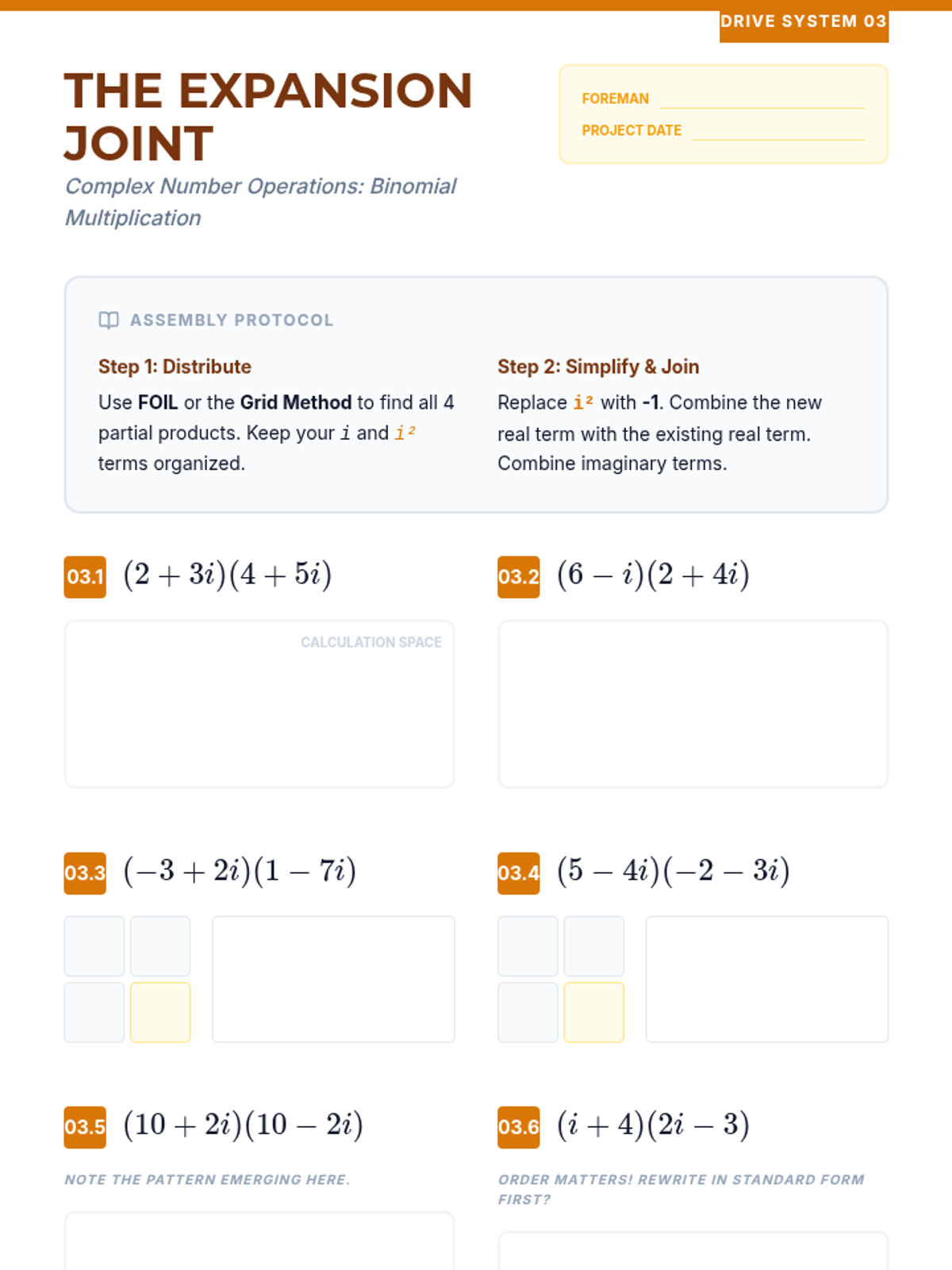 A comprehensive sequence for 10th-grade students covering addition, subtraction, and multiplication of complex numbers. Students learn to treat 'i' as a variable while applying the identity \(i^2 = -1\) to simplify expressions.