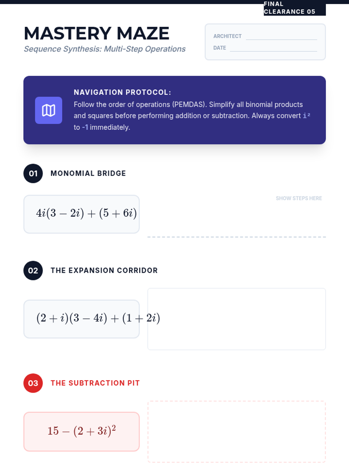 A unit focused on mastering polynomial operations, from long division to advanced shortcuts like the Remainder and Factor Theorems. Students move from laborious calculation to strategic evaluation.