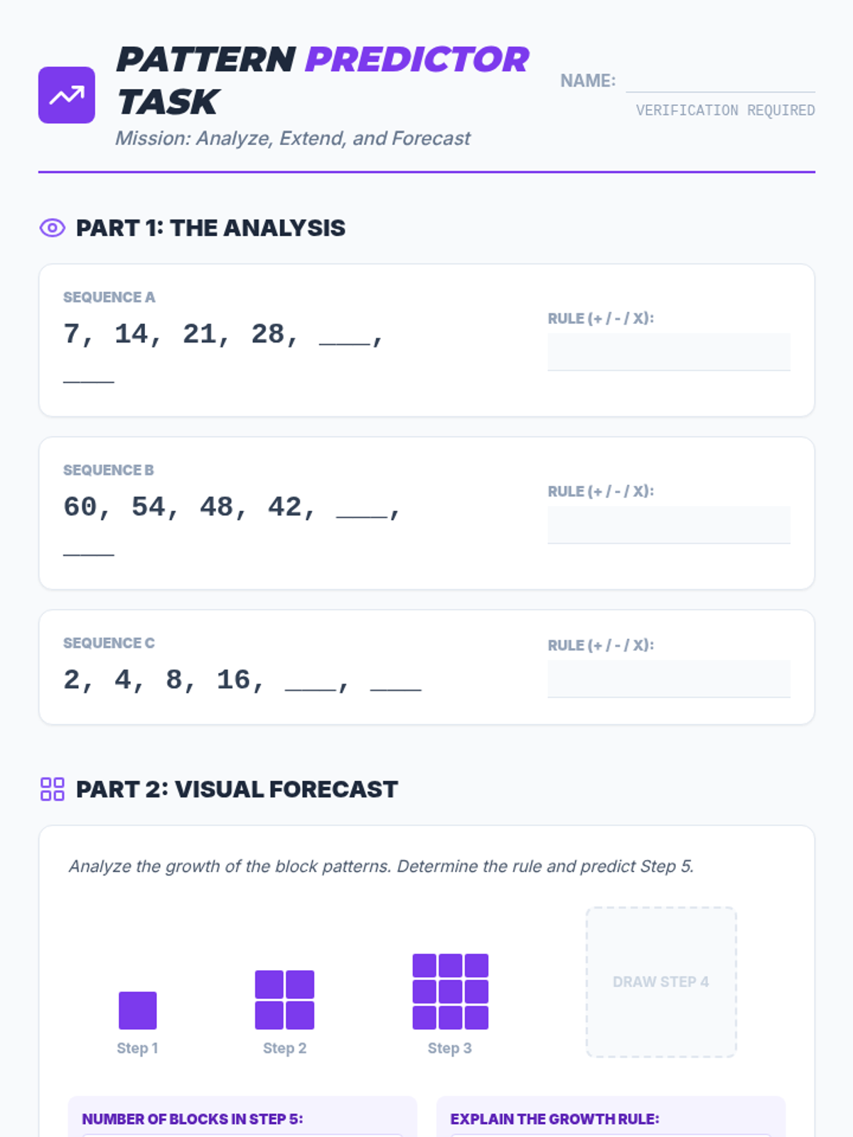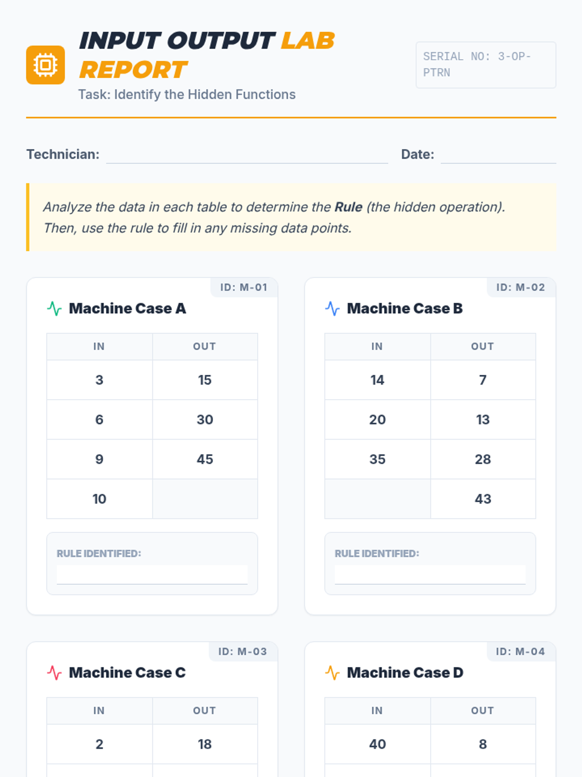 A 5-lesson unit where 3rd-grade students explore the hidden rules and patterns within the multiplication table, arithmetic operations, and algebraic functions. Students move from observation to prediction and generalization.