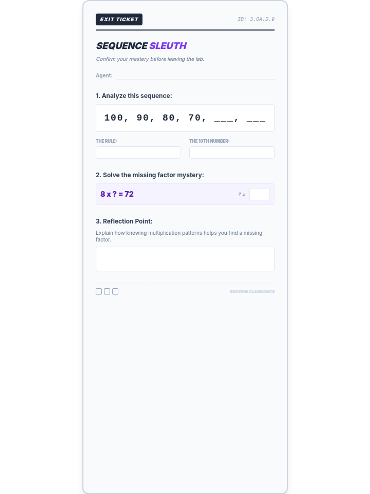 A playful, detective-themed math sequence for 3rd grade students to master number comparison. Students become 'Digit Detectives' as they investigate place value mysteries, solve 'blunders' made by a messy professor, and create their own case files using concrete models like base-ten blocks and number lines.