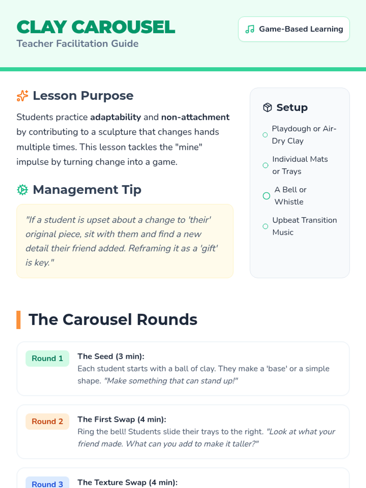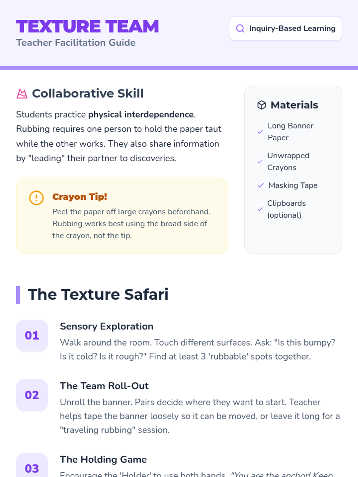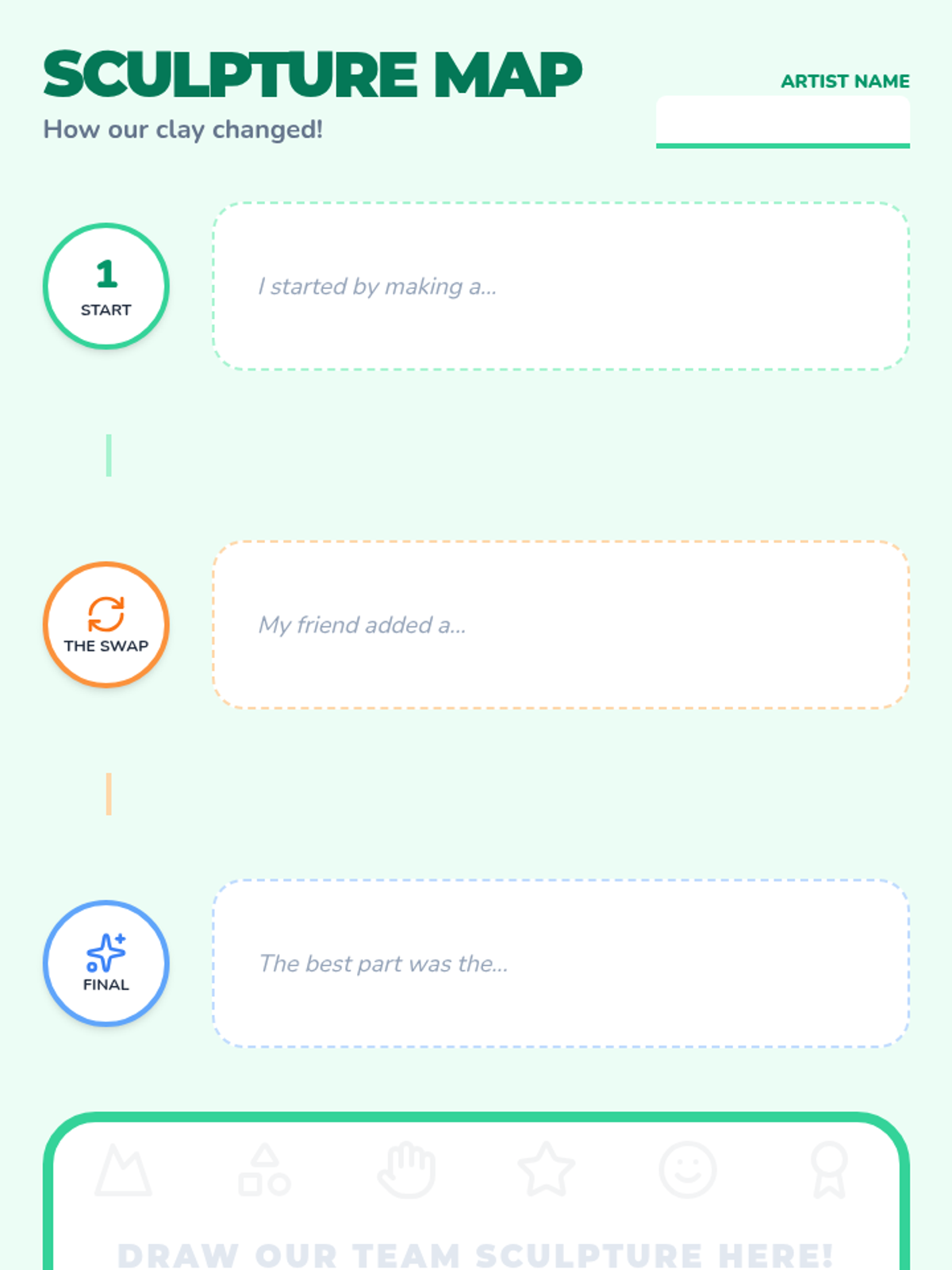 A Pre-K sequence focused on collaborative art-making, teaching students flexibility, shared ownership, and the joy of creating together. through 'pass-the-art' games and team projects.