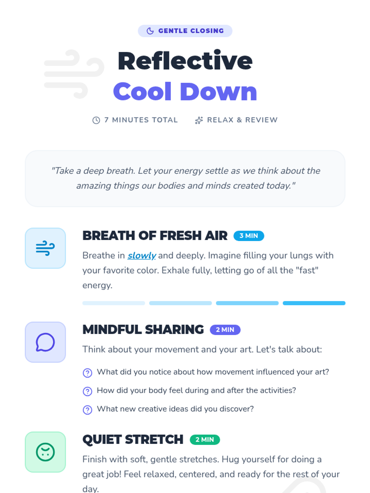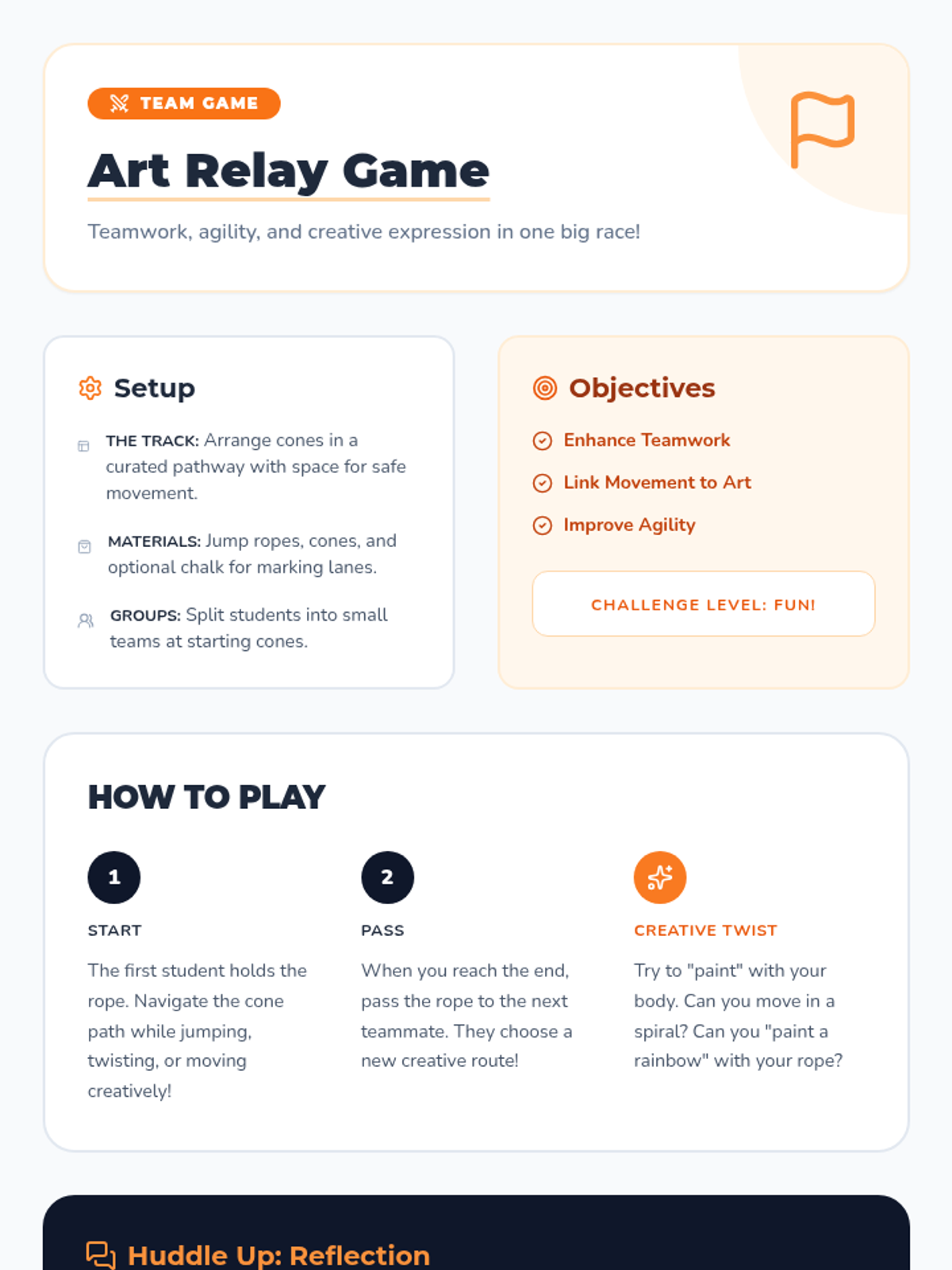 A four-day music and movement unit for K-3 students focused on collaboration, rhythm, and creative choreography. Groups work together to select songs and build original dance routines.