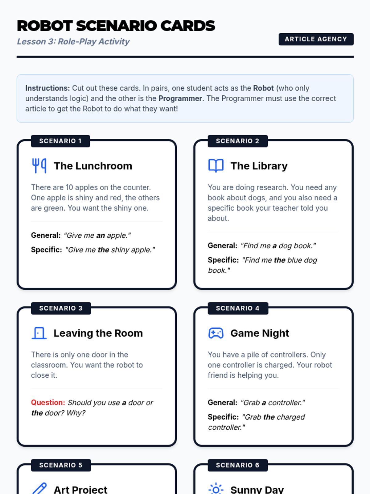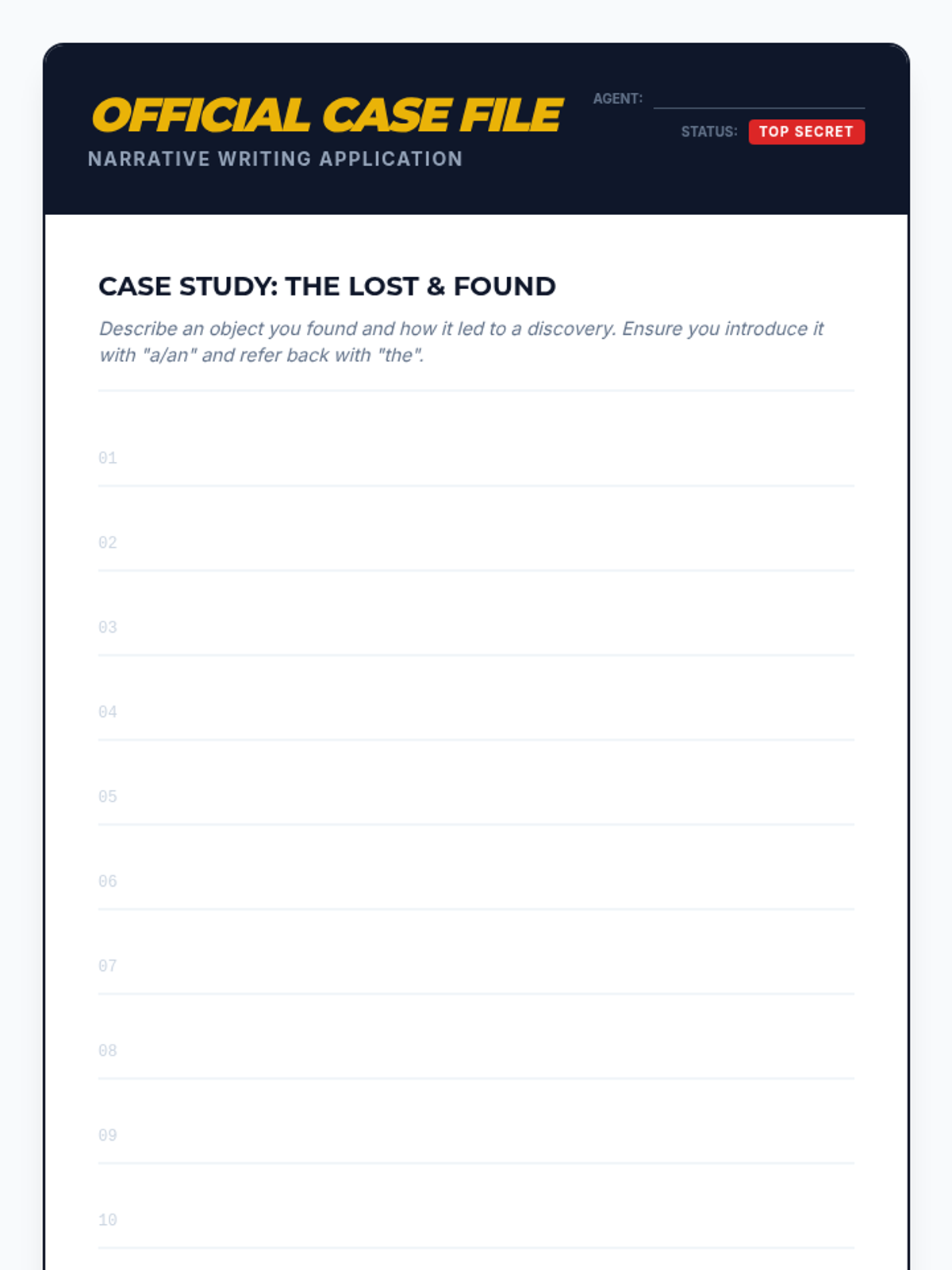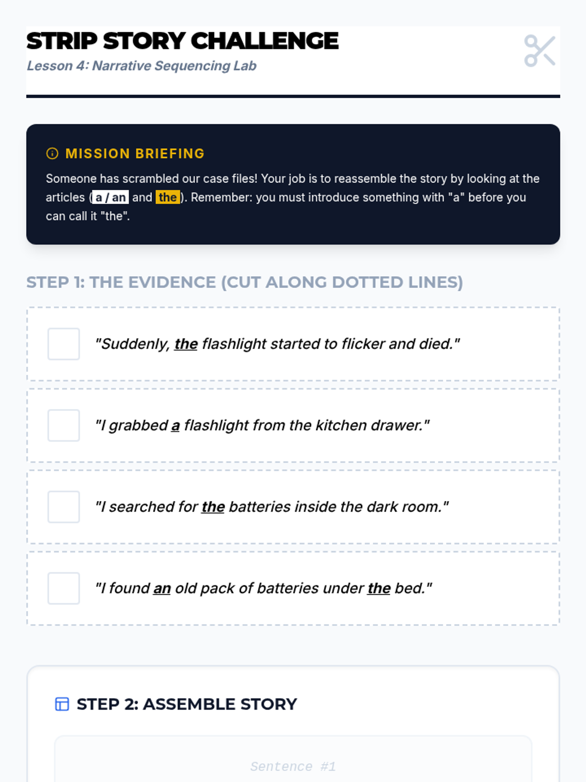 A 5-lesson sequence for 4th graders exploring definite and indefinite articles. Students learn to use 'a', 'an', and 'the' to signal specificity, unique nouns, and narrative cohesion through detective-themed investigations.
