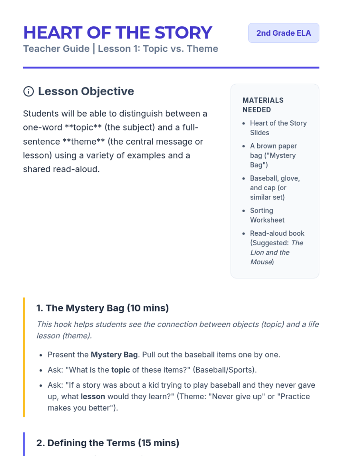 A 2nd-grade sequence designed for students needing academic support to master making inferences. It utilizes the 'Inference Equation' (Text Clues + Schema = Inference) through a detective-themed investigation structure, breaking down complex cognitive processes into manageable steps.