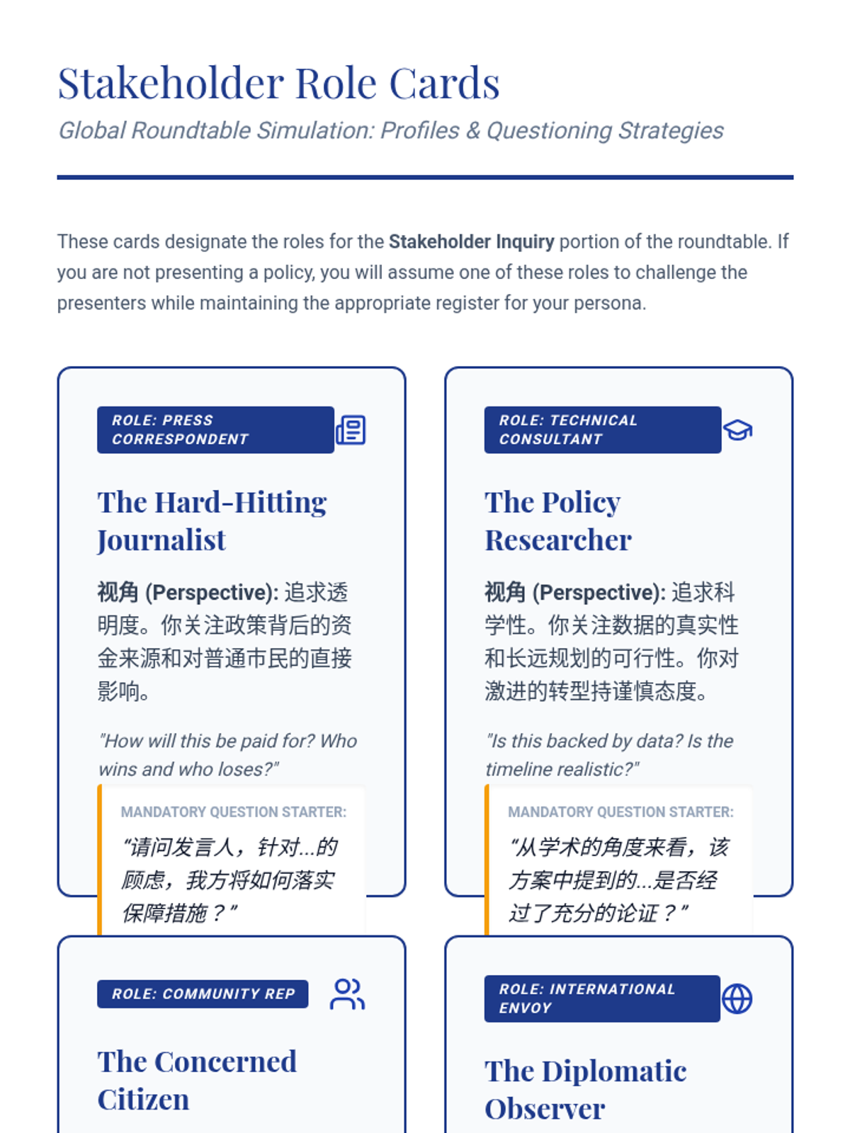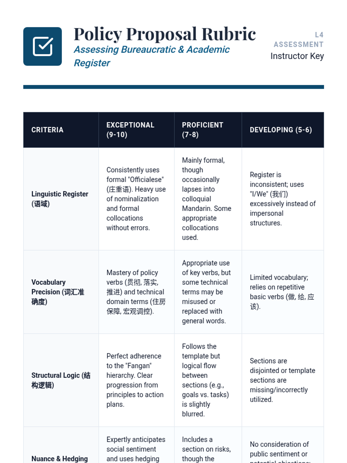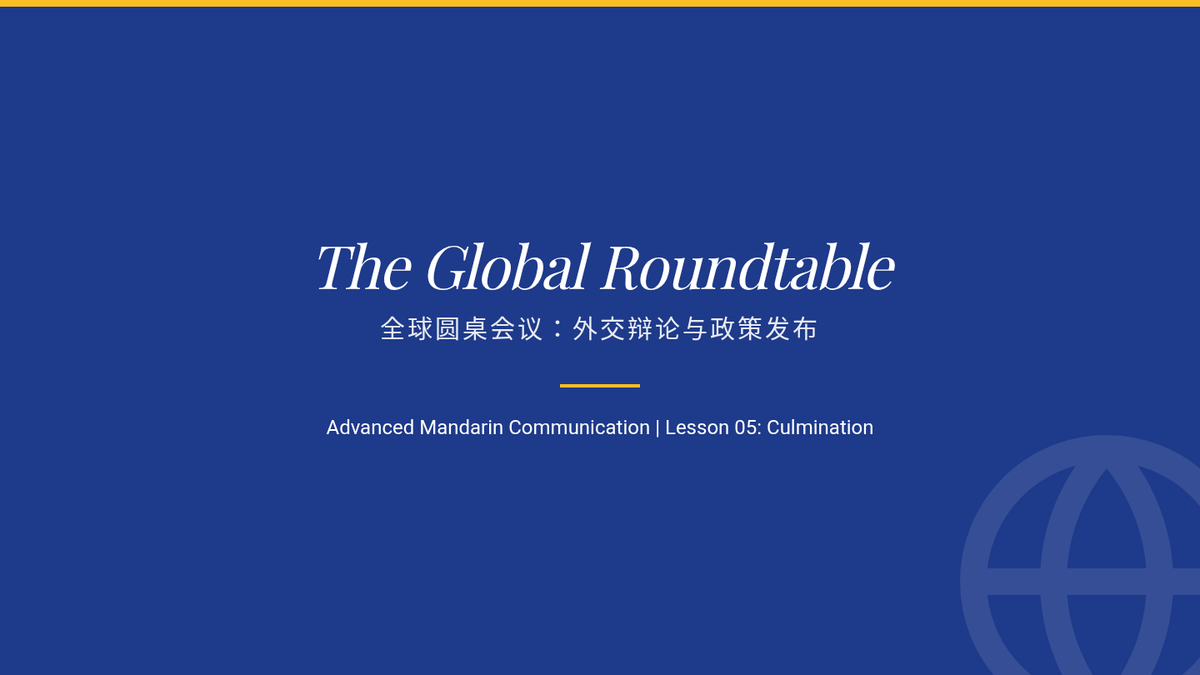 An advanced Mandarin Chinese course for graduate students, focusing on the linguistic nuances of socio-political discourse, official rhetoric, and policy articulation. Students progress from critical analysis of state media to professional simulation of policy roundtables.